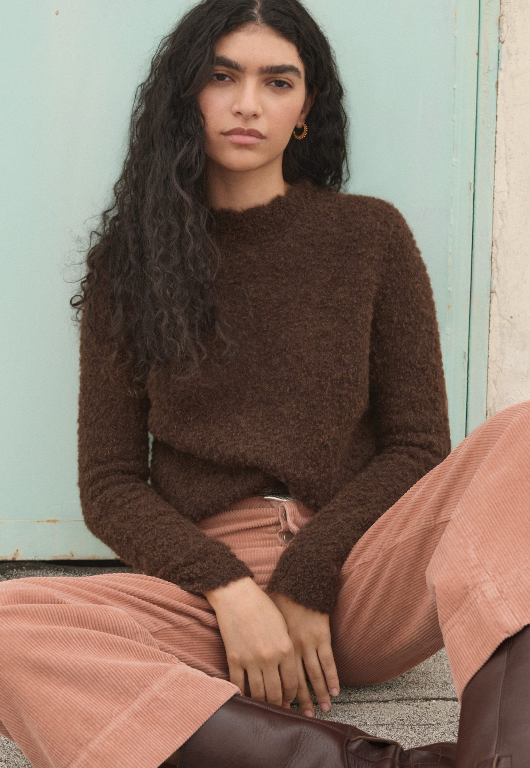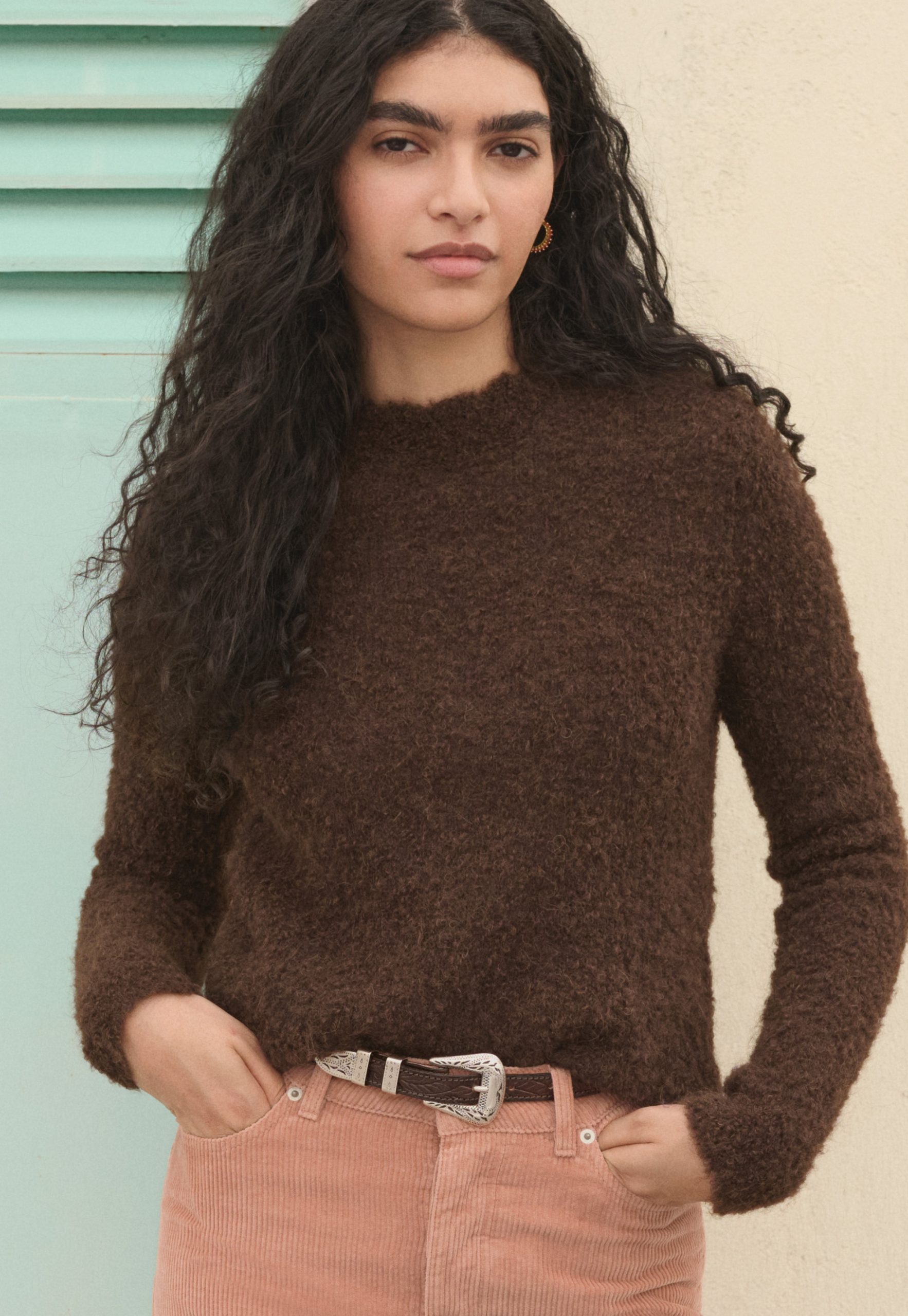 Wrap London Women’s Bouclé Round-neck Sweater | Dark Chocolate