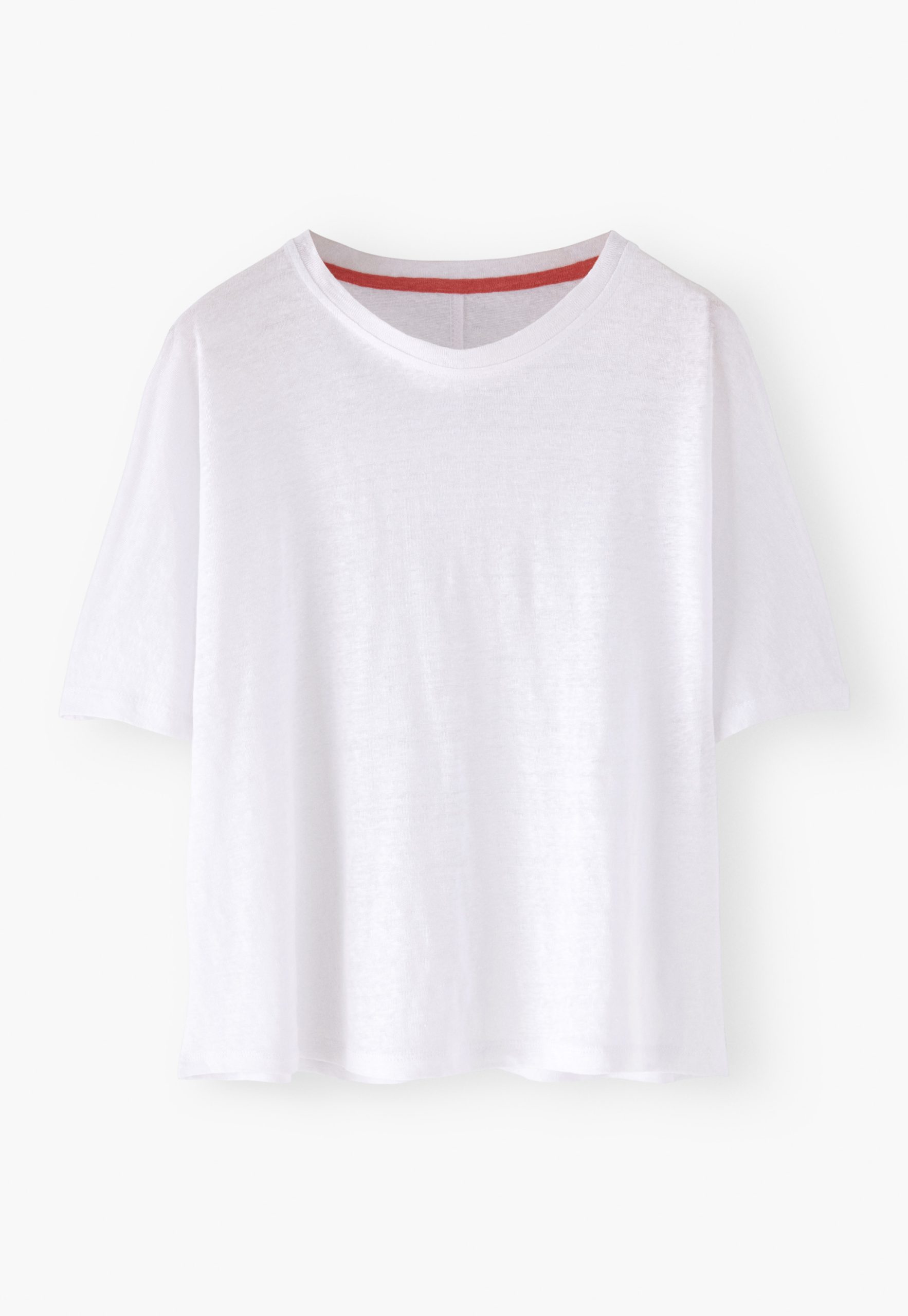 Relaxed easy fit with a soft shoulder line and a loose boxy silhouette. A great T-shirt for the summer in a range of colours.