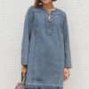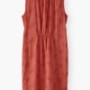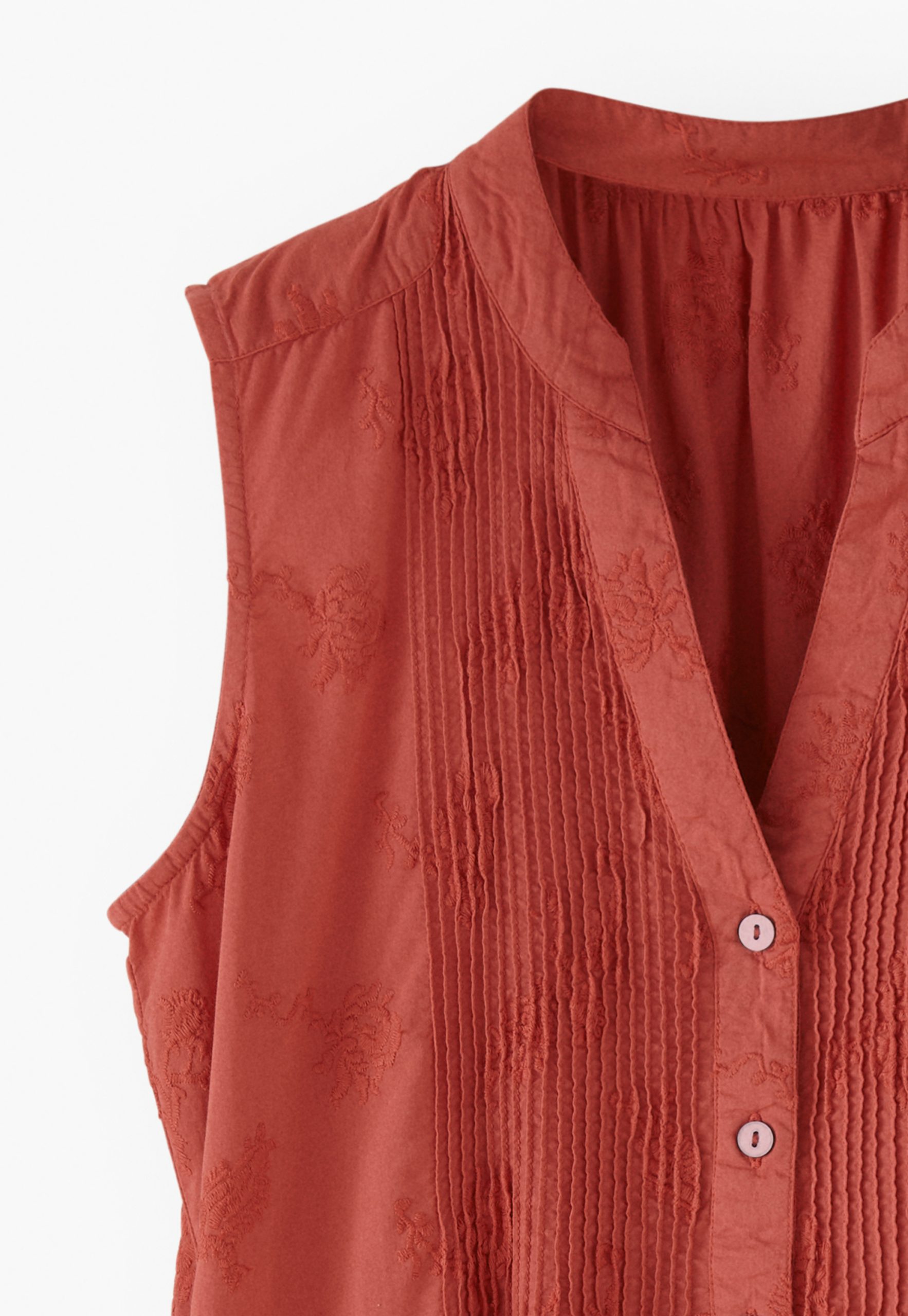 A lightweight summer dress in cool cotton lifted with tonal floral embroidery. With a pintuck detail at the front and neatly gathered at the centre-back. Slip your hands into the hidden side-pockets.
