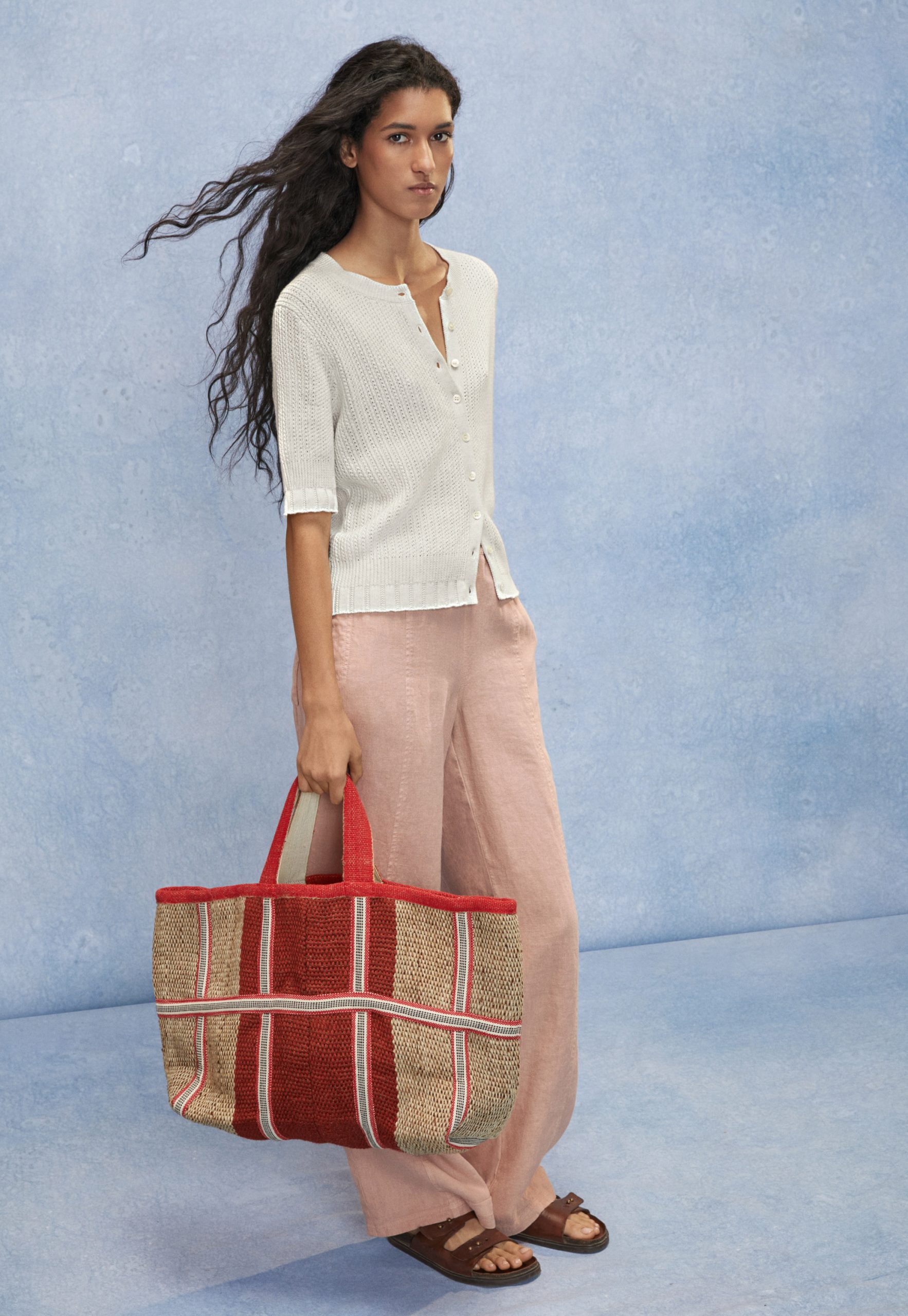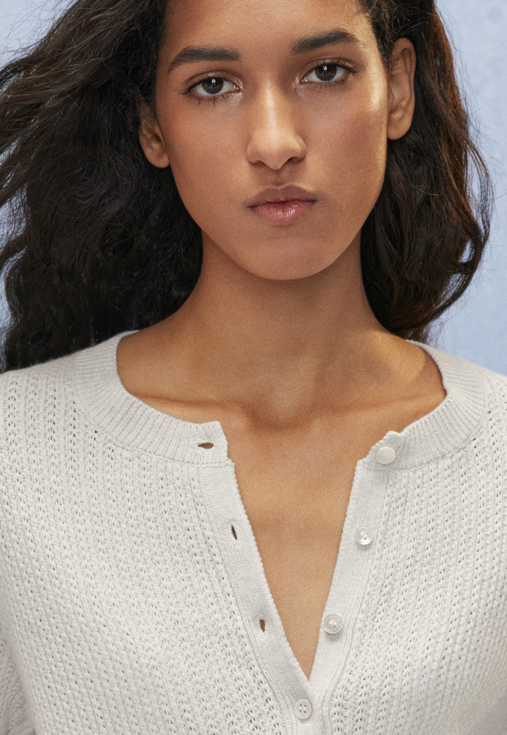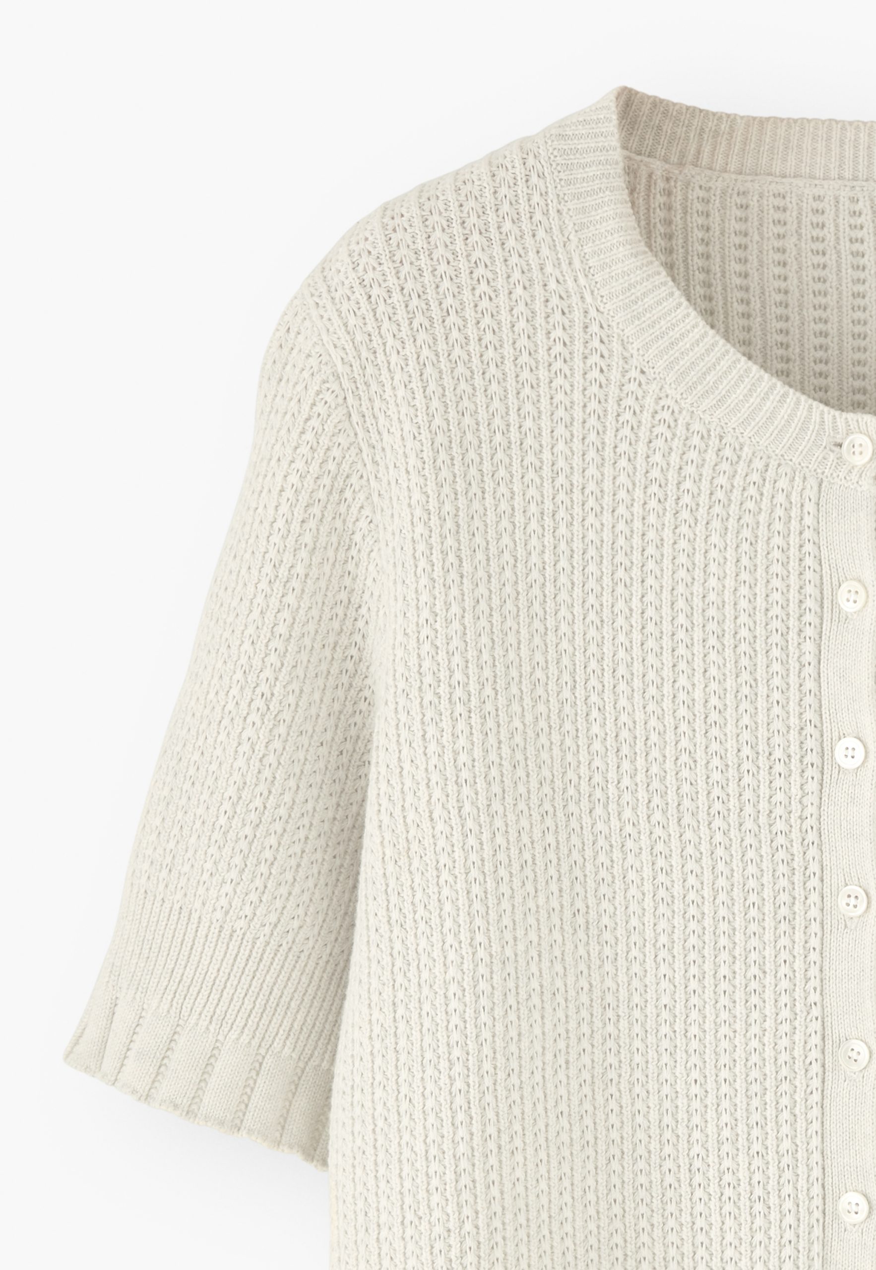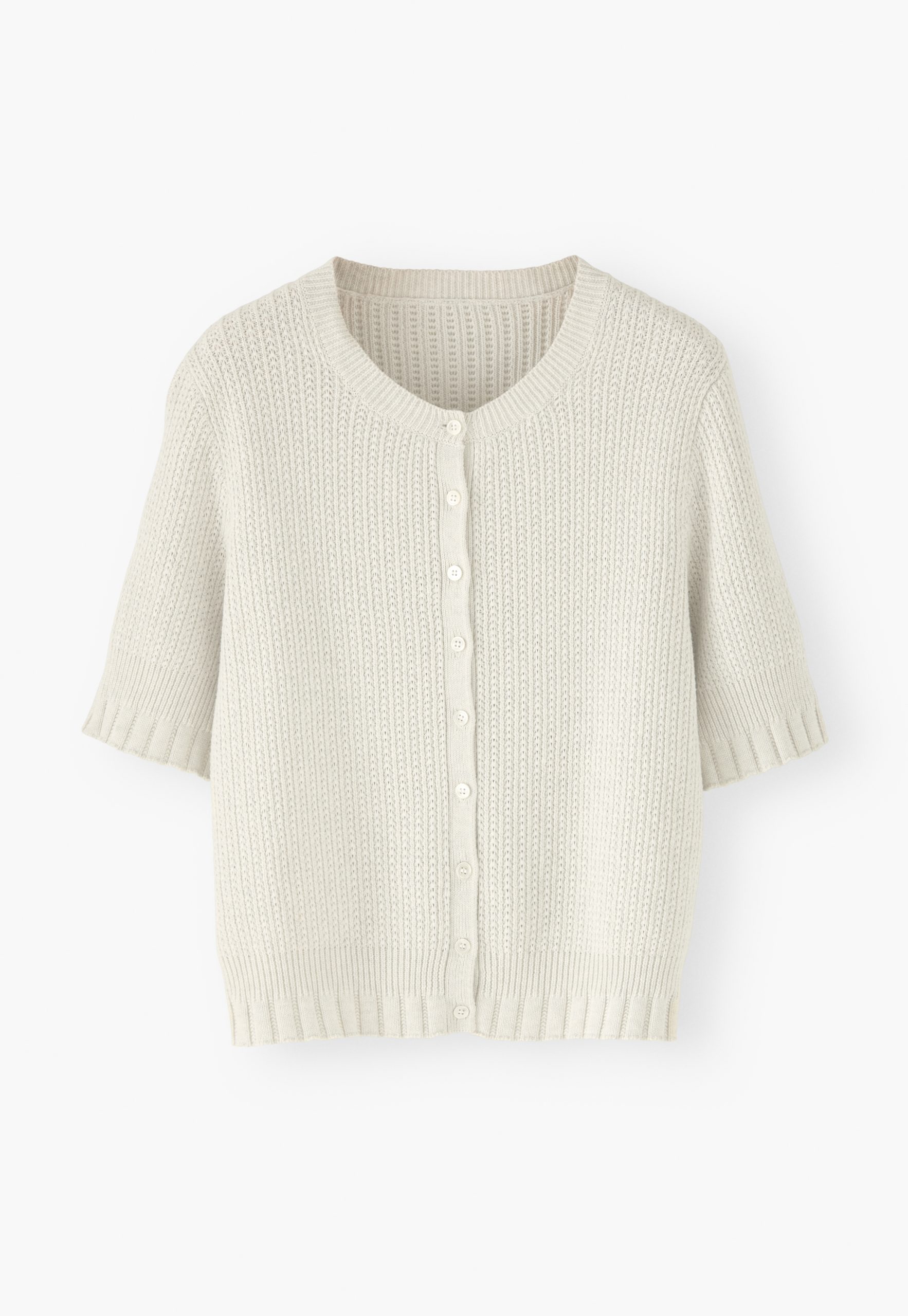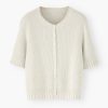 For when you want an extra layer but a full-sleeve feels too much, this neat organic cotton cardigan hits the spot. Knitted with a neat all-over tuck stitch and with elbow-length sleeves, it’s pretty and pleasing.