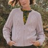 - Cable-stitch detail on front body and sleeves