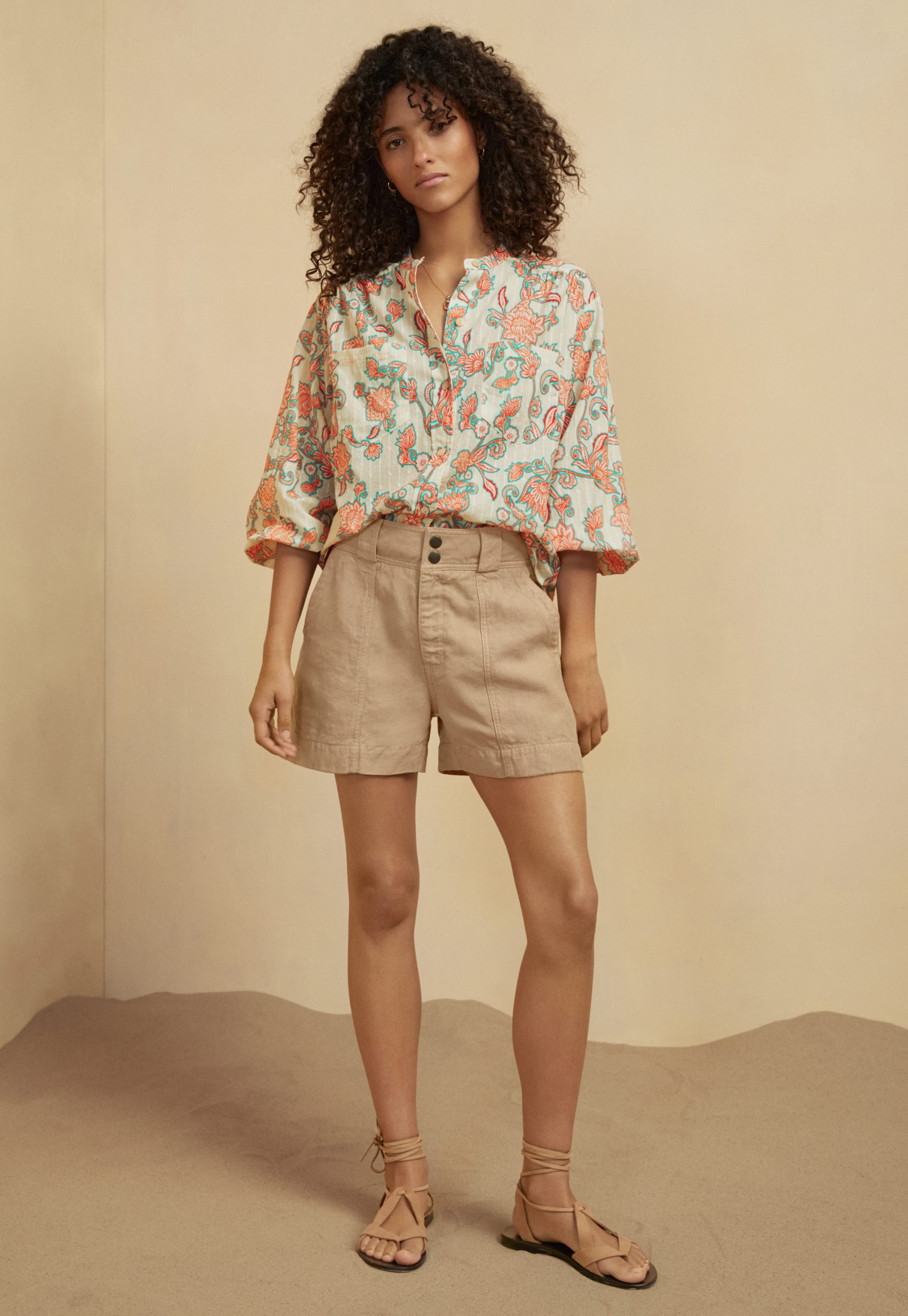 Wrap London Women’s Contrast-fabric Shorts | Sand