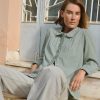 Wrap London Women’s Cord Pleated Blouse | Dusty Duck Egg