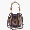 - Removable rope strap with leather trims and shiny Brass finish clasps