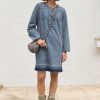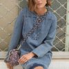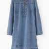 A great casual dress in lightweight, washed denim with contrast-coloured stitch details. Designed to look like a much-loved favourite with a let-down hem detail and a raw edge finish. With full-length sleeves and essential side-pockets.