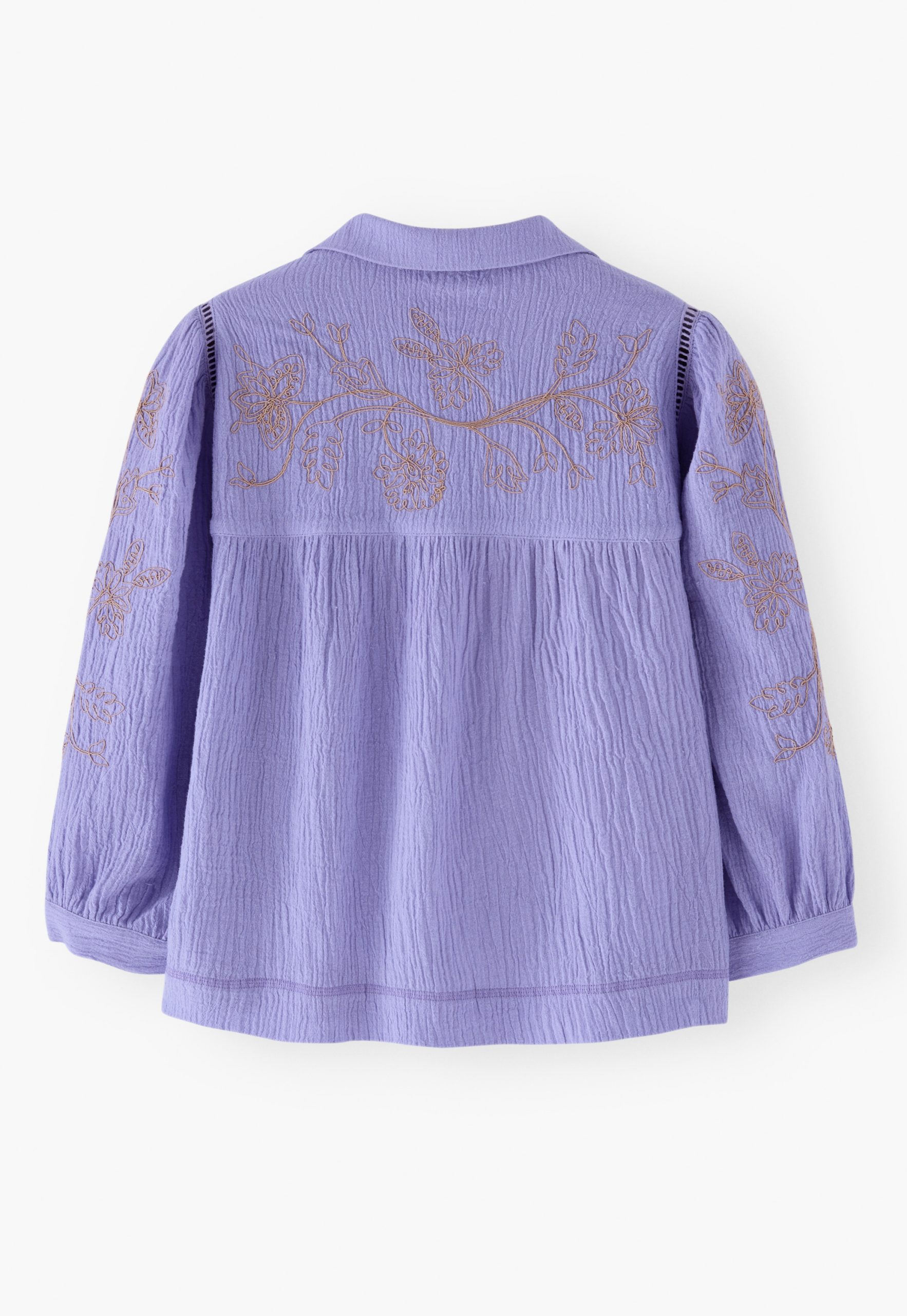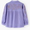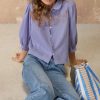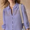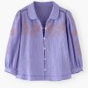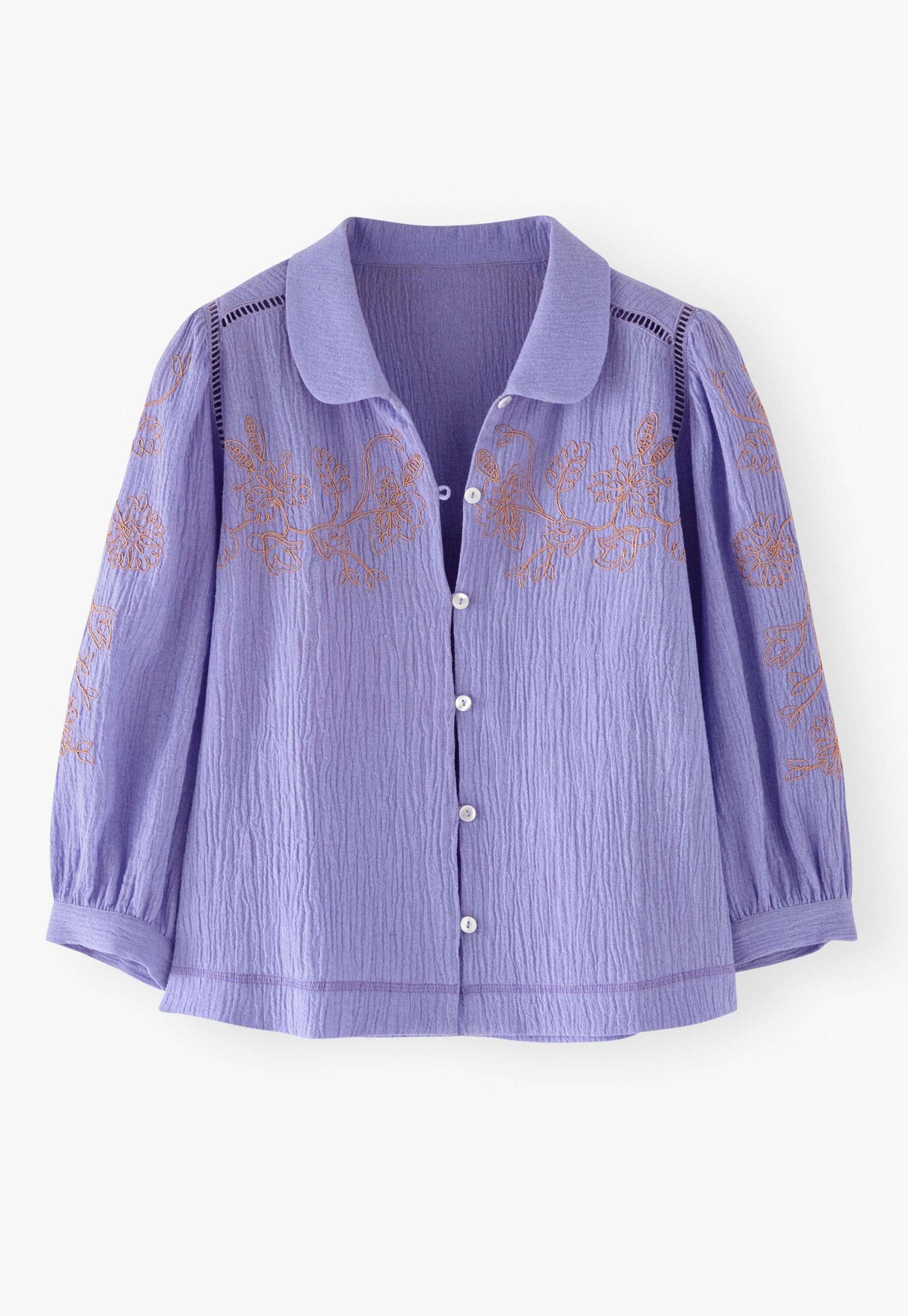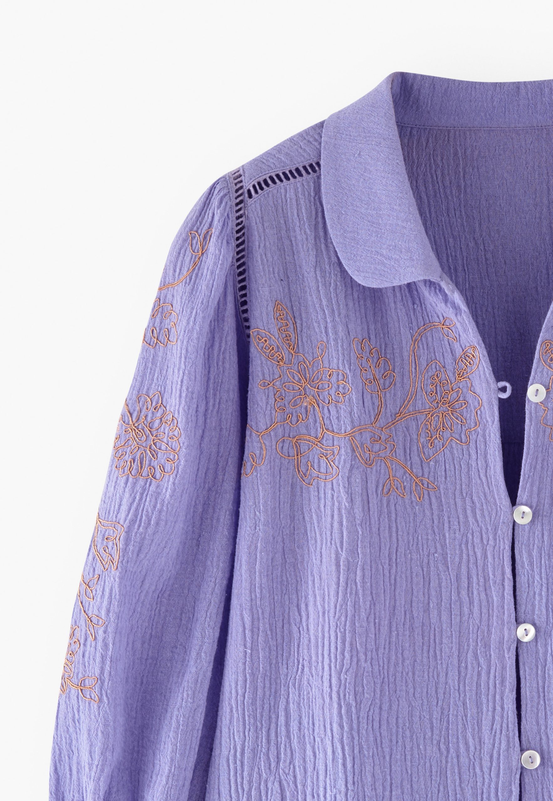 If you’re off on a mini-break, this crinkle cotton and linen blouse is a great one to pack as it looks as good coming out of the case as it did going in. Boxy fit with a soft rounded collar, the highlight is the fine-line embroidery front and back and down the sleeves.