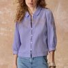 If you’re off on a mini-break, this crinkle cotton and linen blouse is a great one to pack as it looks as good coming out of the case as it did going in. Boxy fit with a soft rounded collar, the highlight is the fine-line embroidery front and back and down the sleeves.