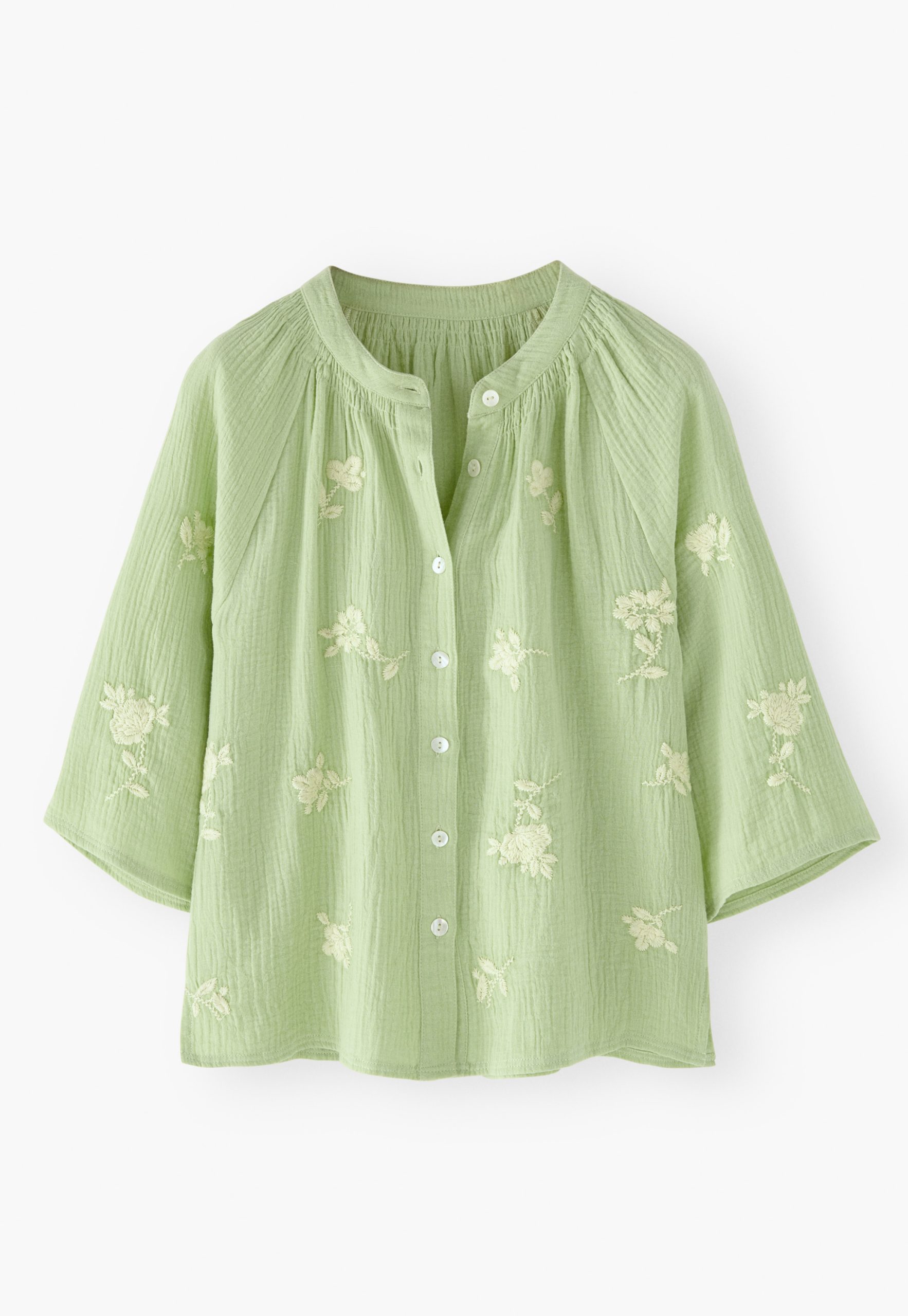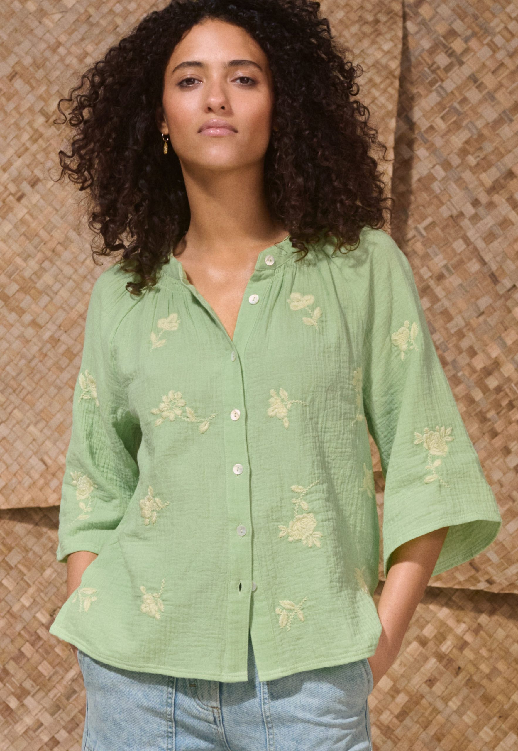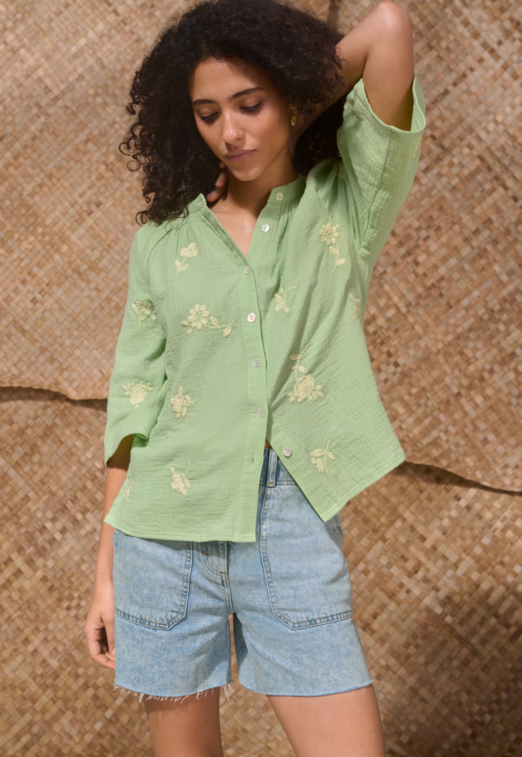 Wrap London Women’s Embroidered Blouse | Pistachio Mint