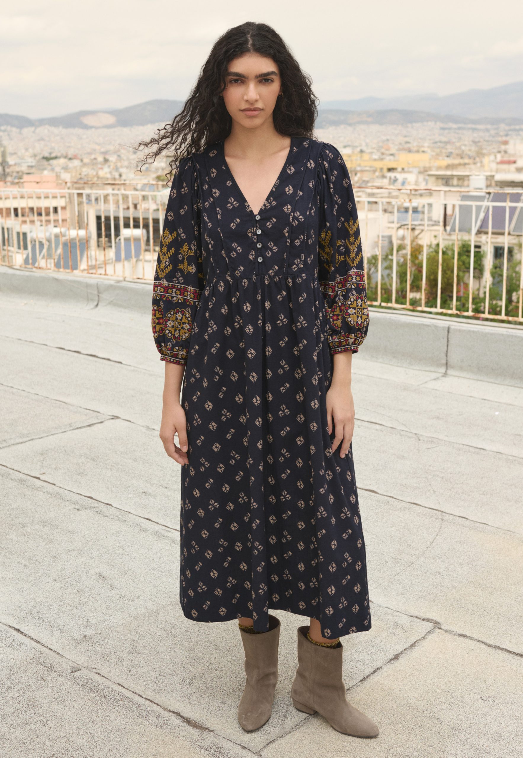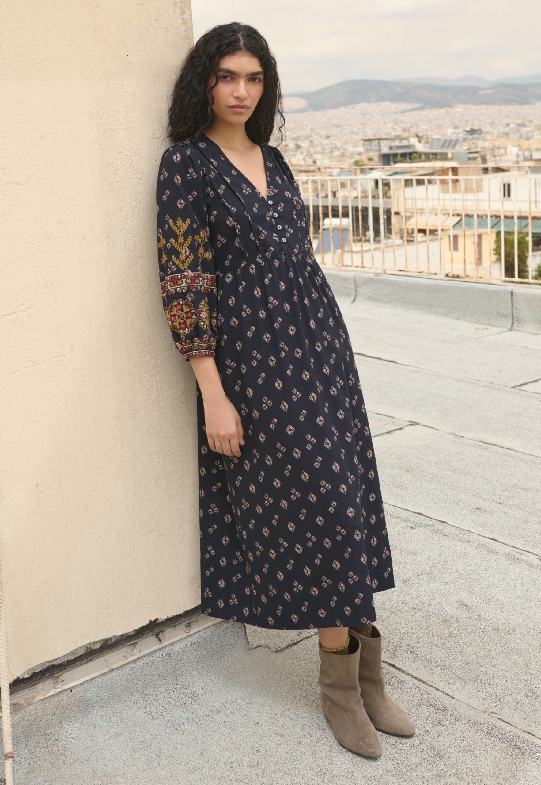Wrap London Women’s Embroidered Printed Dress | Midnight