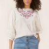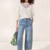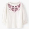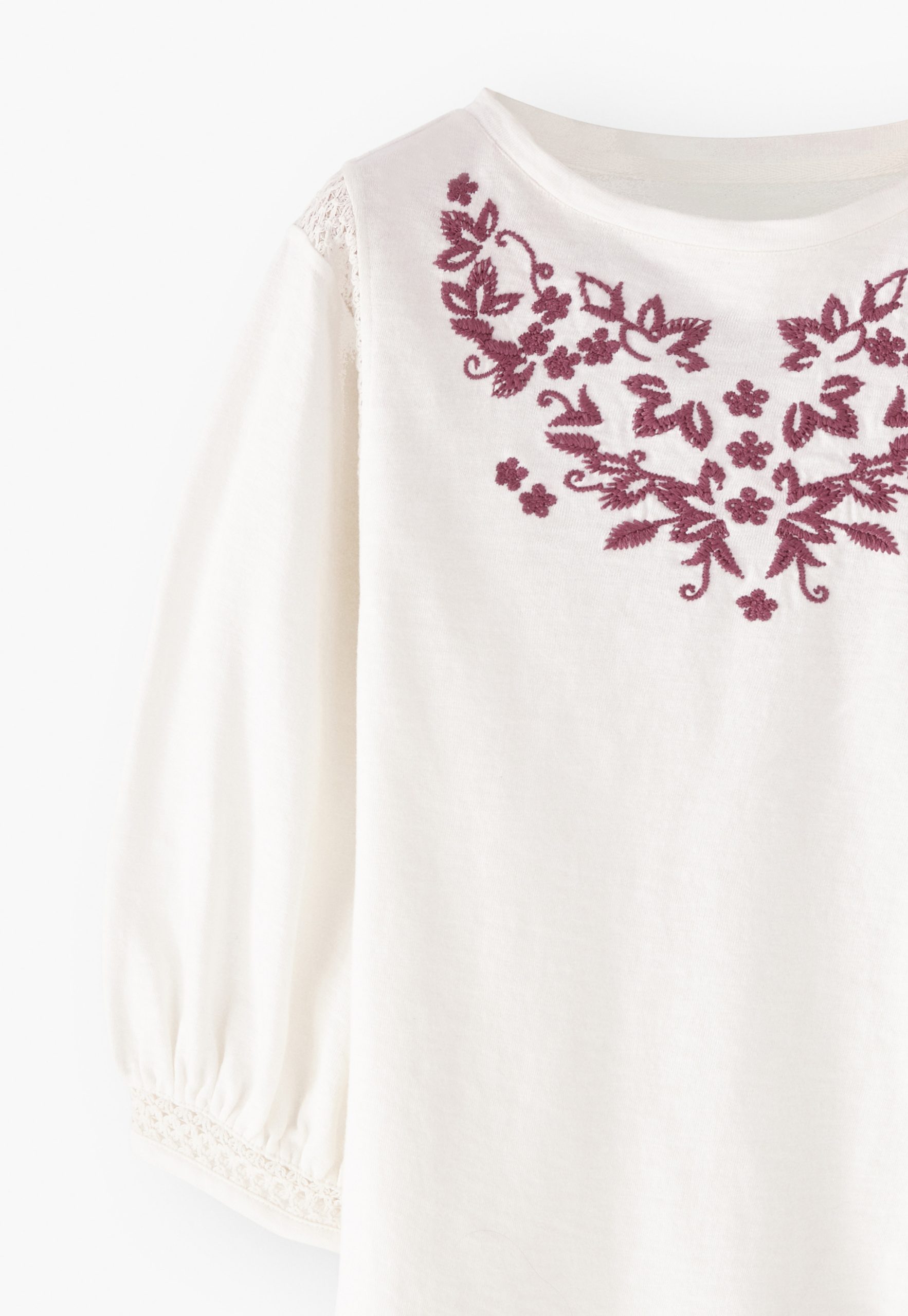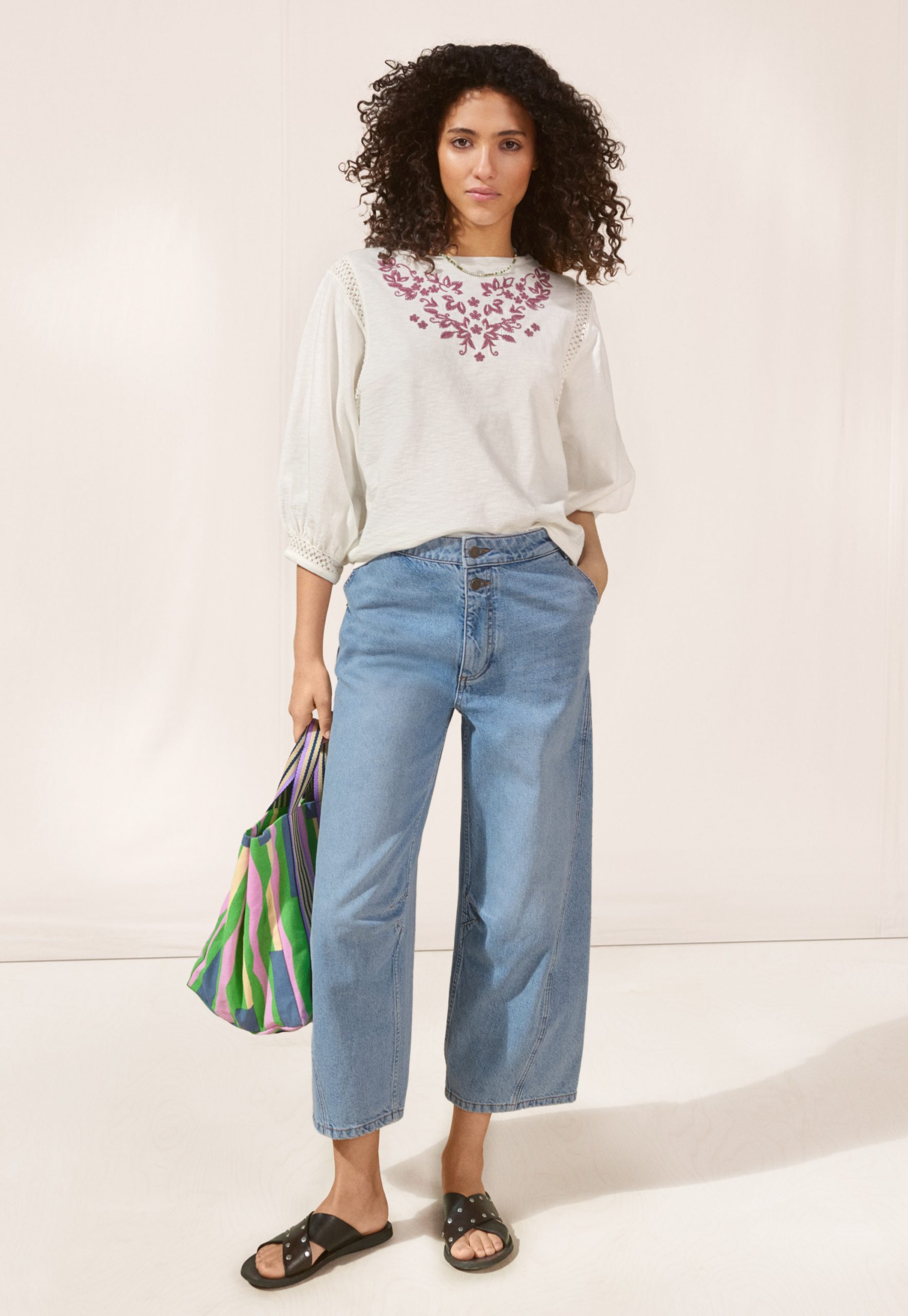 The ease of a sweatshirt with an elevated look thanks to the lovely embroidery detail at the front and the lace inserts at the arms and cuffs.