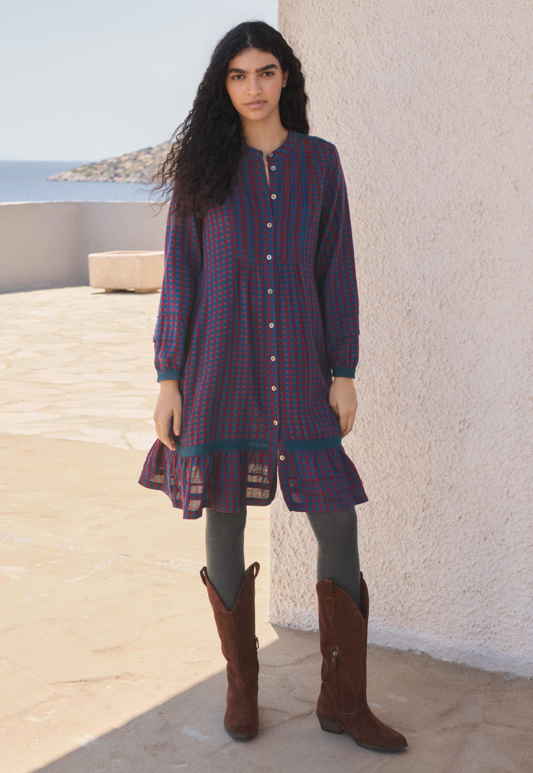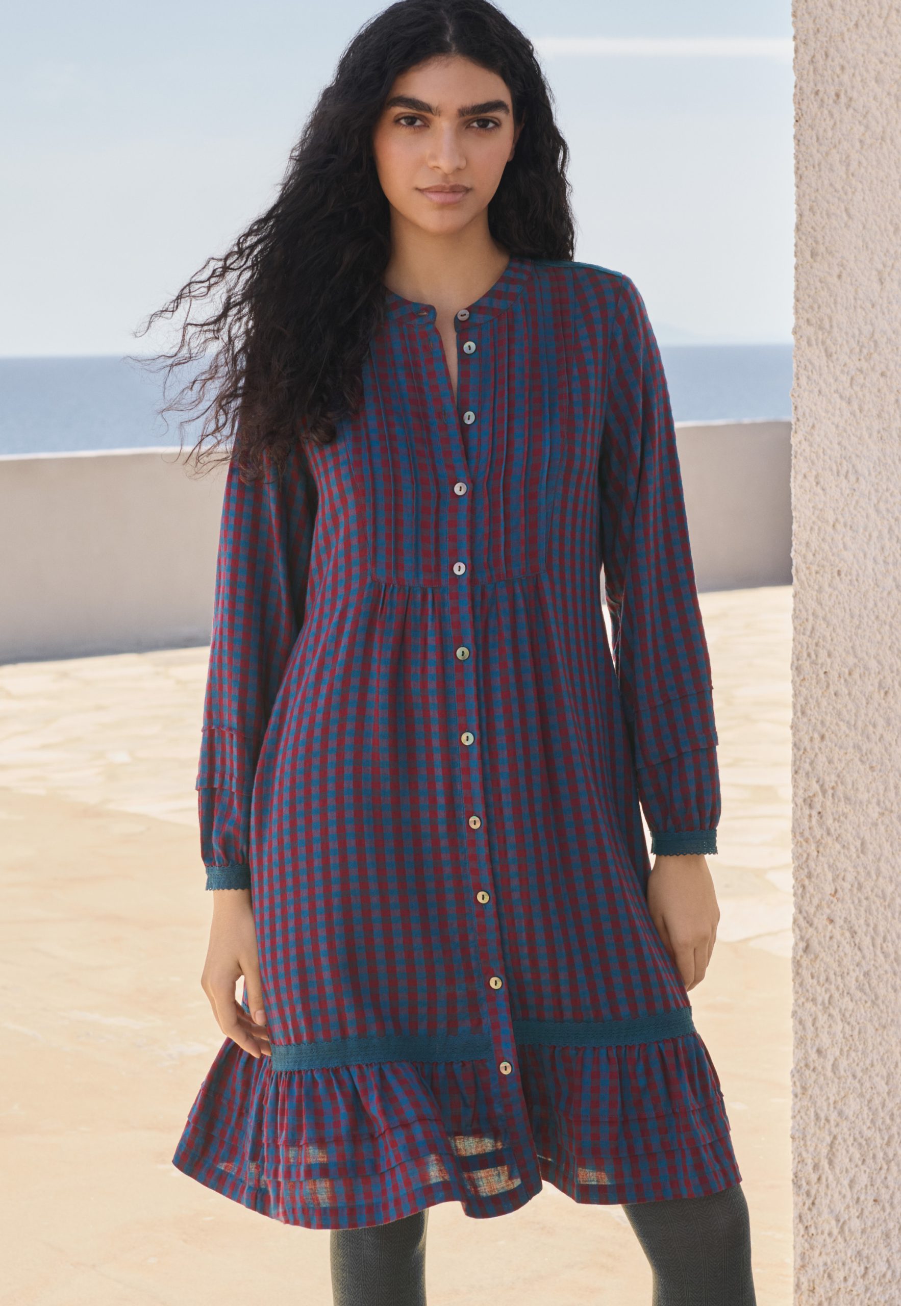 Wrap London Women’s Gingham Dress | Petrol Burgundy
