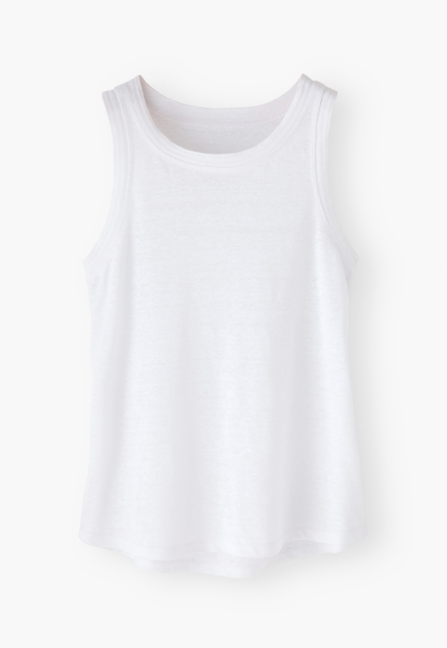 Our popular lightweight linen vest in a new shape for summer. With a neat trim detail around the neckline and armholes, the fit is as relaxed as Sunday morning.