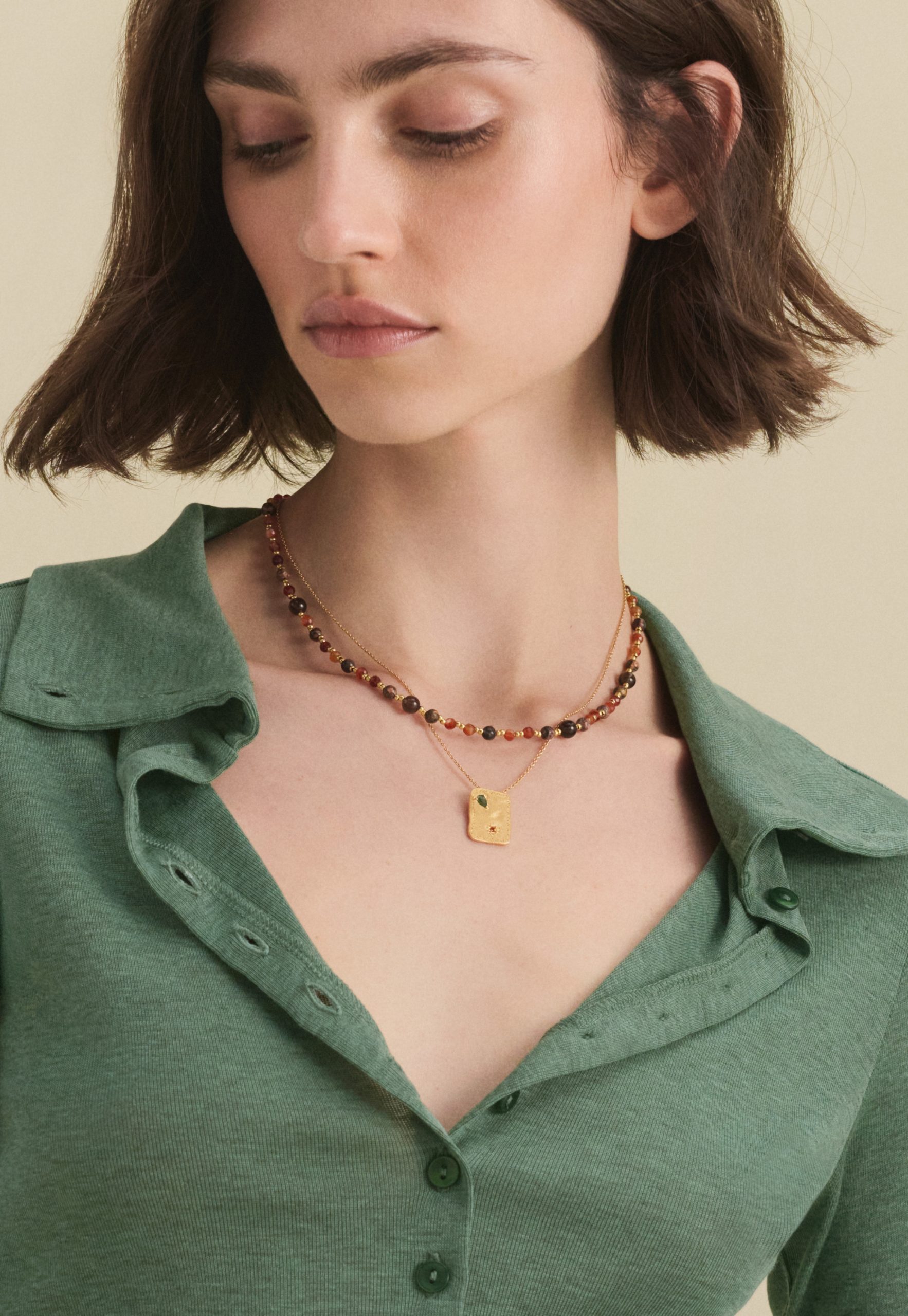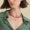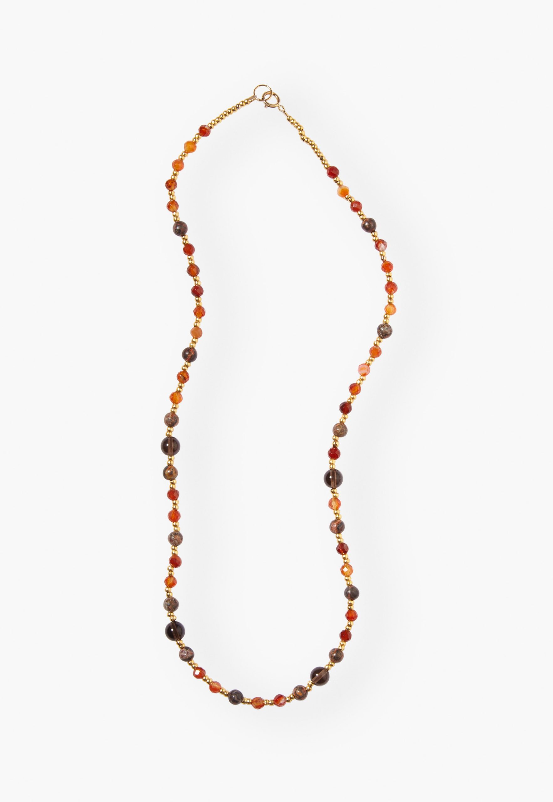 - Orange agate and smoky quartz beaded necklaceGold vermeil beadsAlternating bead patternRound clasp fastening