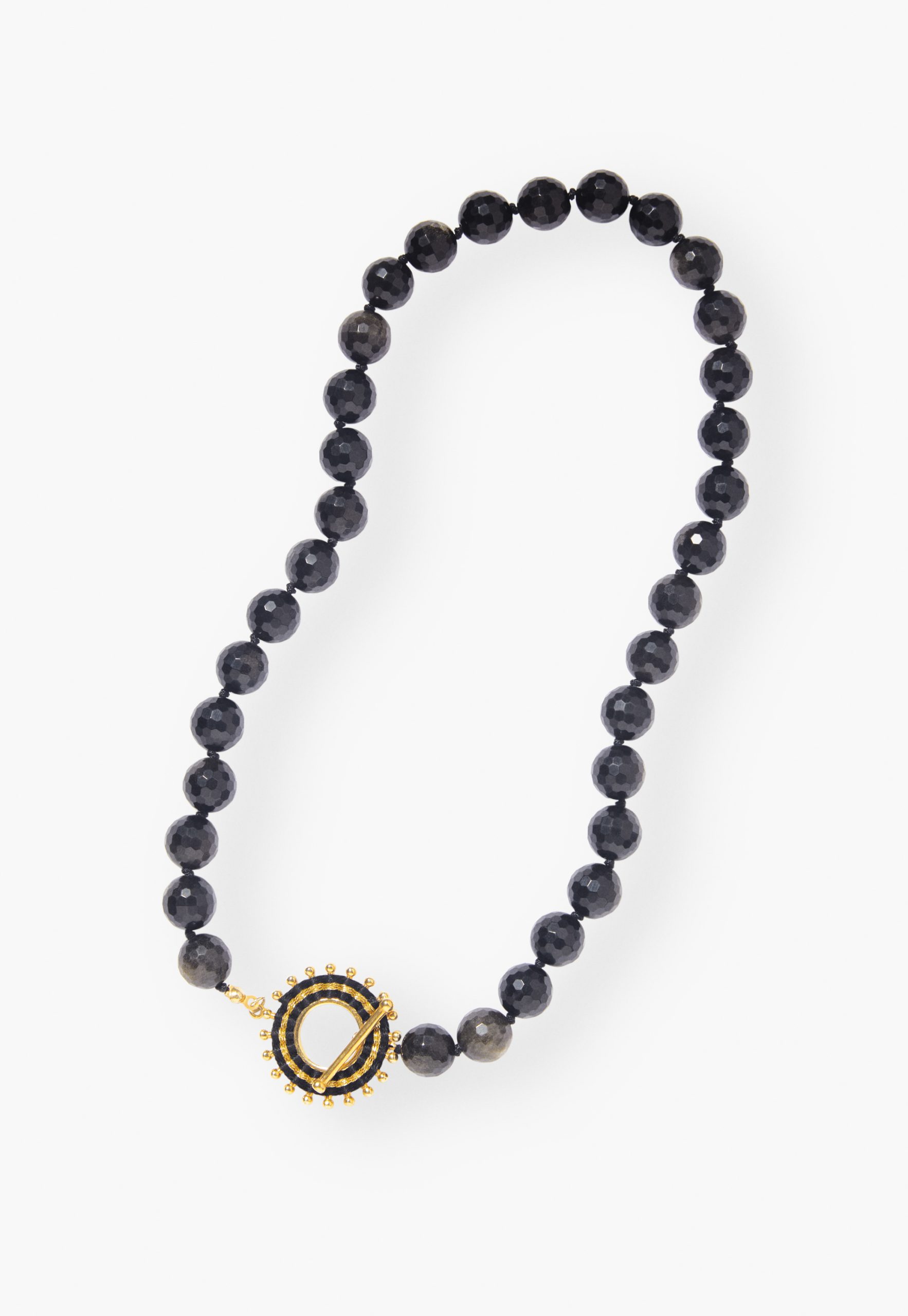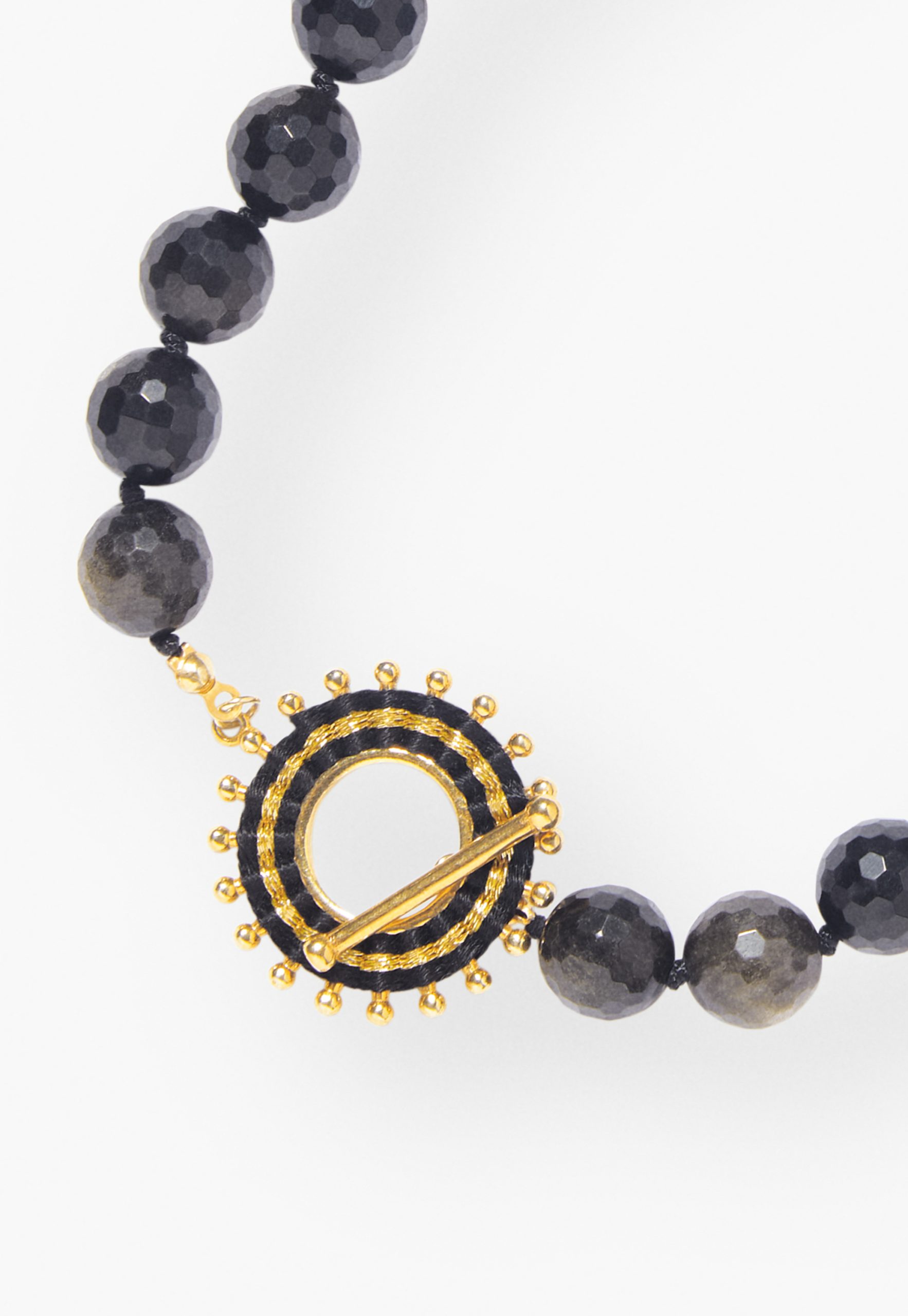 - 90% Natural Obsidian Stone 10% 18ct Gold-plated Sterling Silver Hand Woven Thread Charm