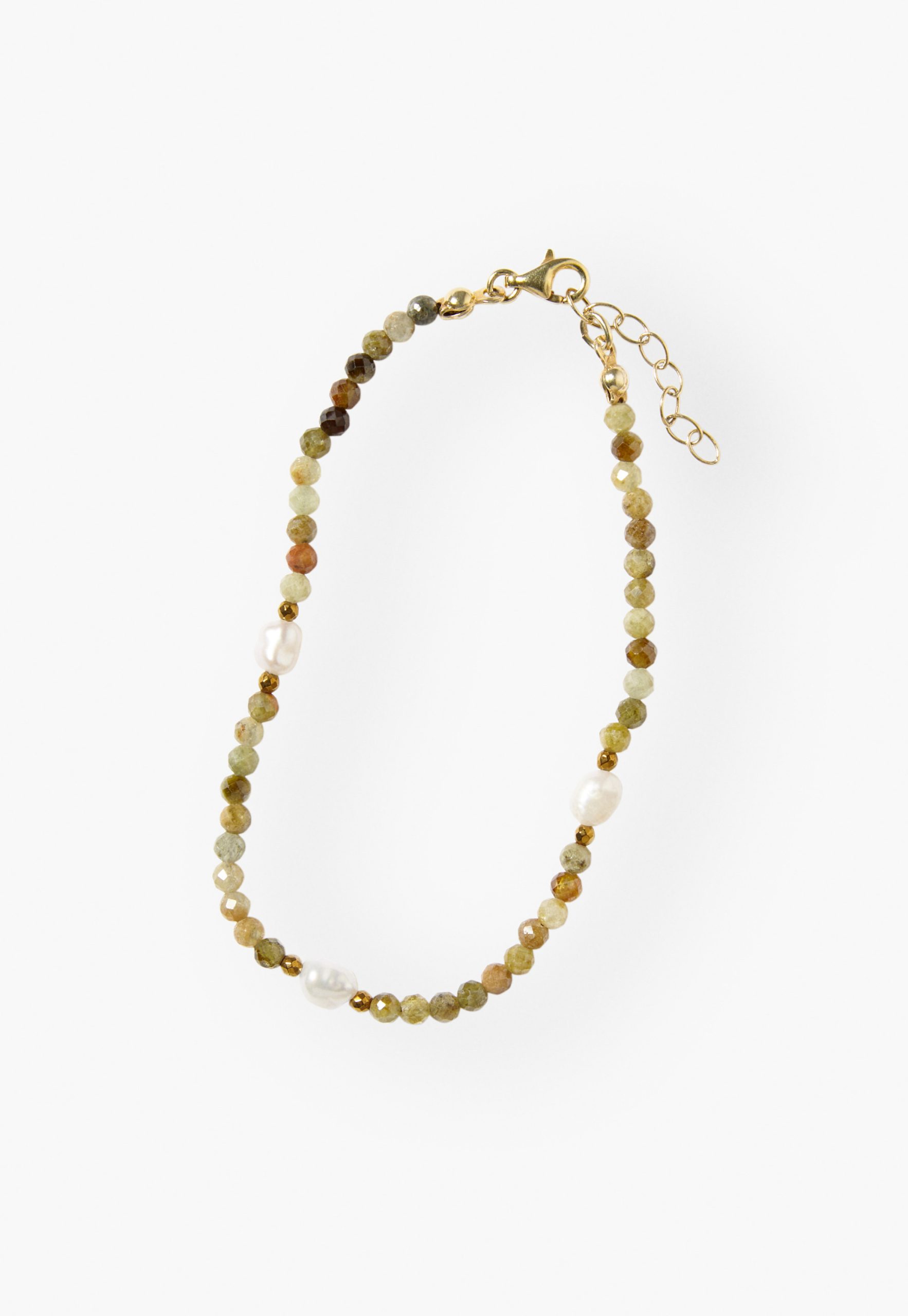 - 75% Green Garnet 10% Fresh Water Pearl 5% Hematite 10% 18ct Gold-Plated Sterling Silver