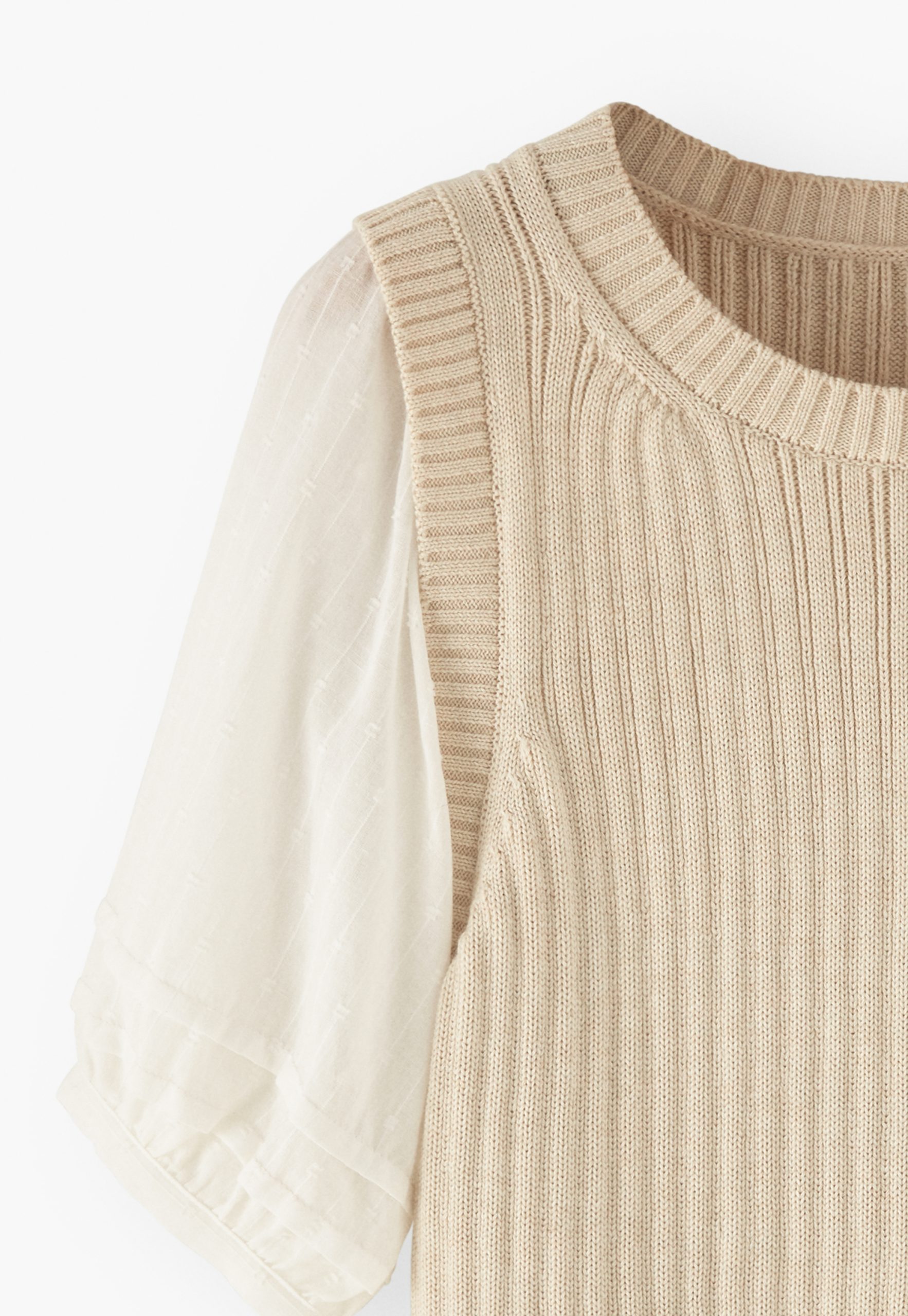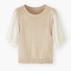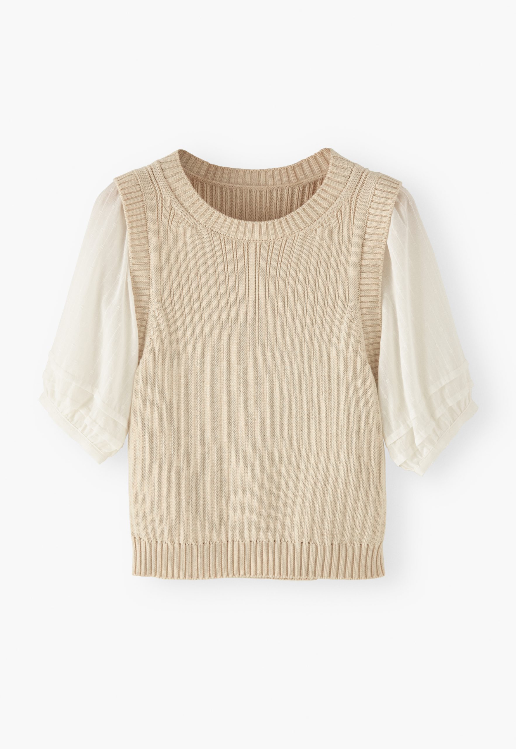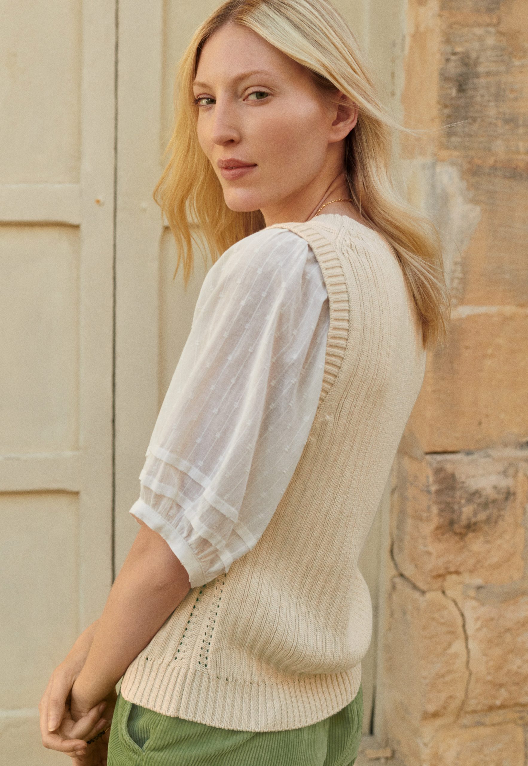 Wrap London Women’s Knit And Woven Mix Top | Soft Buttercream