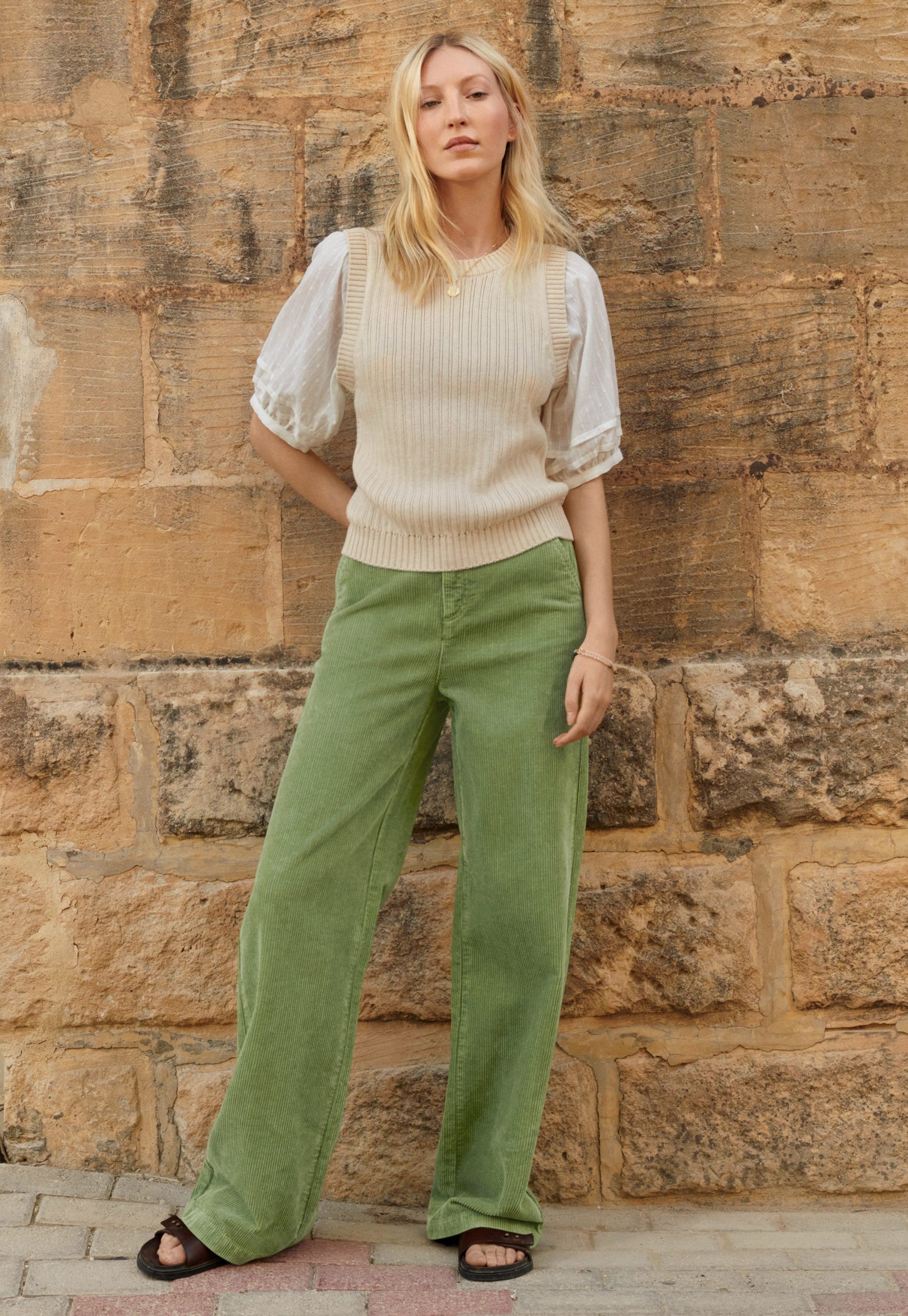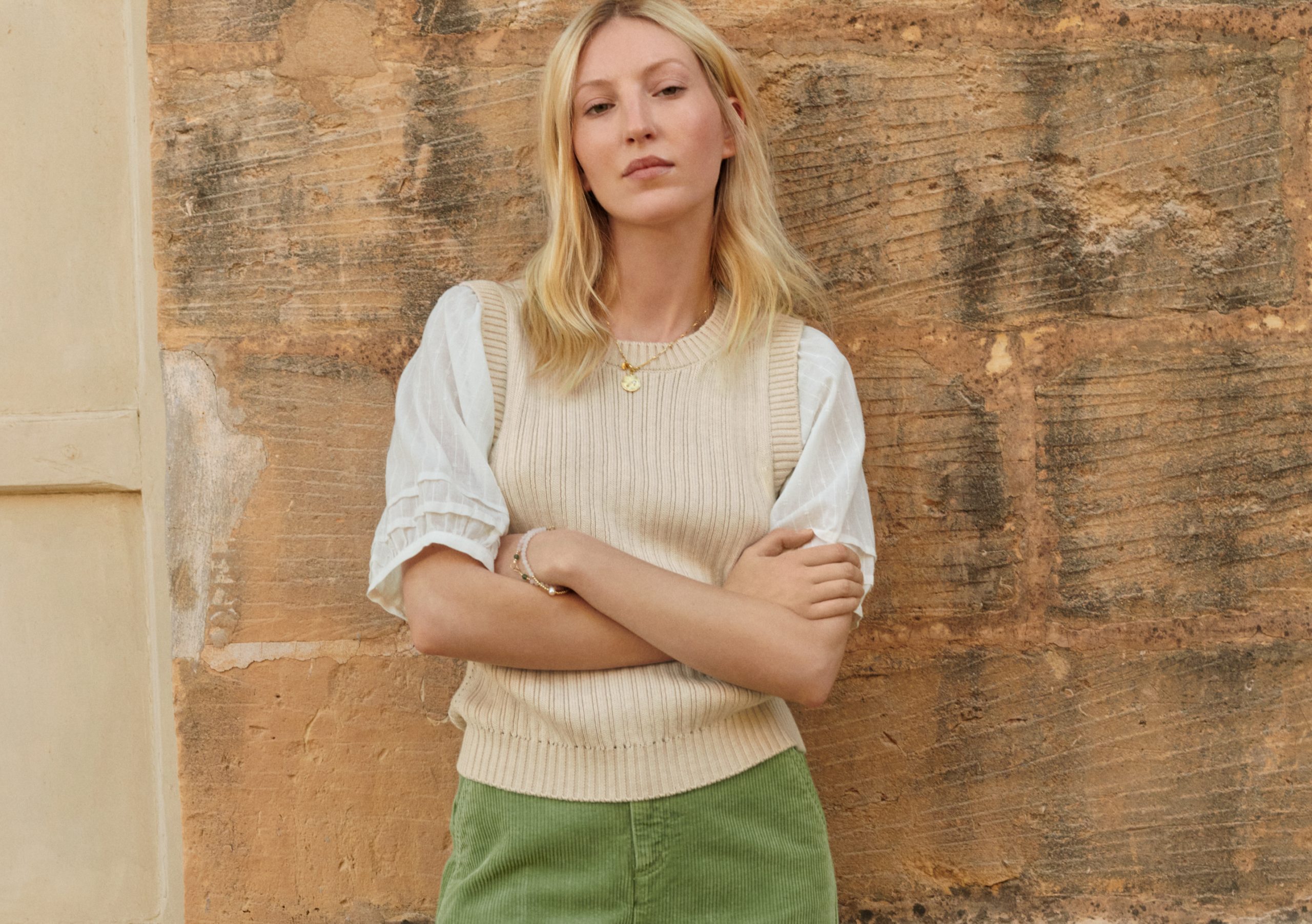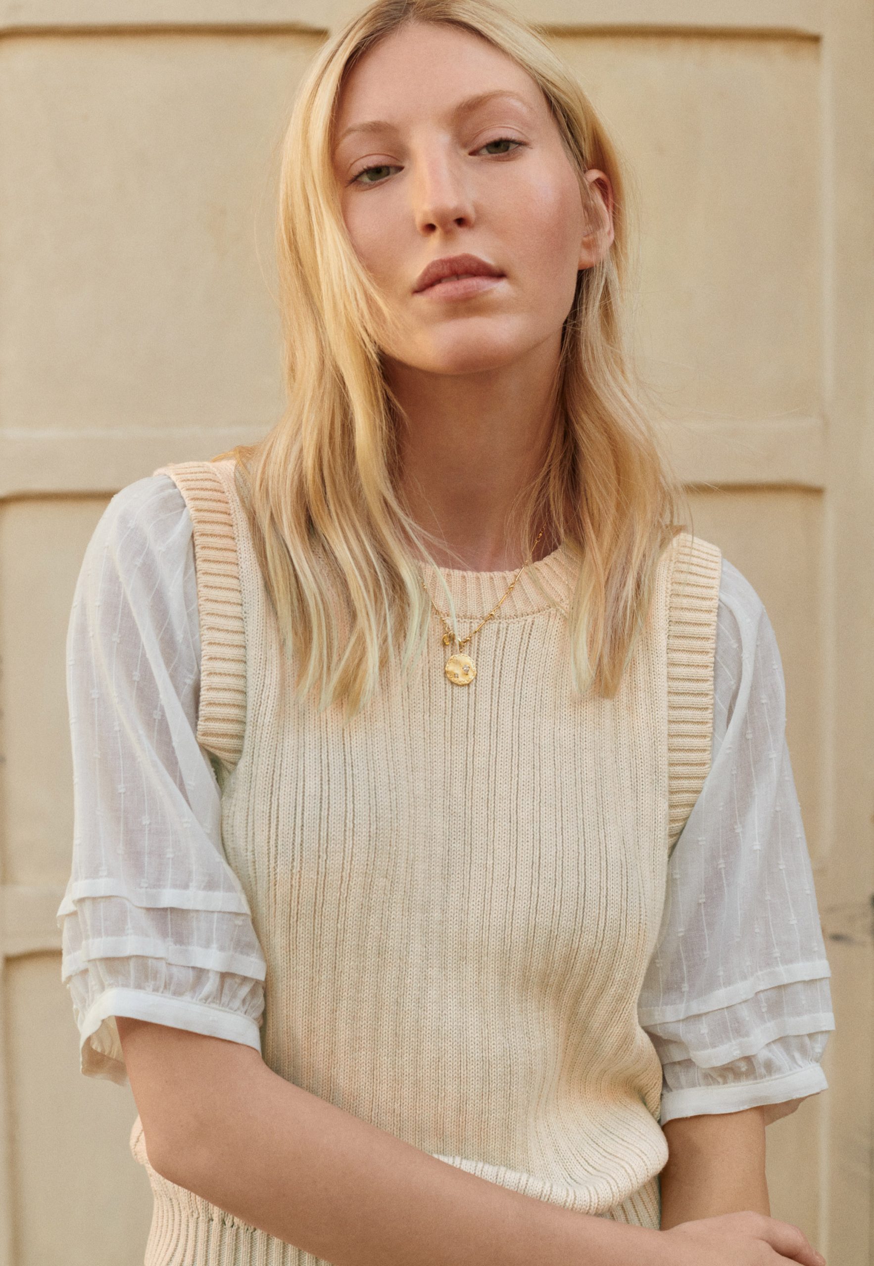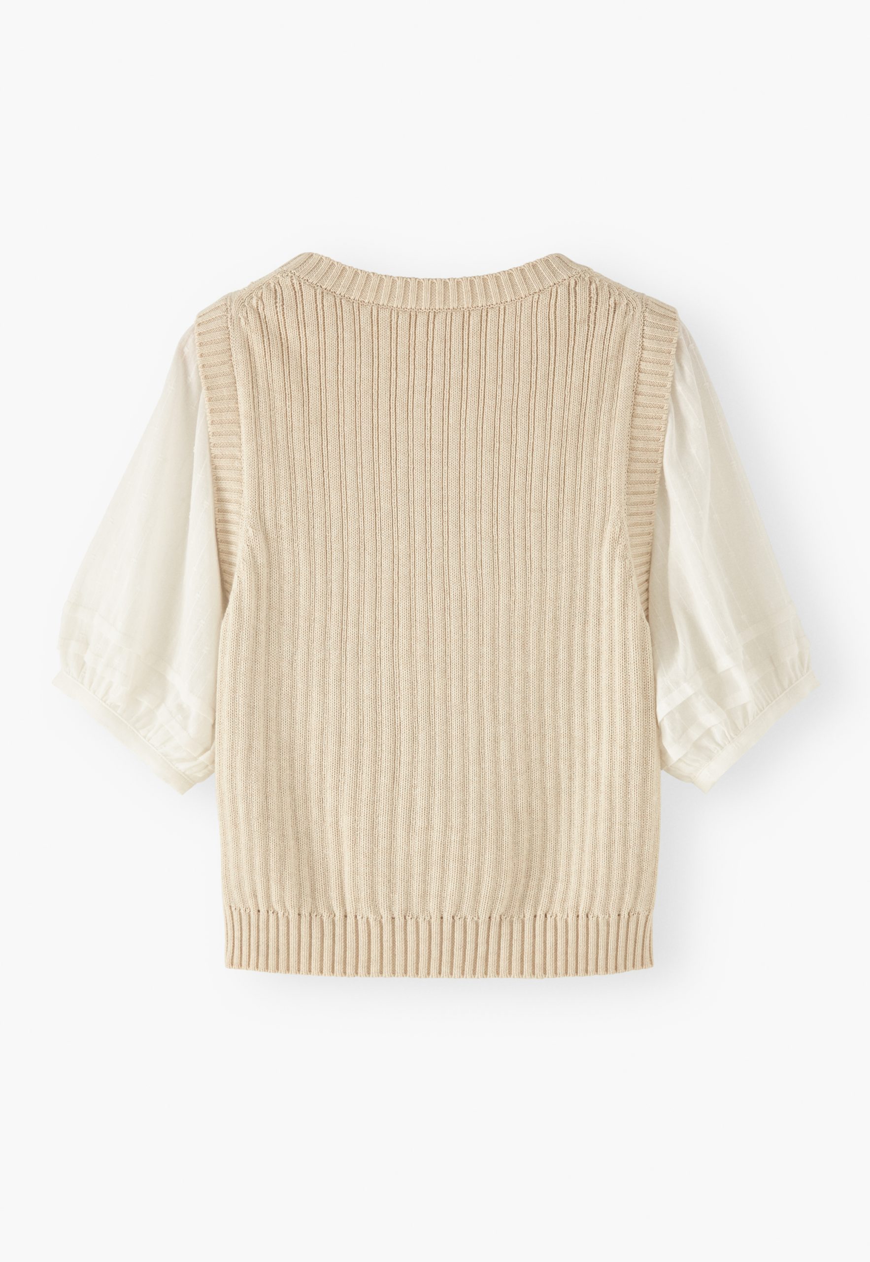 Wrap London Women’s Knit And Woven Mix Top | Soft Buttercream