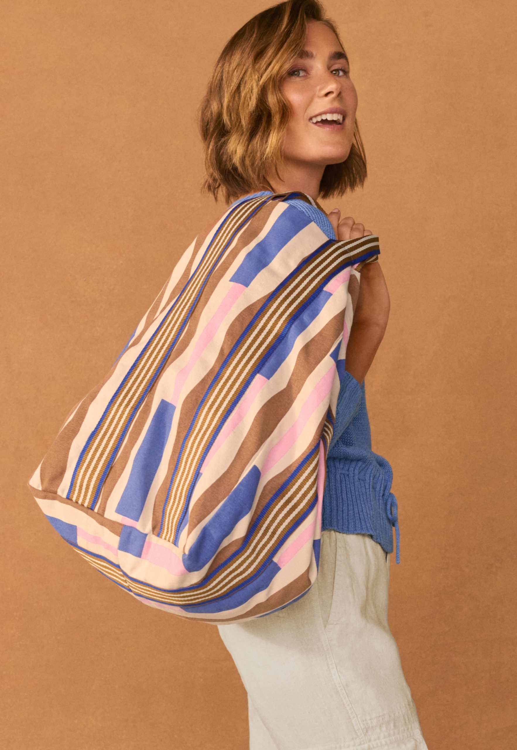 Wrap London Women’s Large Striped Shopper Bag | Tobacco Azure