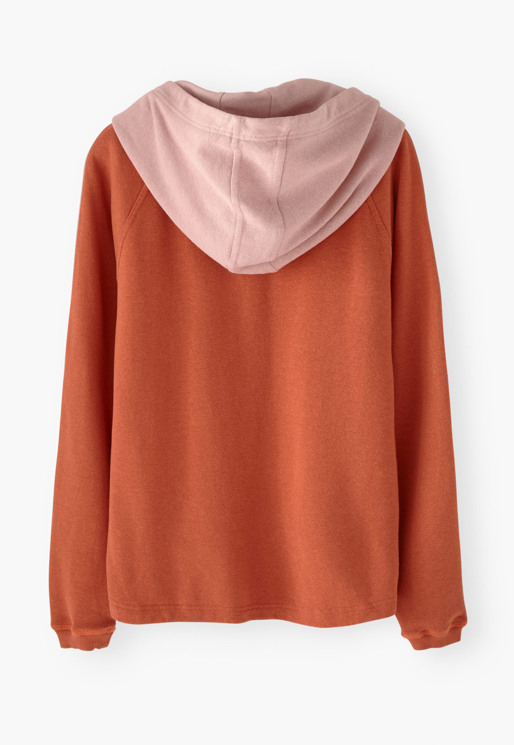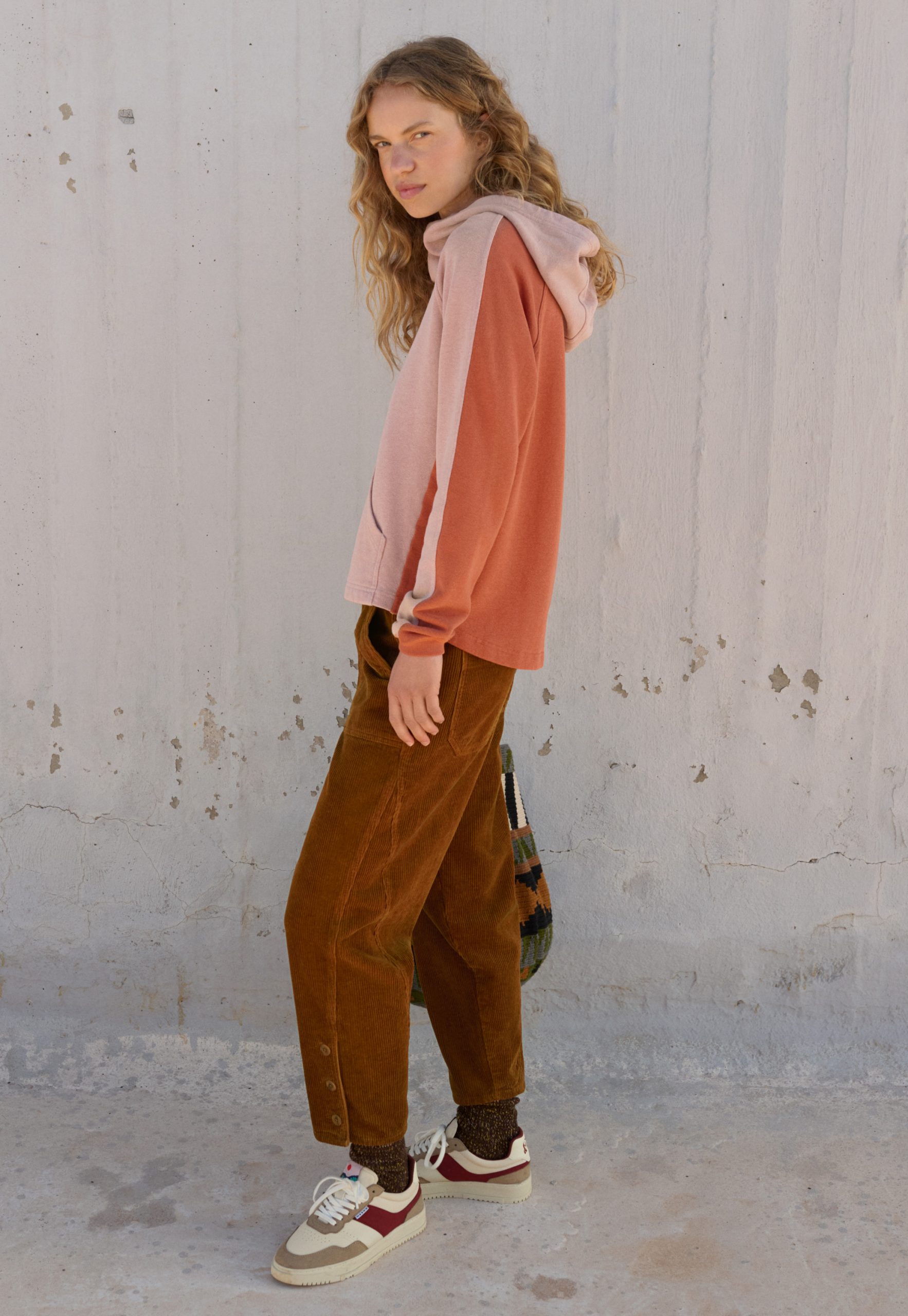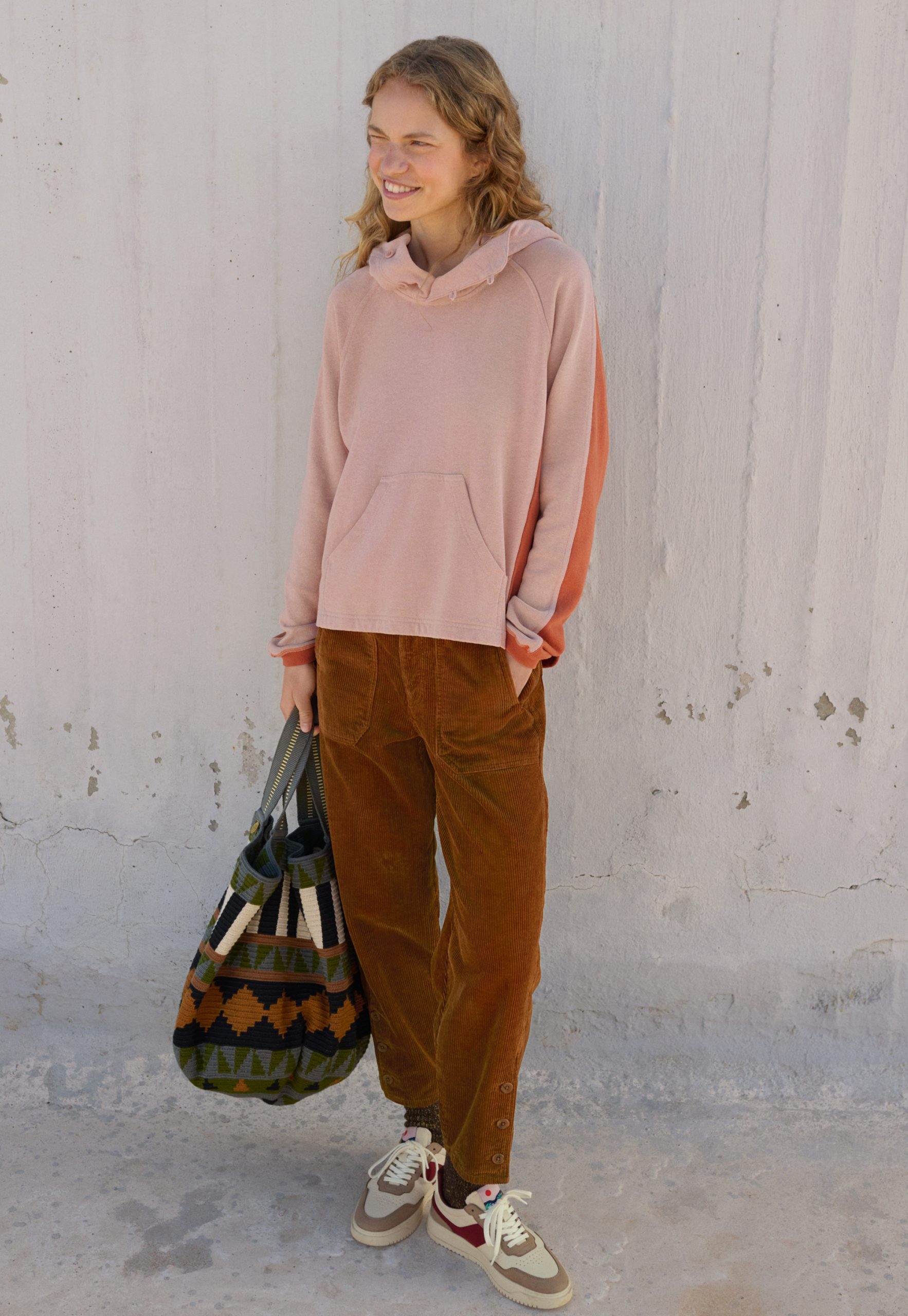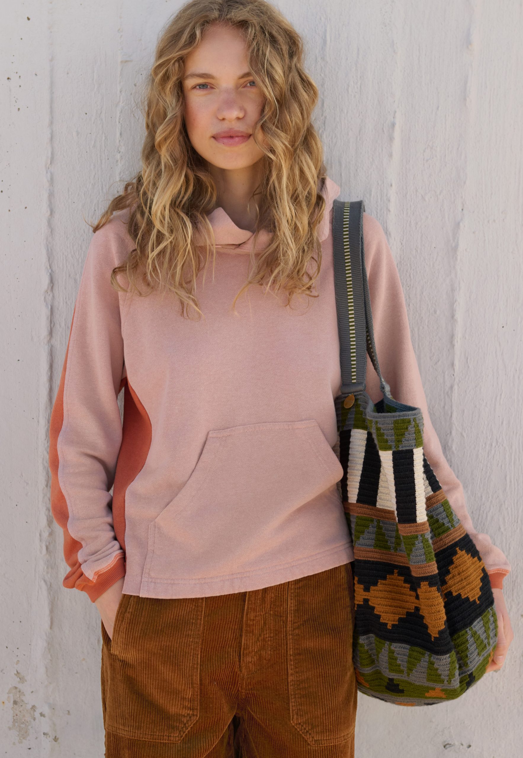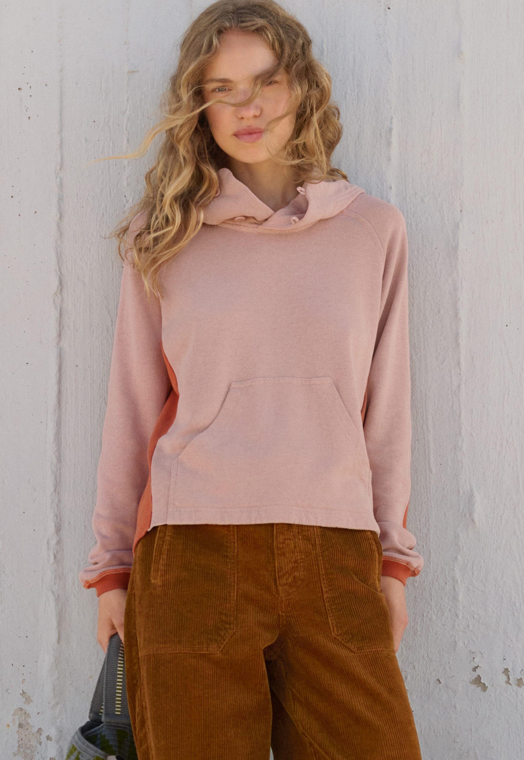 Colour-therapy in hoodie form. In a relaxed fit and made from hemp and organic cotton loopback jersey, this funnel-neck hoodie has contrasting blocks of colour front and back. A roomy pocket at the front will be irresistible for your hands.