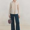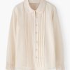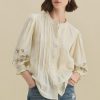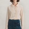 The embroidered collar and cutwork cuffs of this soft chambray cotton blouse are beautifully detailed as is the pintuck detail that runs from collar to hem. Whether worn on its own or under a sweater to reveal the collar, it’s a blouse with form and function.