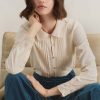 The embroidered collar and cutwork cuffs of this soft chambray cotton blouse are beautifully detailed as is the pintuck detail that runs from collar to hem. Whether worn on its own or under a sweater to reveal the collar, it’s a blouse with form and function.