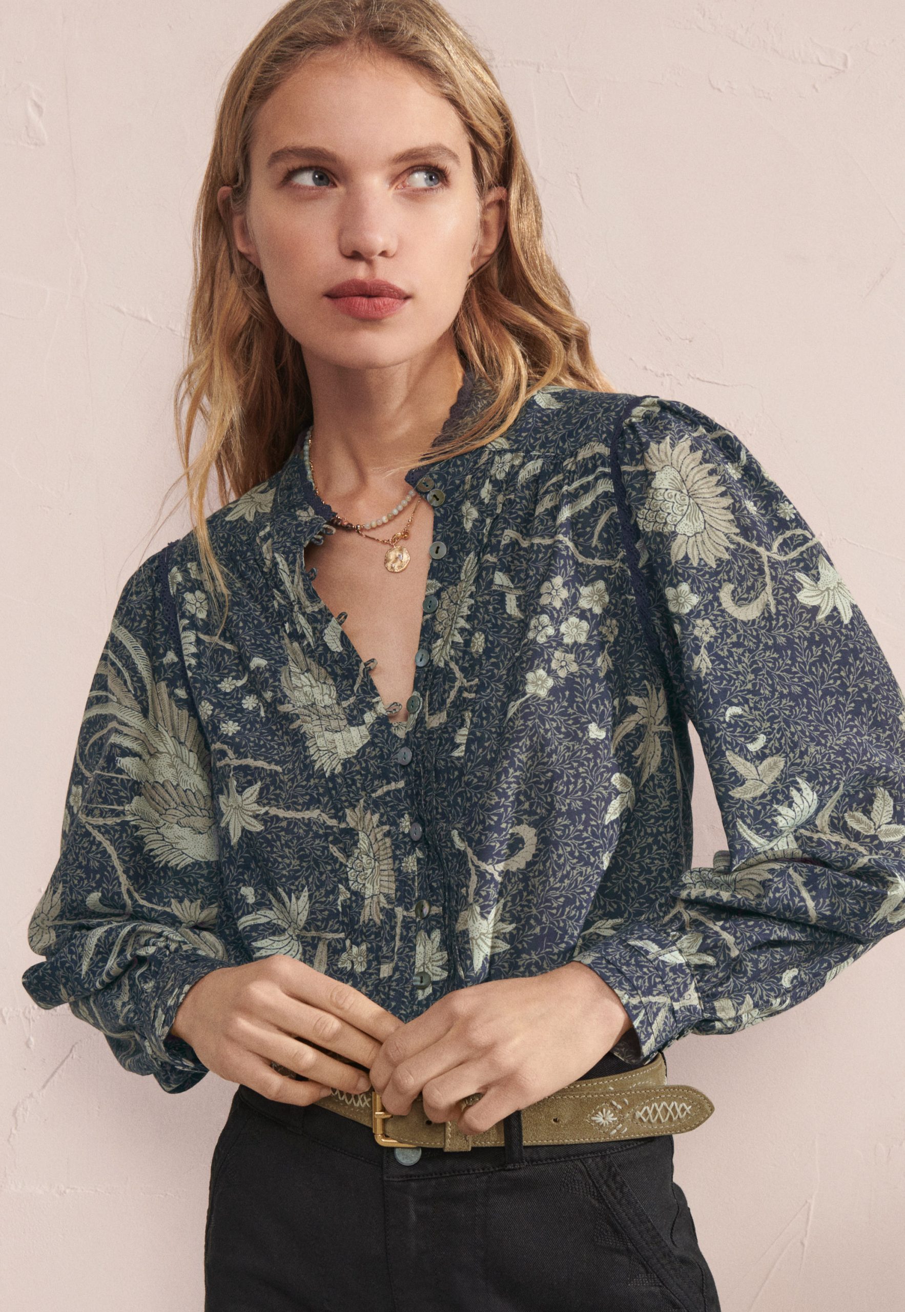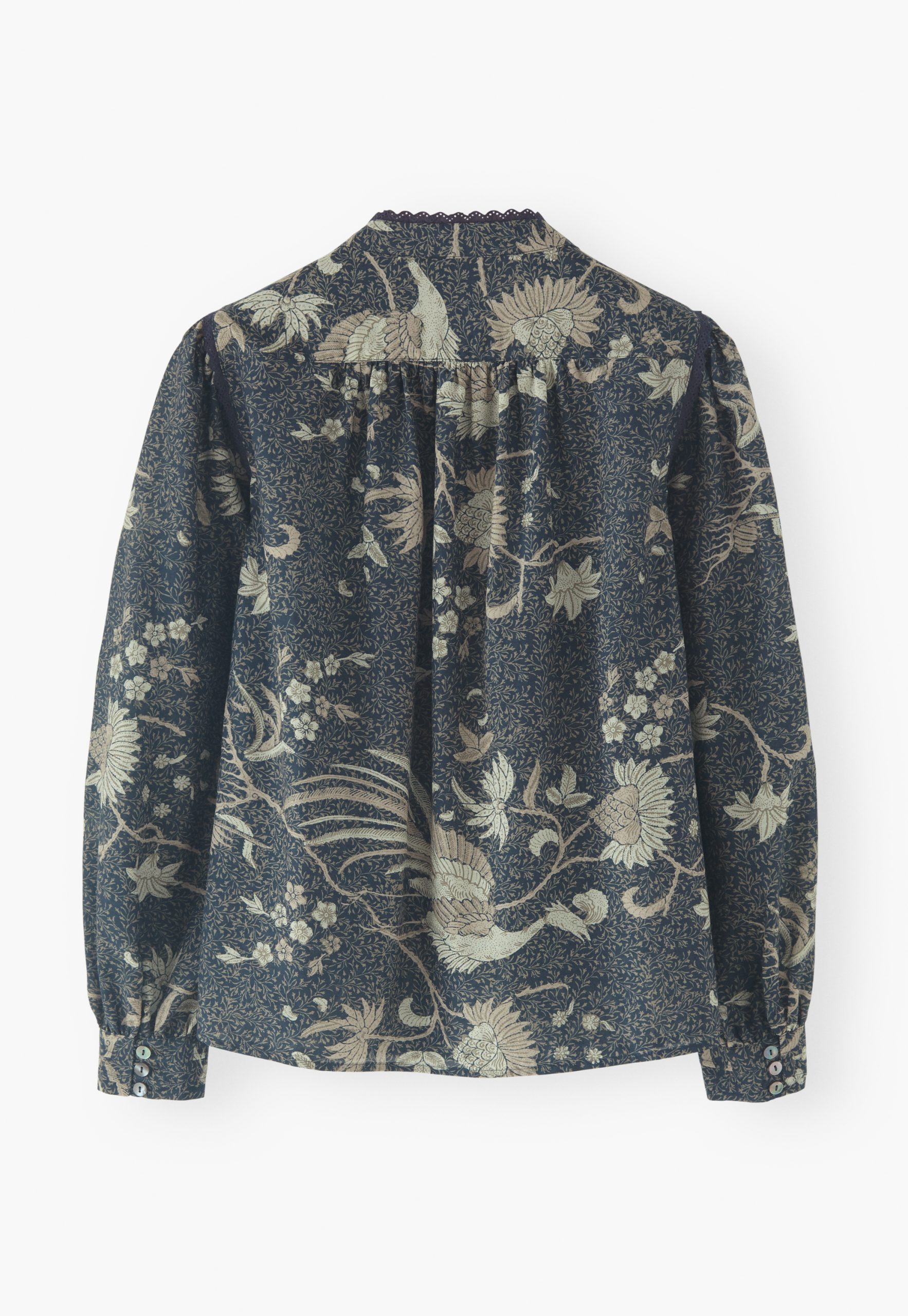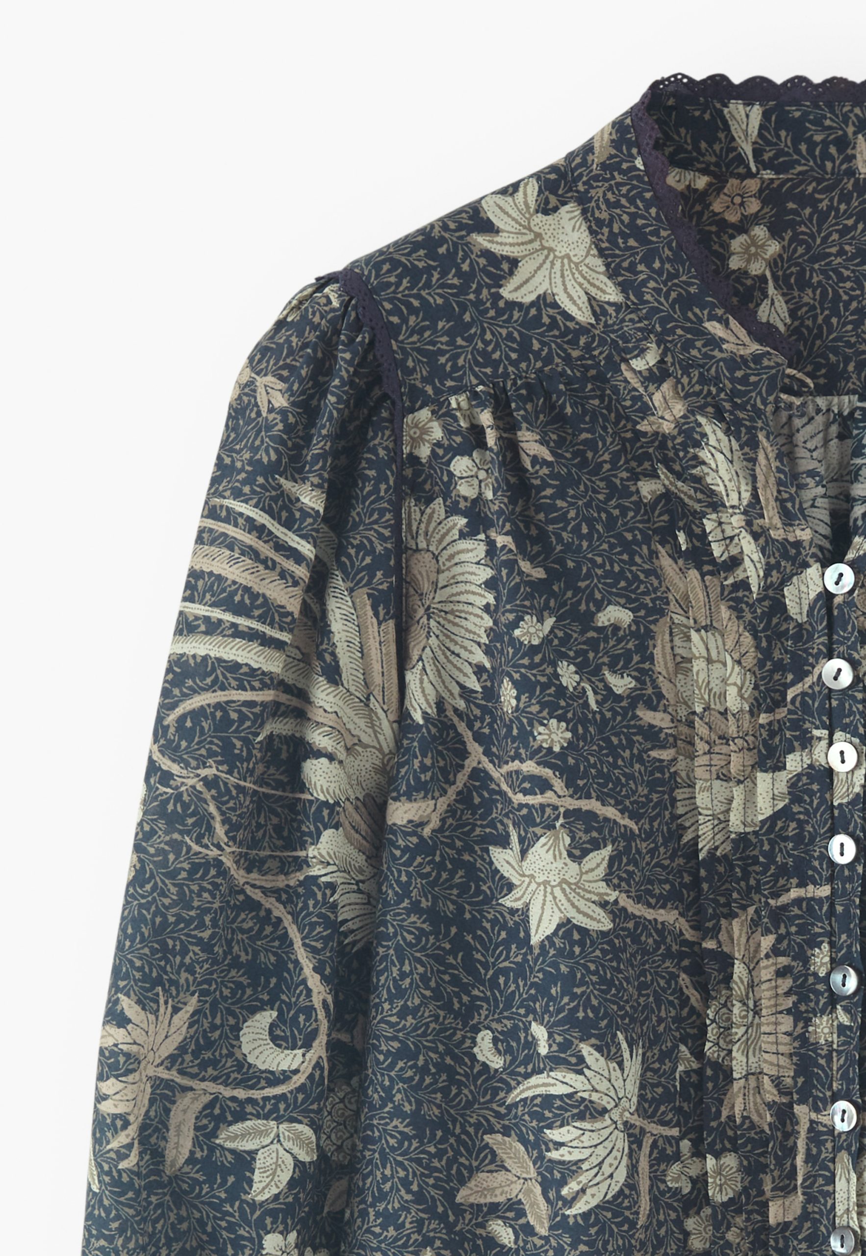 Beautifully detailed, this special silk cotton blouse is lovely and lightweight. Featuring an exclusive Wrap London botanical print, it’s a gorgeous piece for evenings out.