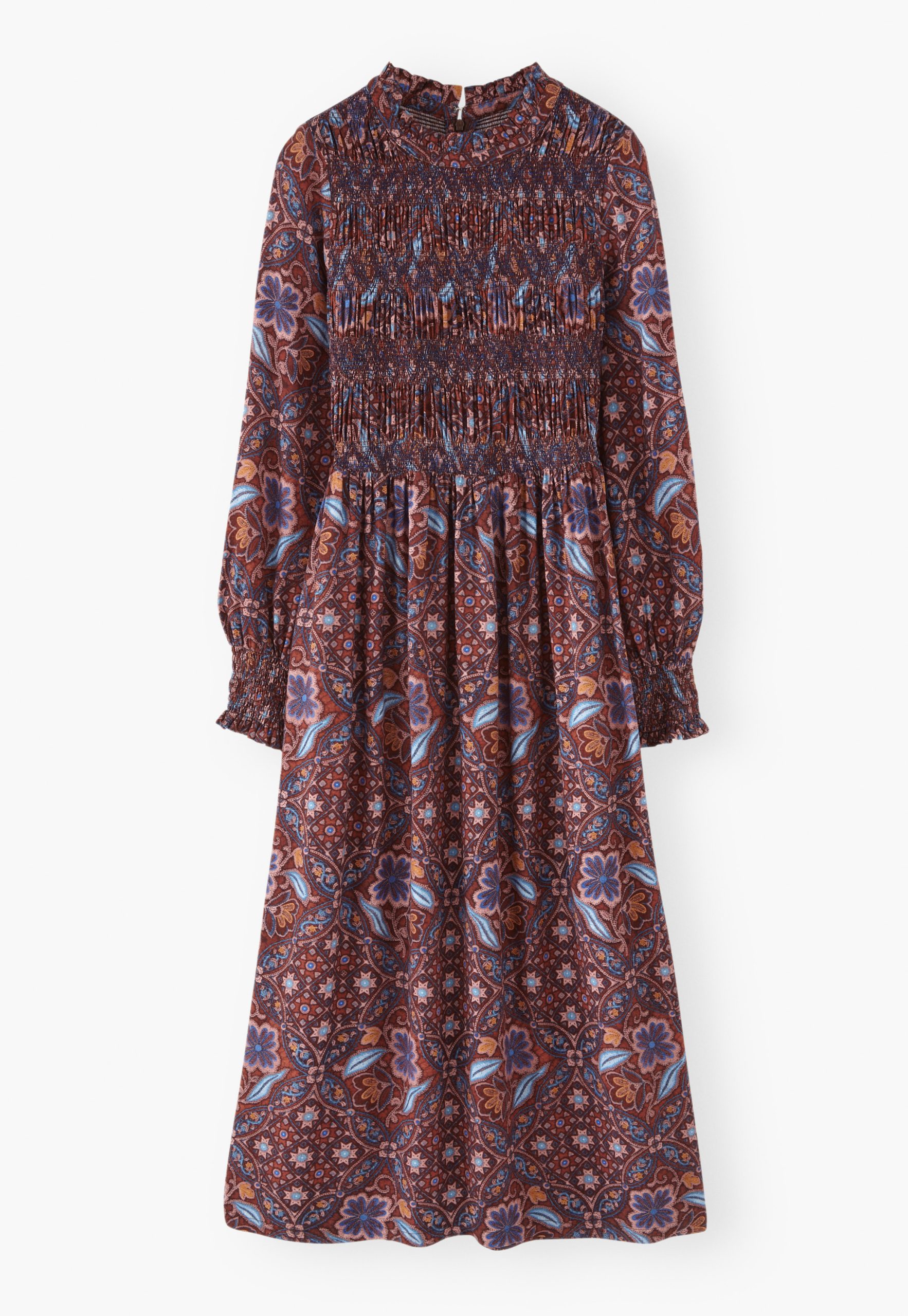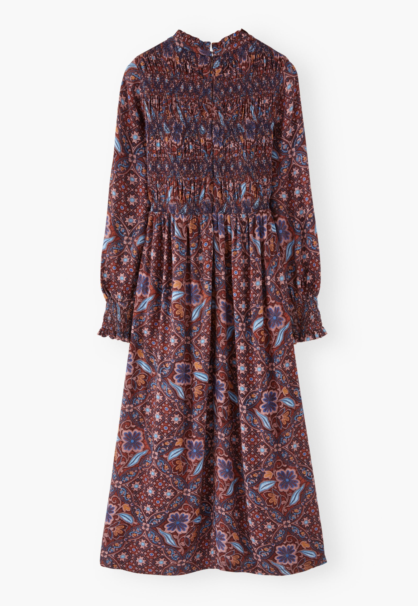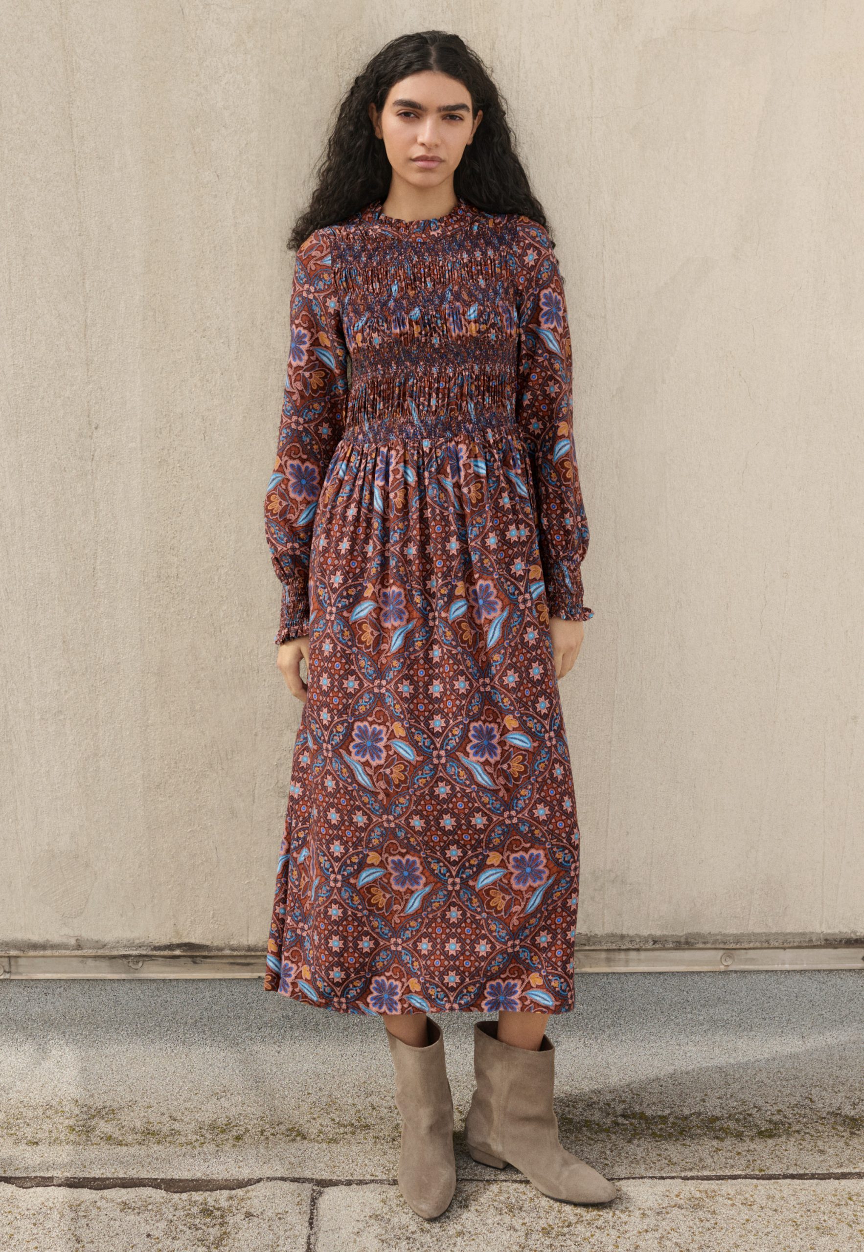 Lightweight and luxe dress in soft lightweight viscose featuring an exclusive Wrap London print and fabulous shirring details that ensure a neat fit. The full-length sleeves finish with more shirring and a frill detail at the cuff – and we didn’t forget to add pockets.