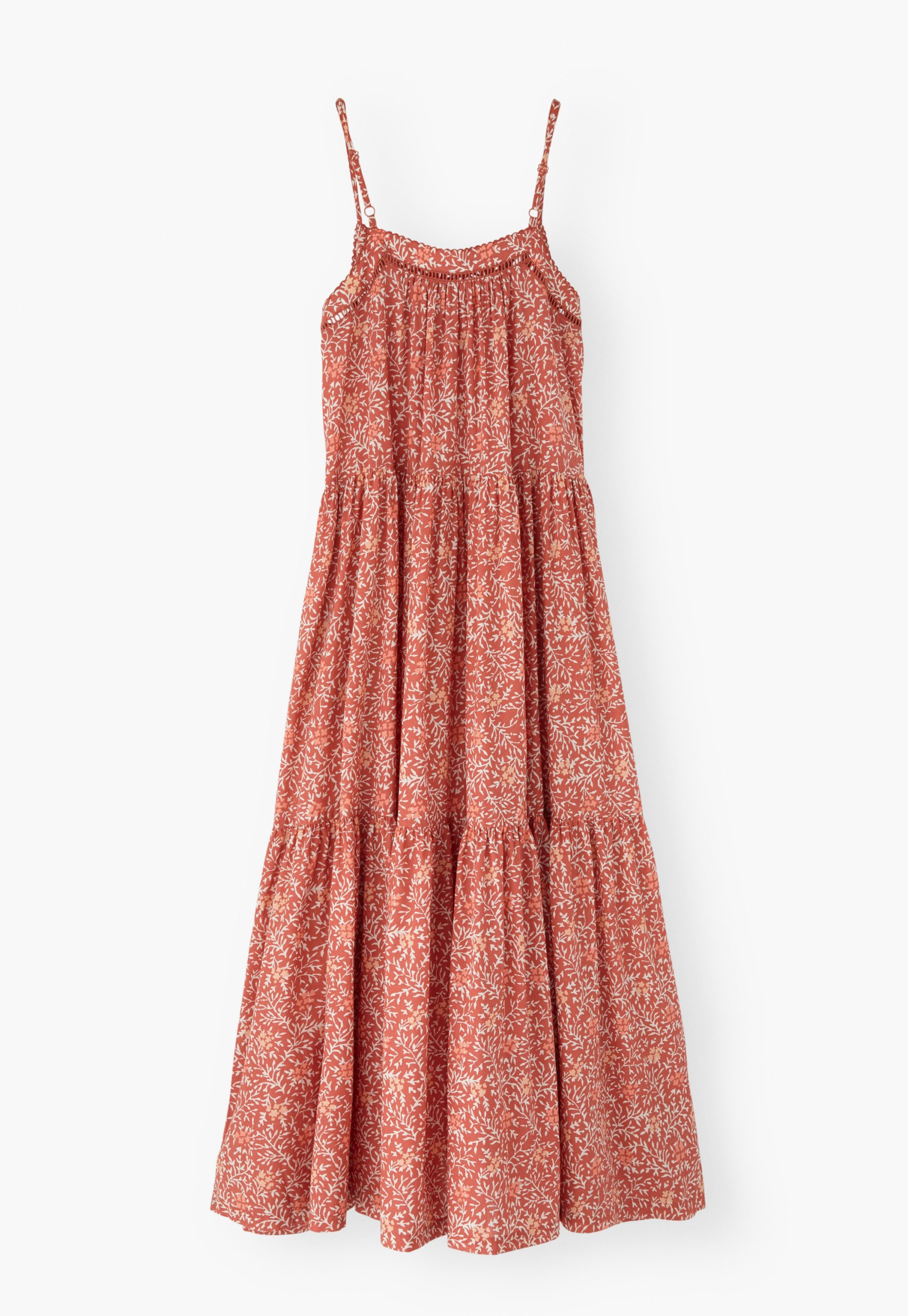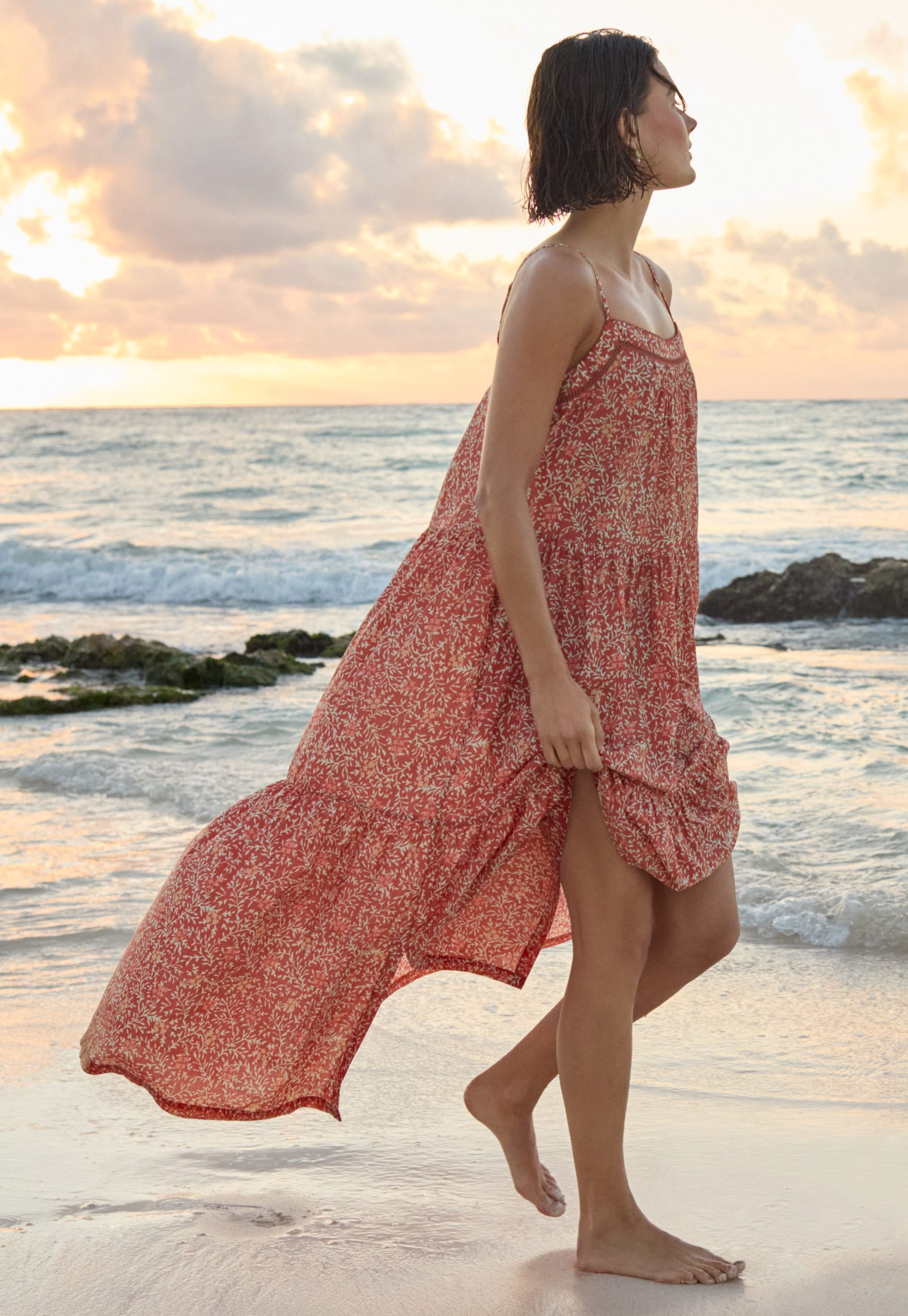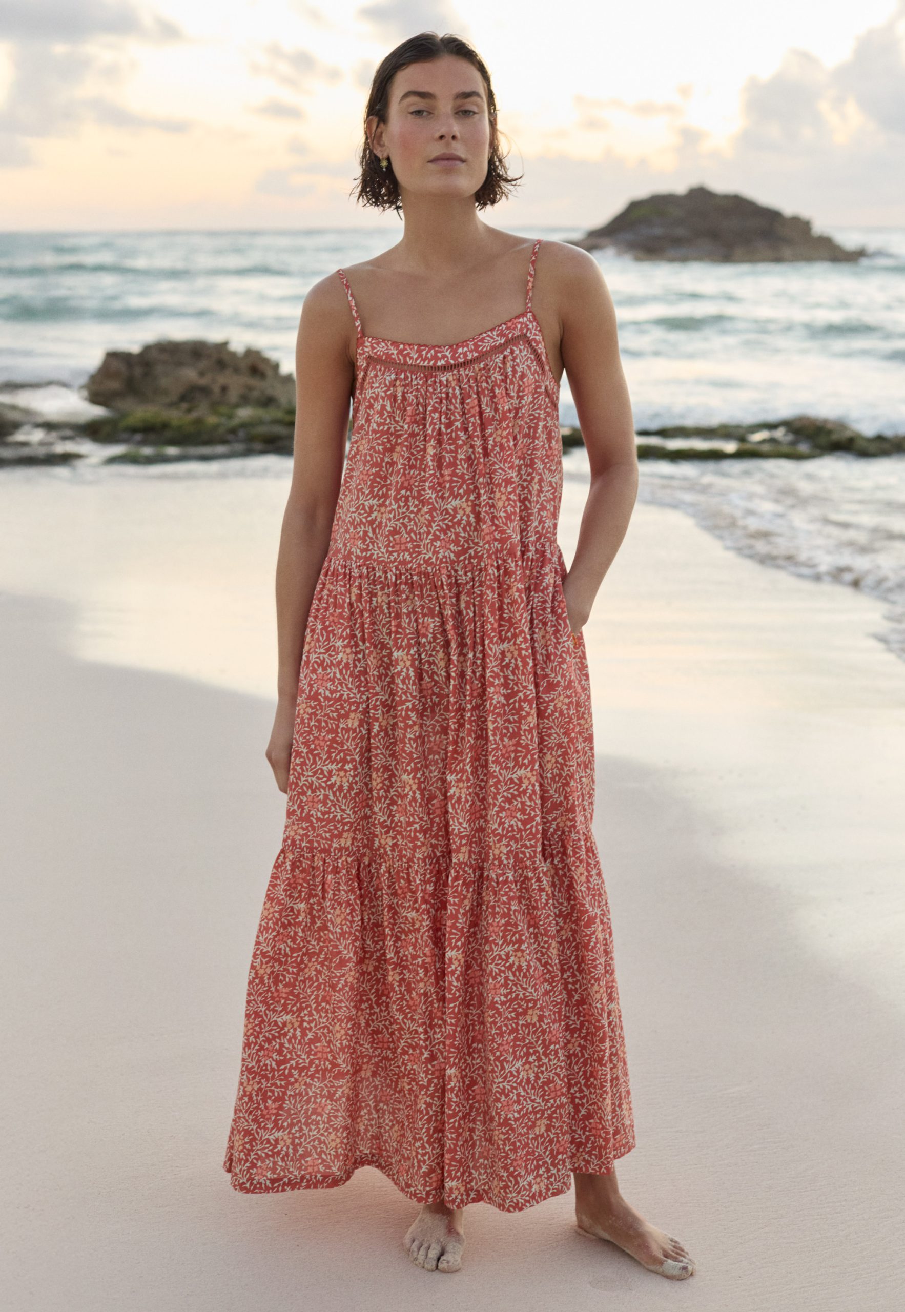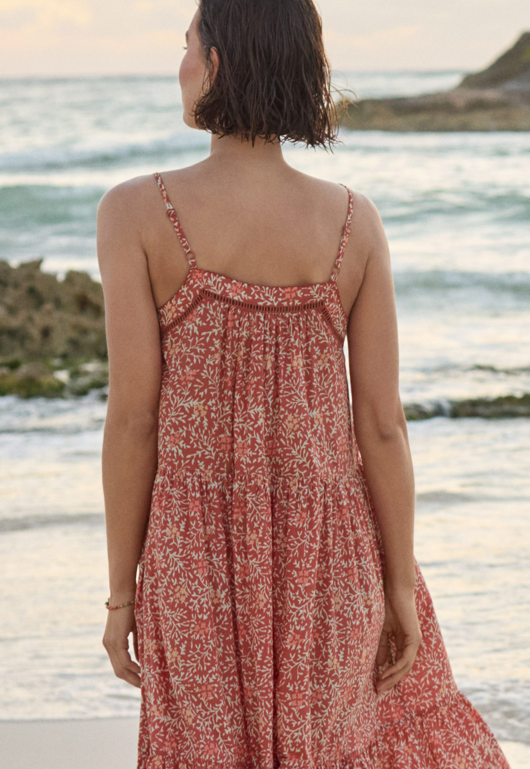 Feel the warmth of the sun on your shoulders in this lovely crisp cotton sundress. Lightweight and lovely, it features an exclusive Wrap London print, has fine adjustable shoulder straps and a pretty lace detail at the neckline. A beautiful dress for hot summer days.