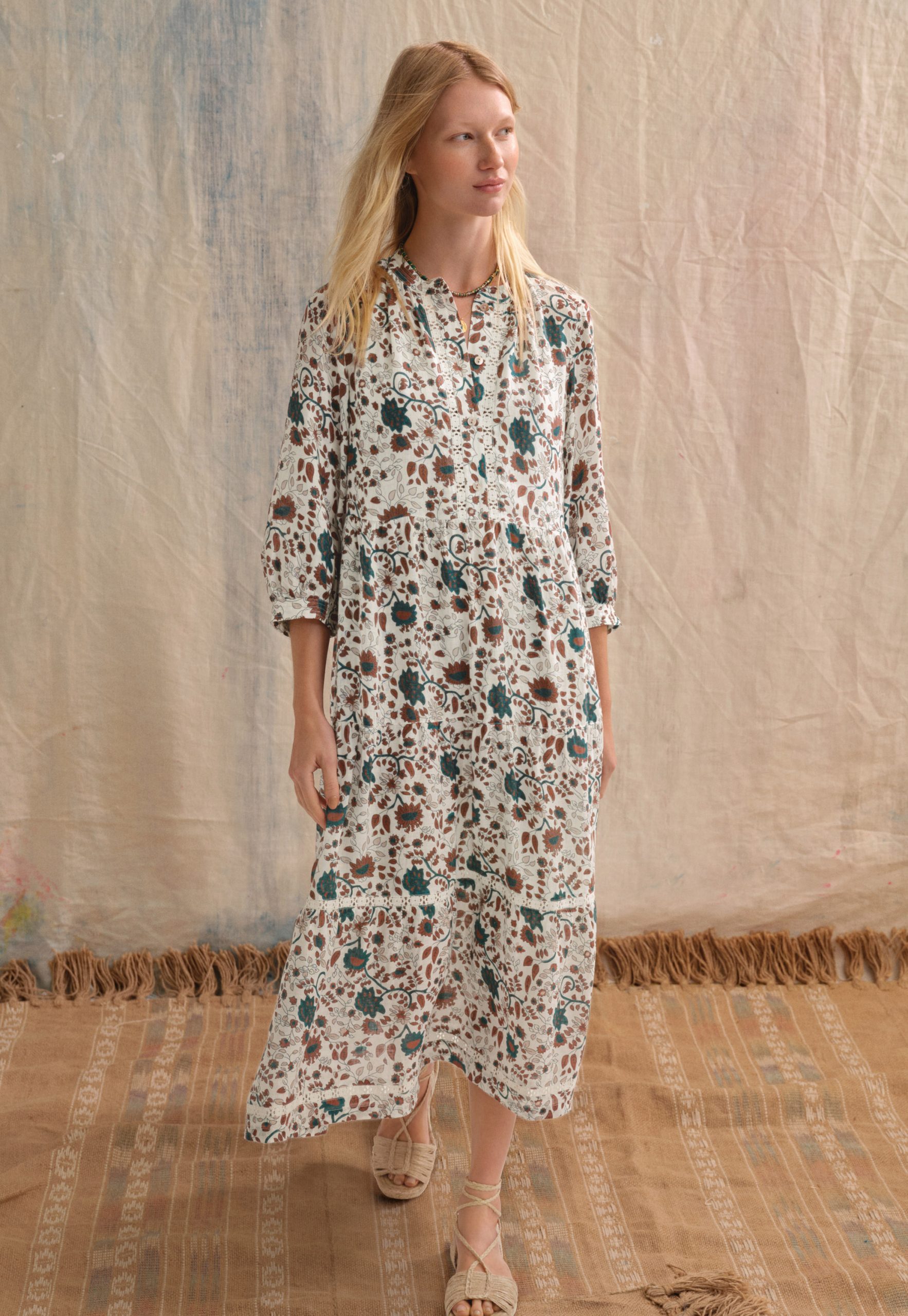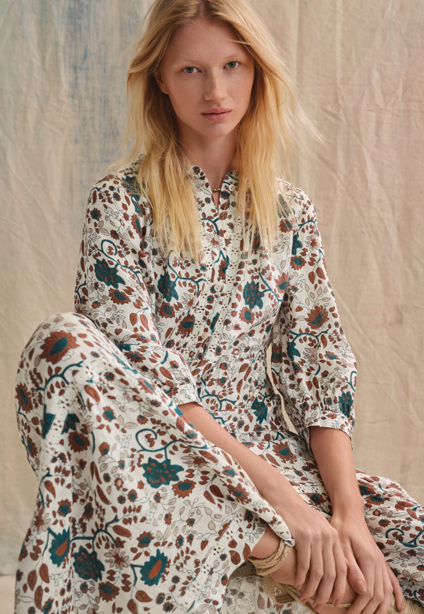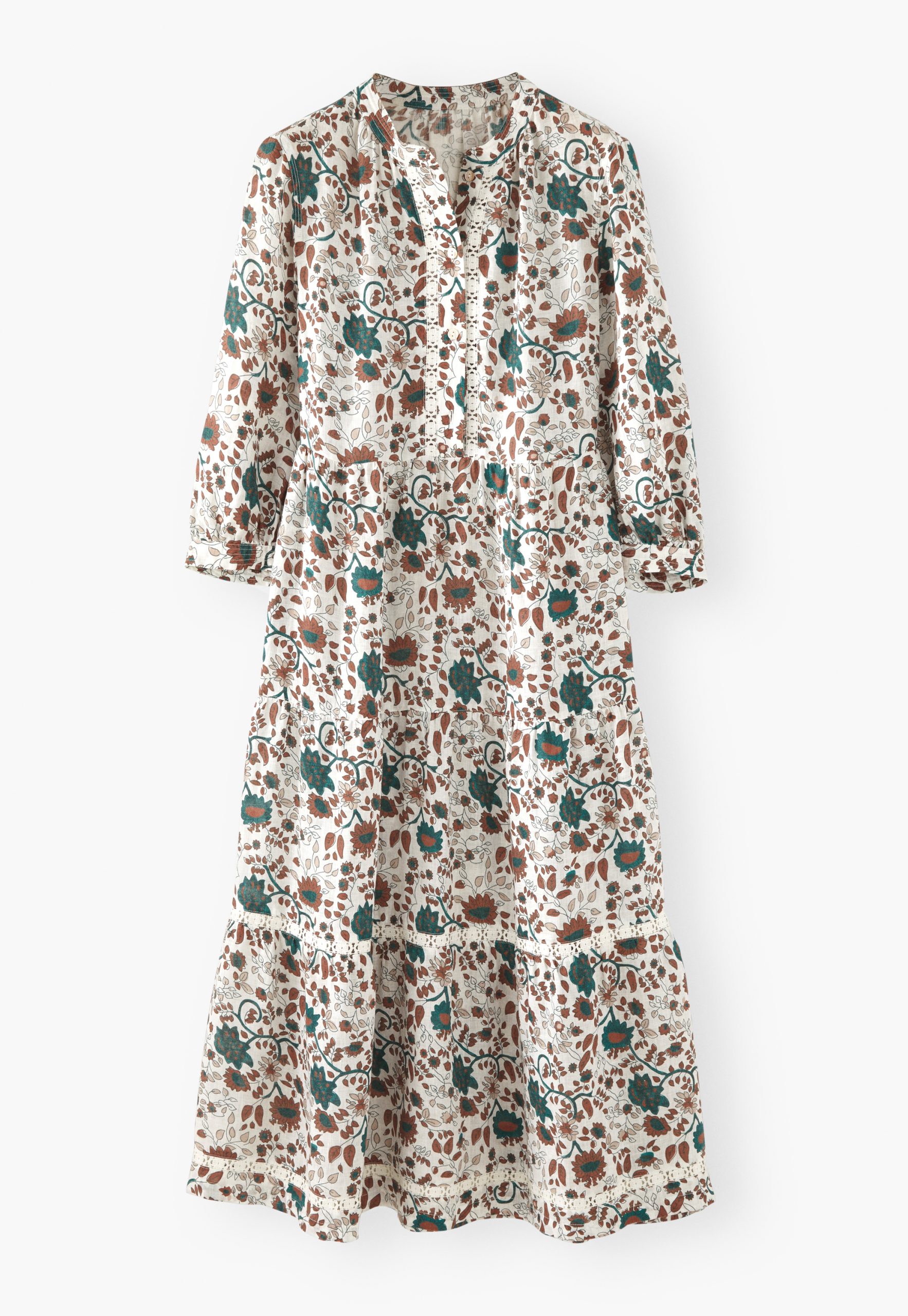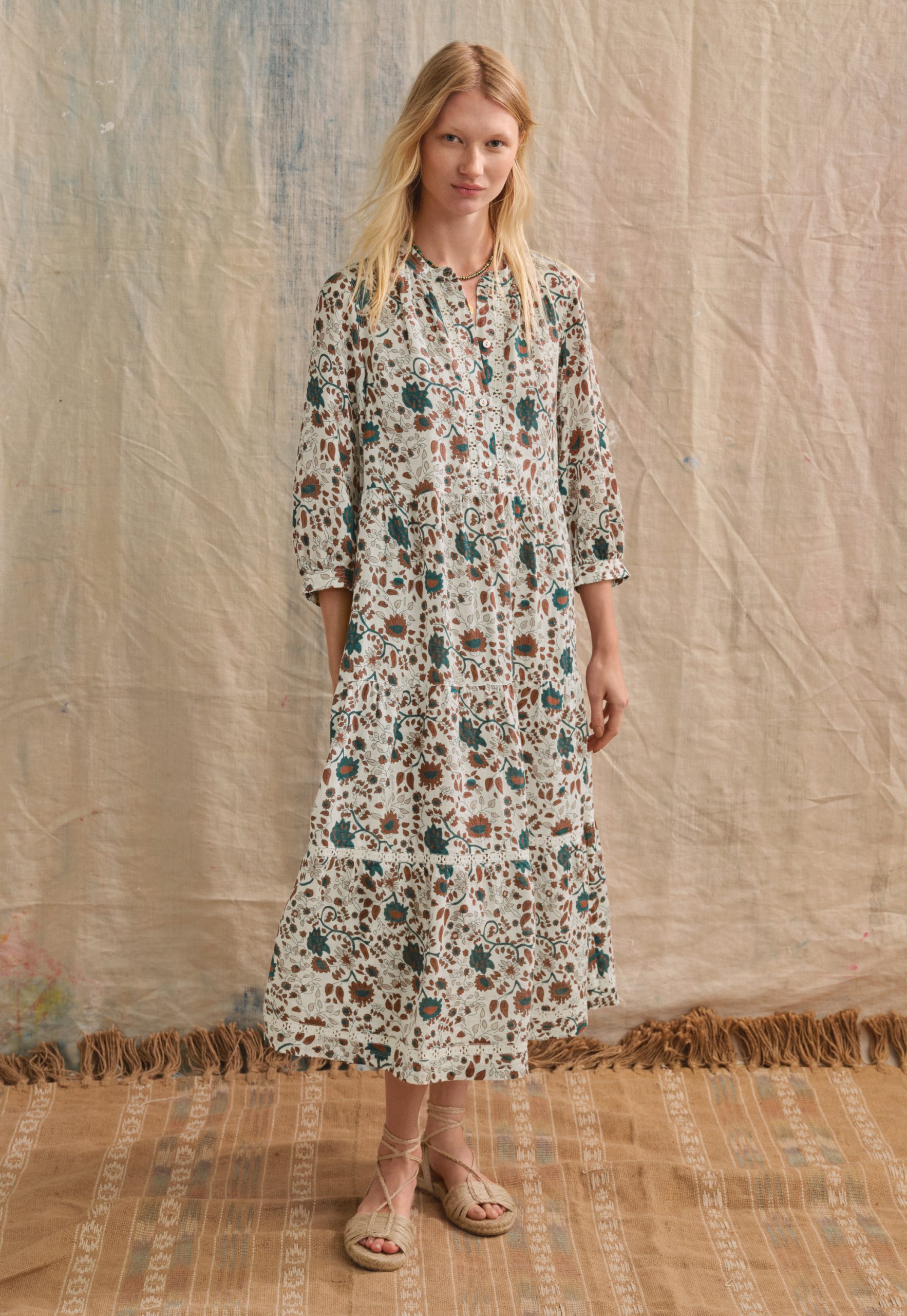 Wrap London Women’s Printed Tiered Dress | Ivory Brick