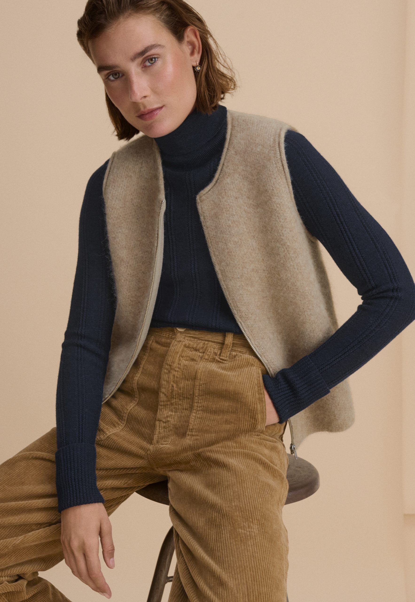 - Zip and button fastening at fly
