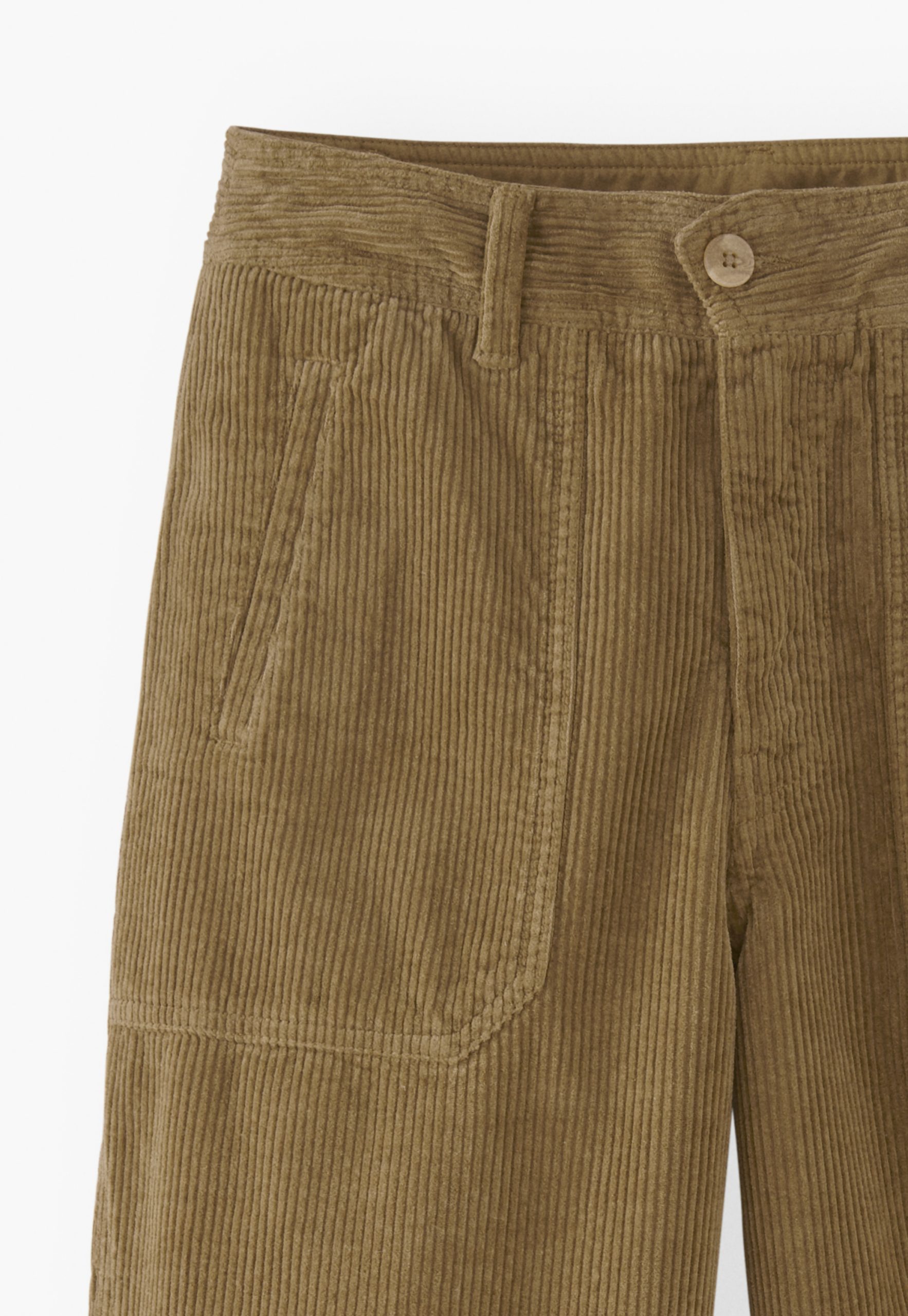 - Button fastening at side leg