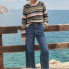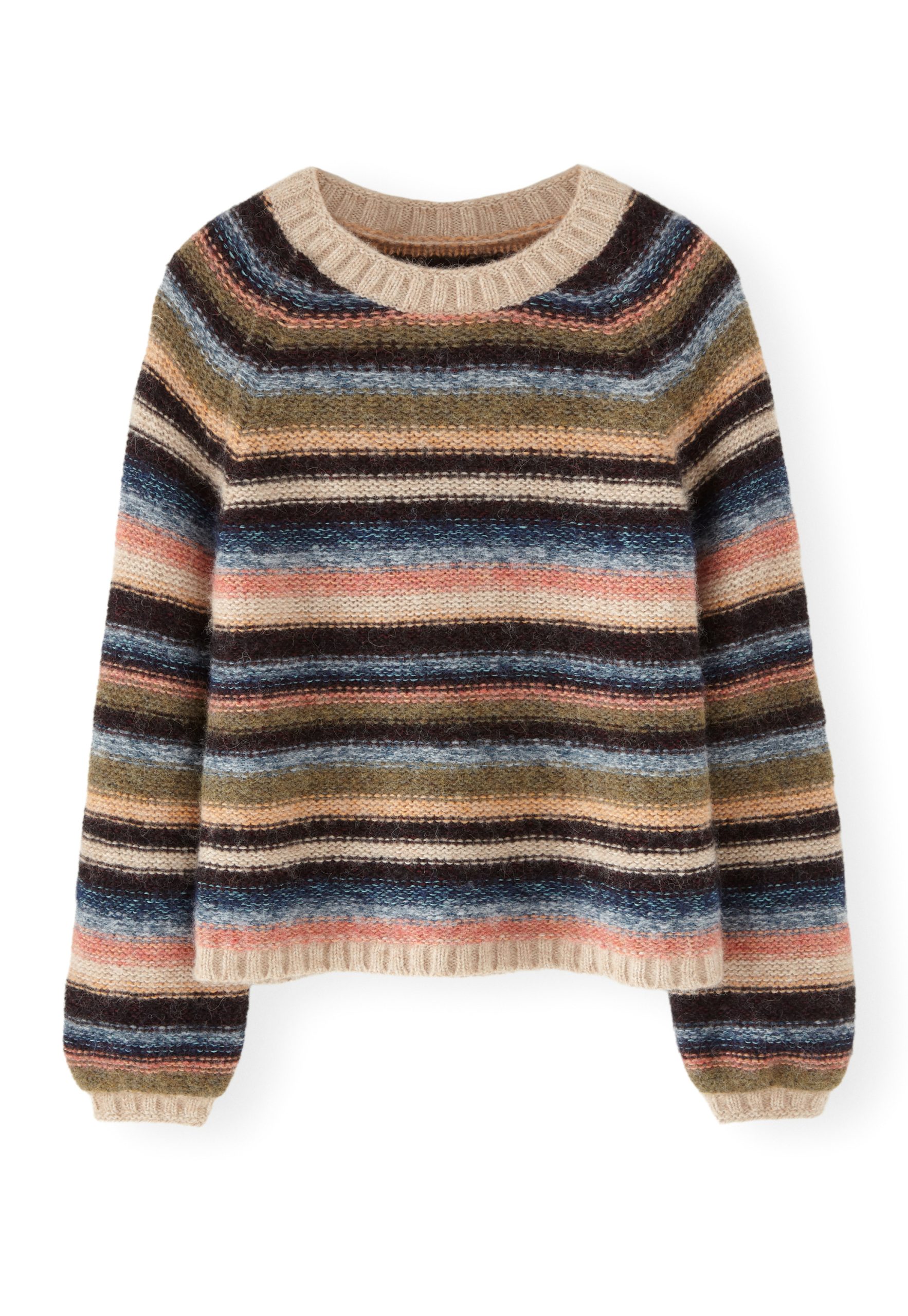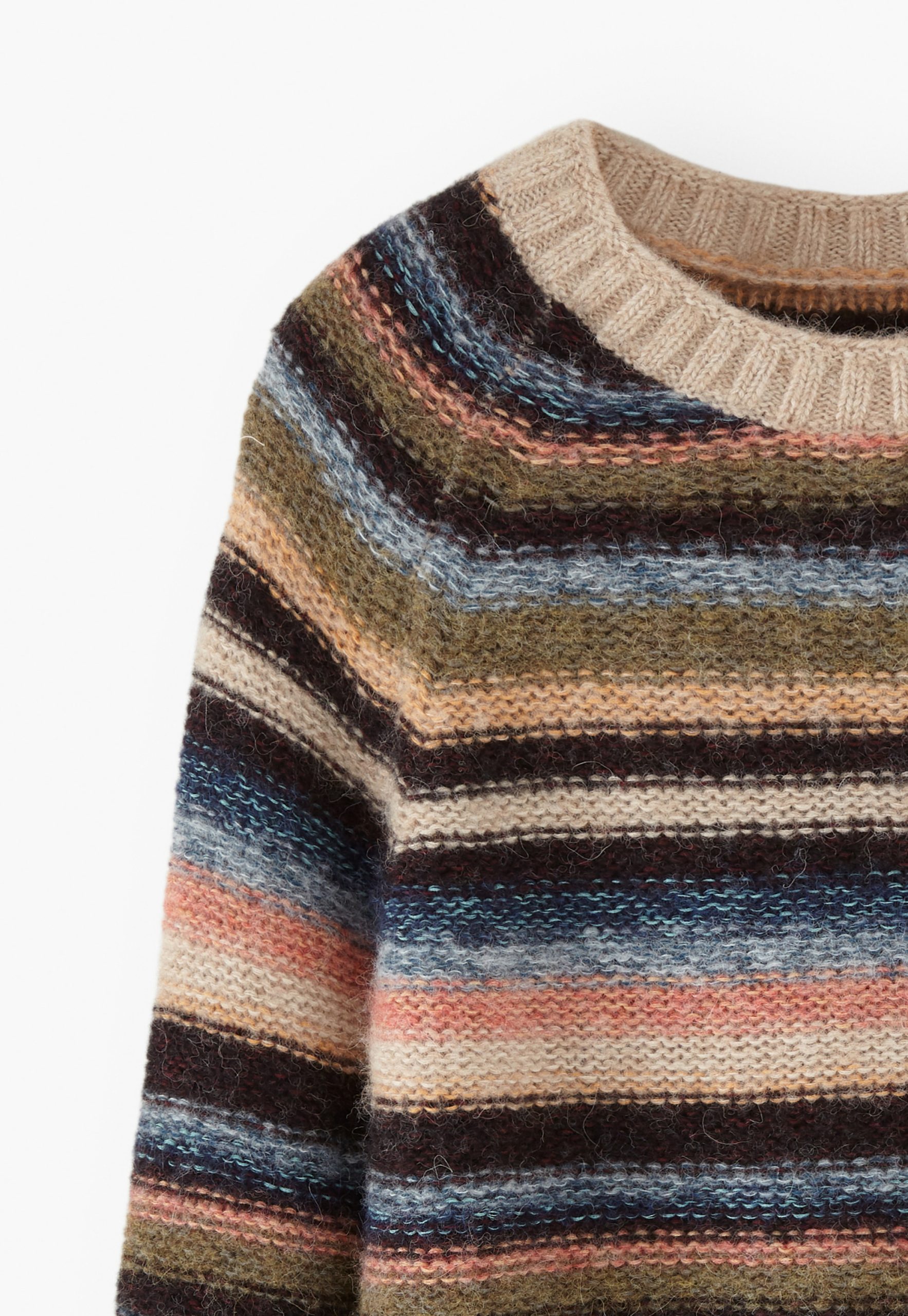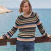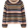 Deliberately styled to show the reverse stitches of the different-coloured knitted stripes, this soft and cosy sweater in a blend of alpaca, brushed cotton and merino wool is something different for your weekend wear.