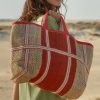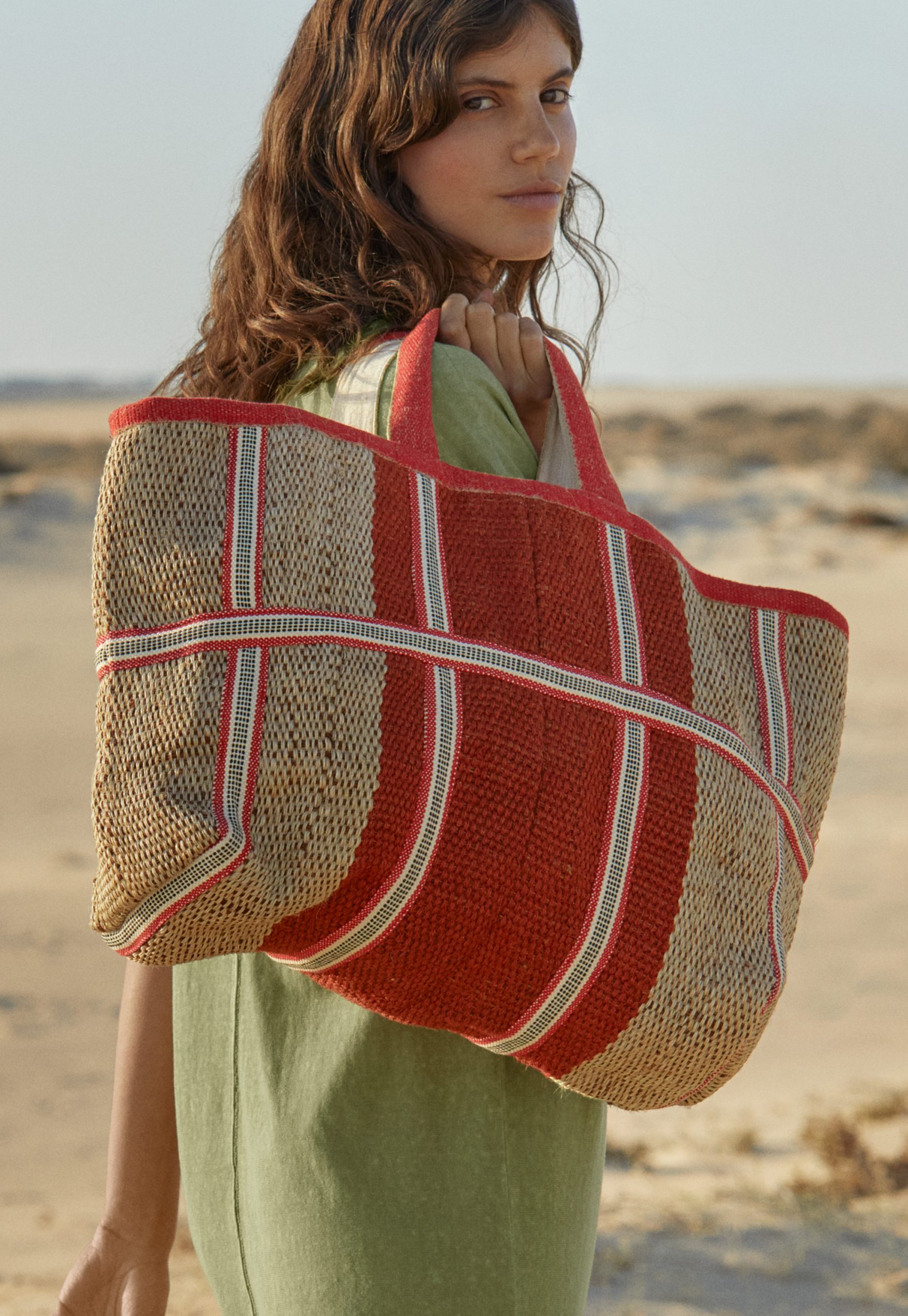 Attractive and practical roomy shopper bag handwoven in jute with pops of green colour. Fully lined with stripy cotton with plenty of pockets for all your essentials, each bag is handcrafted by female artisans at Maison Bengal, a Fair Trade organisation committed to fighting poverty.