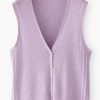 A soft and smooth sleeveless sweater vest in premium brushed organic cotton. Slightly longer at the front and with a gently curved hem, this v-neck button-through vest will feel wonderful next to the skin.