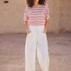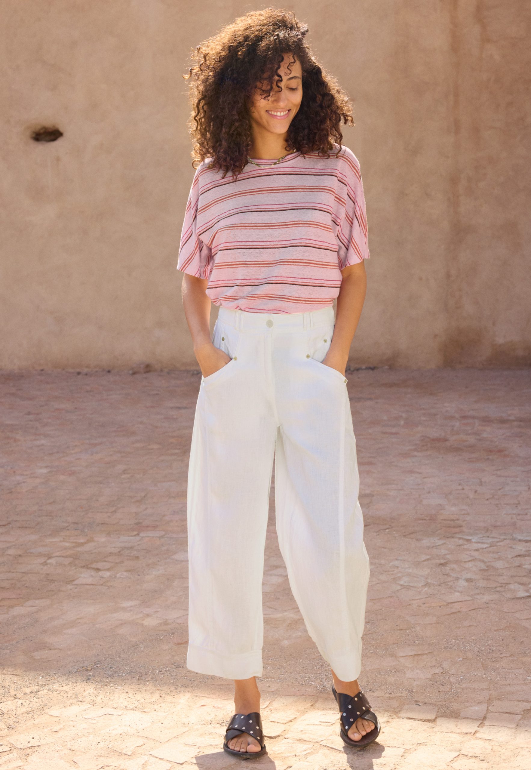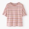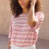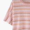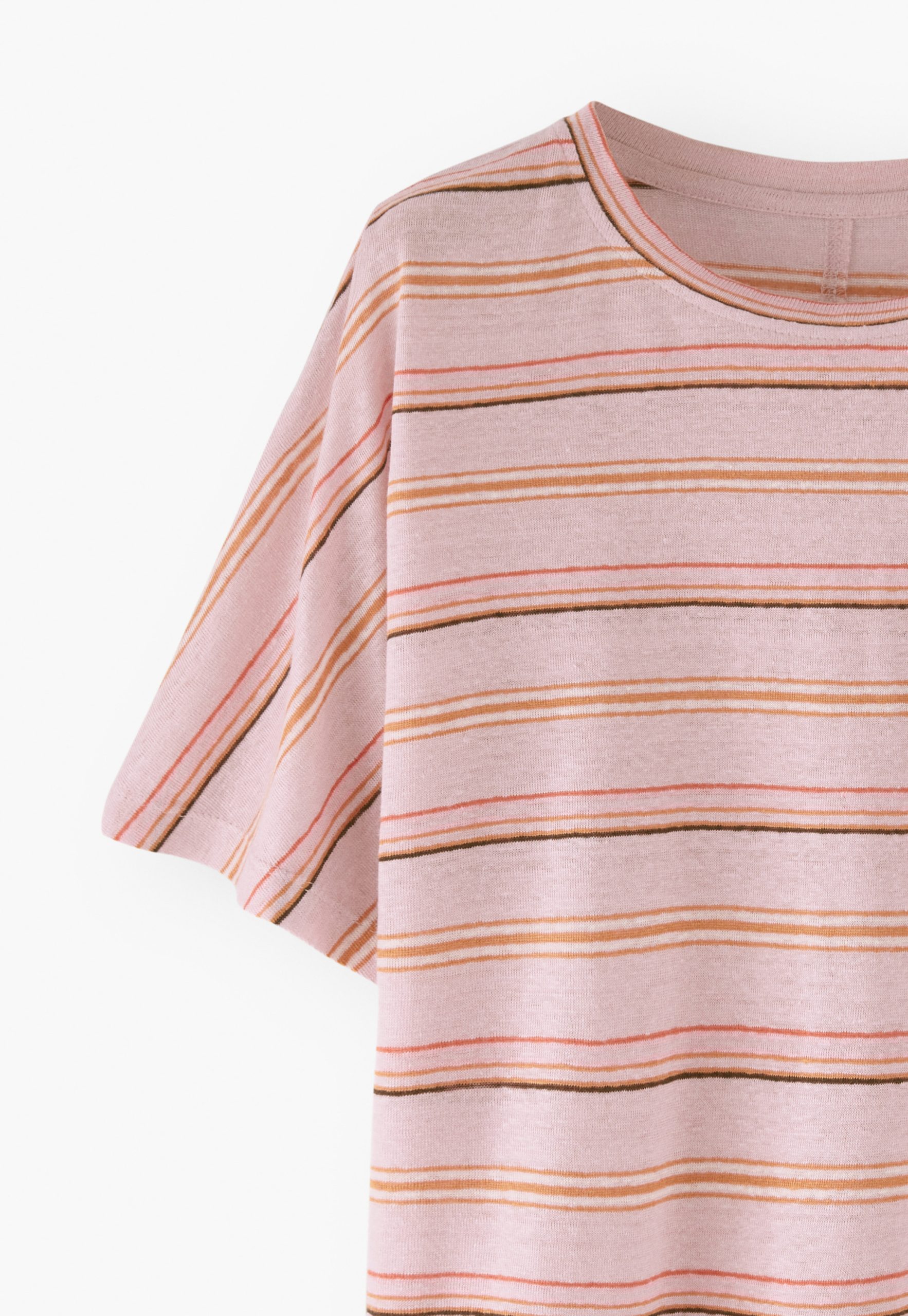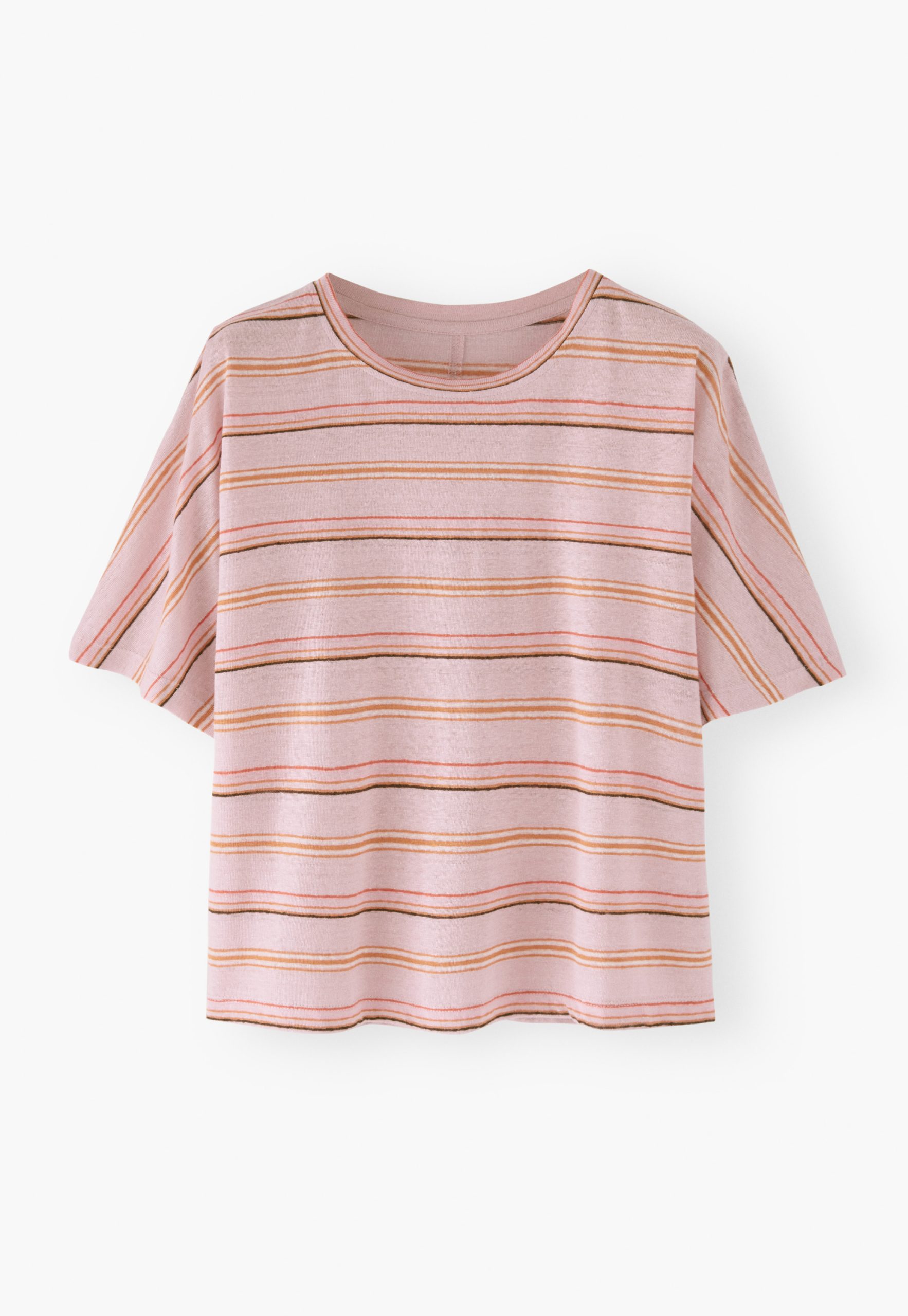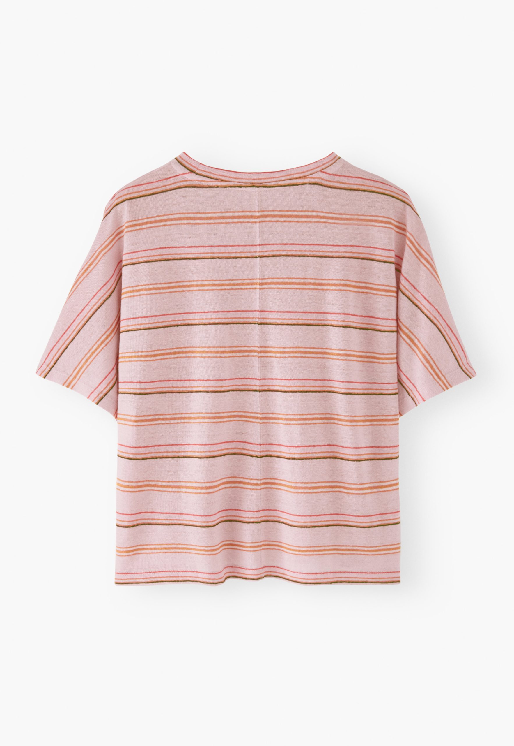 Our popular linen jersey boxy fit short-sleeve T-shirt in new summer stripes. Loose and relaxed, with a neat seam detail down the centre back, it’s cheerful and colourful.