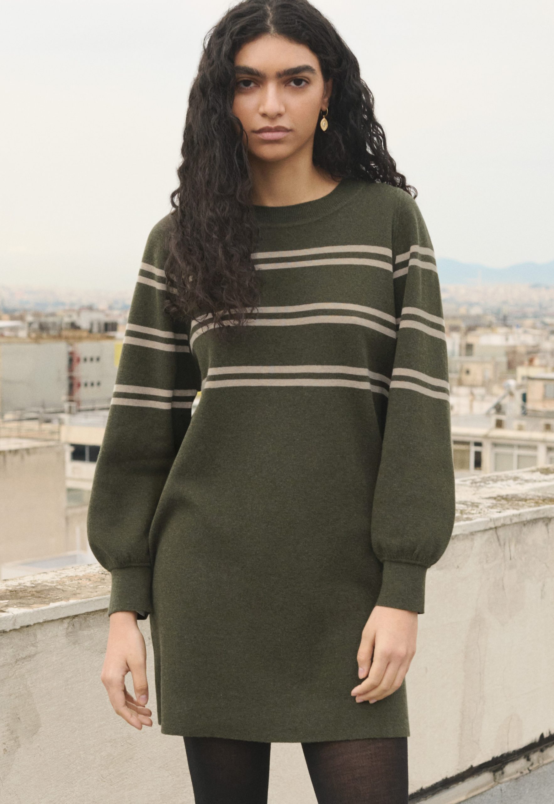 Chic stripes and smooth organic cotton come together to create this supremely stylish sweater dress. In a relaxed fit with fabulous full-length blouson sleeves, it’s the ultimate in casual cool.