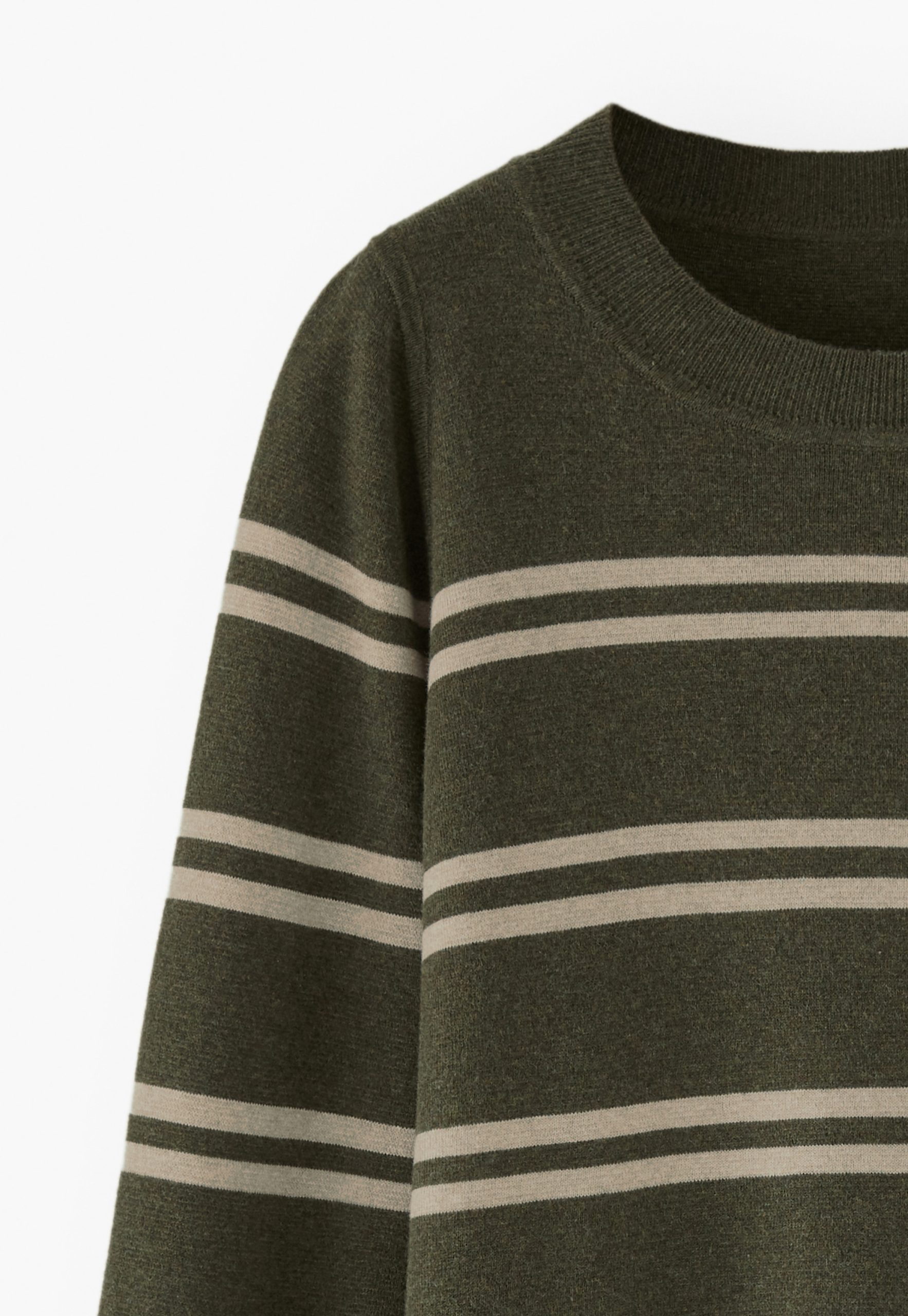- Rib-stitch neckline and cuff