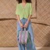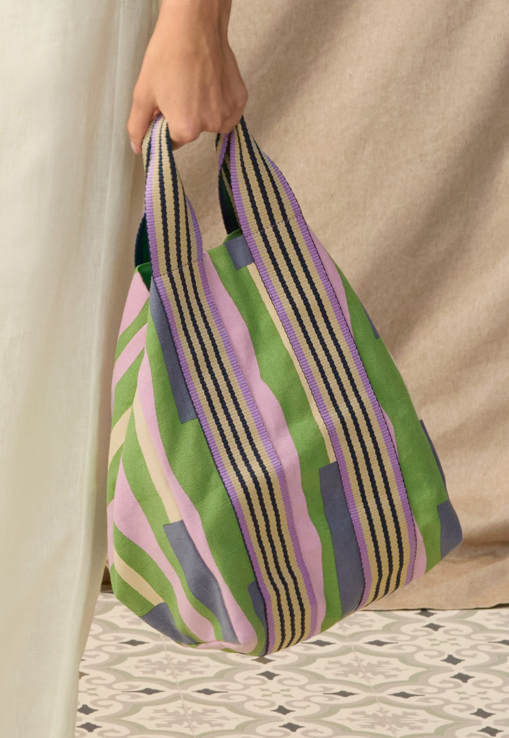 We chose to work with Épice, the pioneering brand of premium scarves and bags by Danish designers Bess Nielsen and Jan Machenhauer, because of its rigorous selection of the finest quality natural fabrics and unique use of colour and print. After consideration of the size of the piece, the thread, the colour and the combination of original patterns, the pieces are woven and printed by hand by artisans in India.
