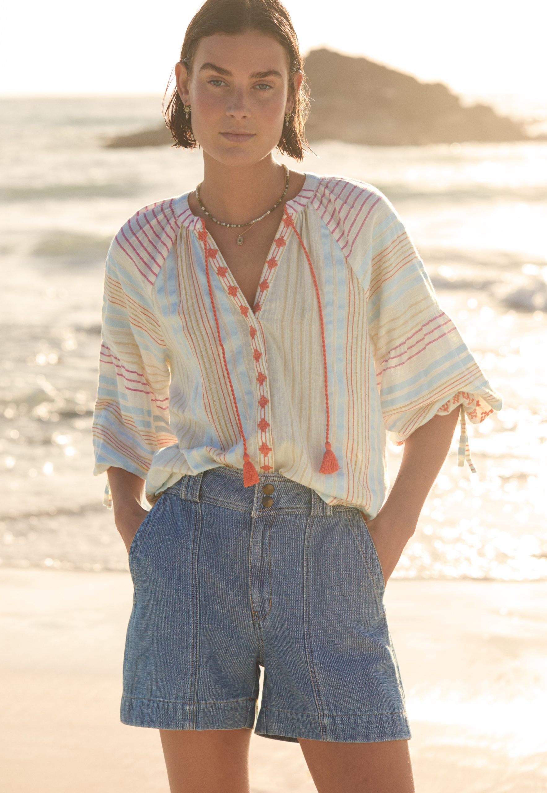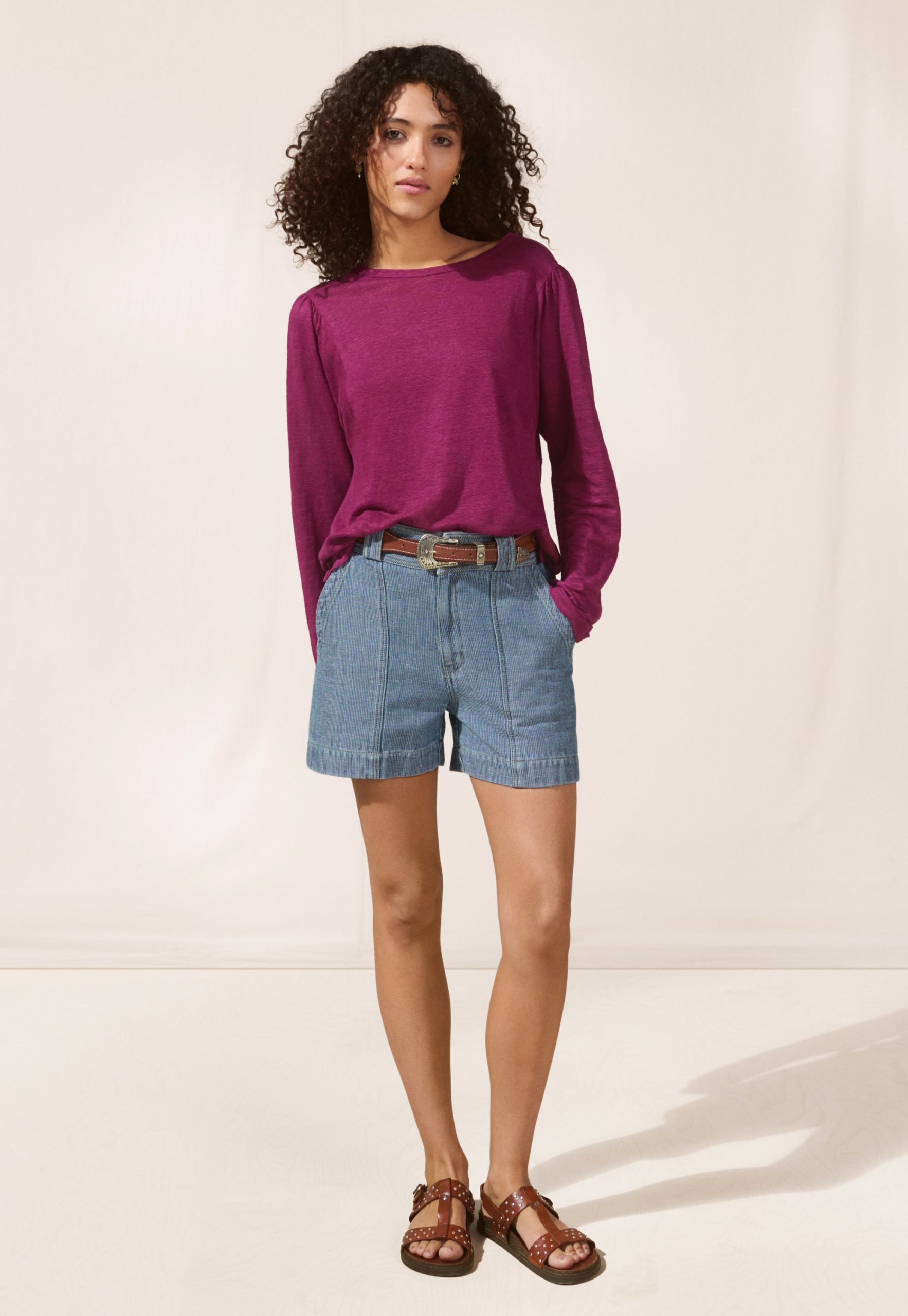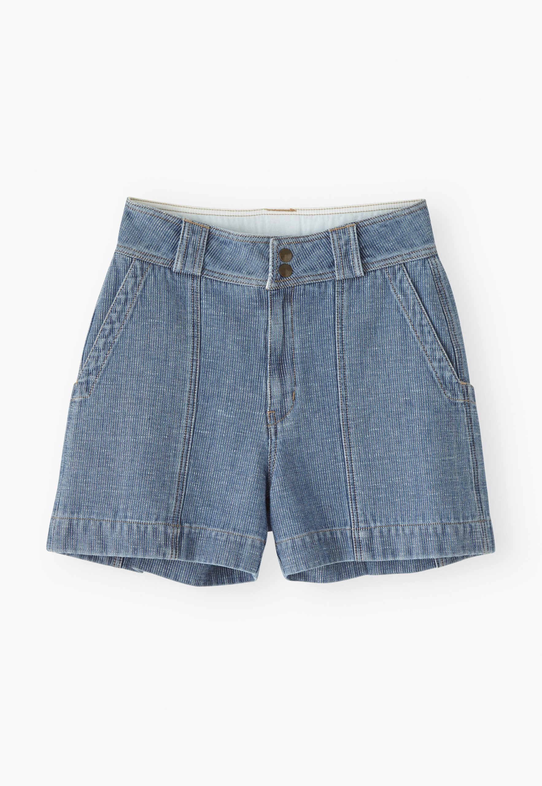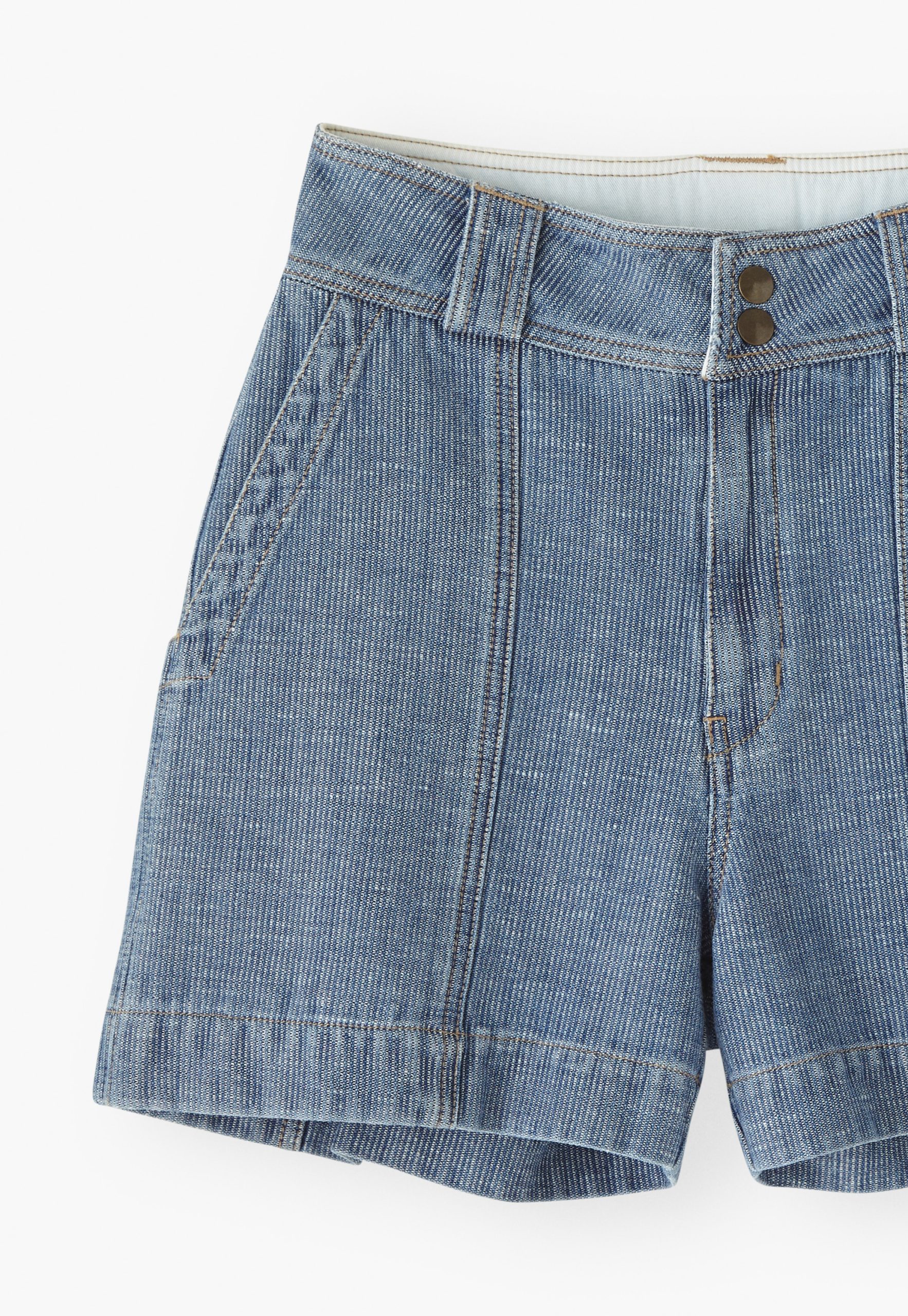 Relaxed wide-leg shorts made from a blend of cotton and linen that creates a finely striped effect. Soft yet substantial, with angled patch-pockets at the sides, a deep hem finish and loops to add your favourite belt.