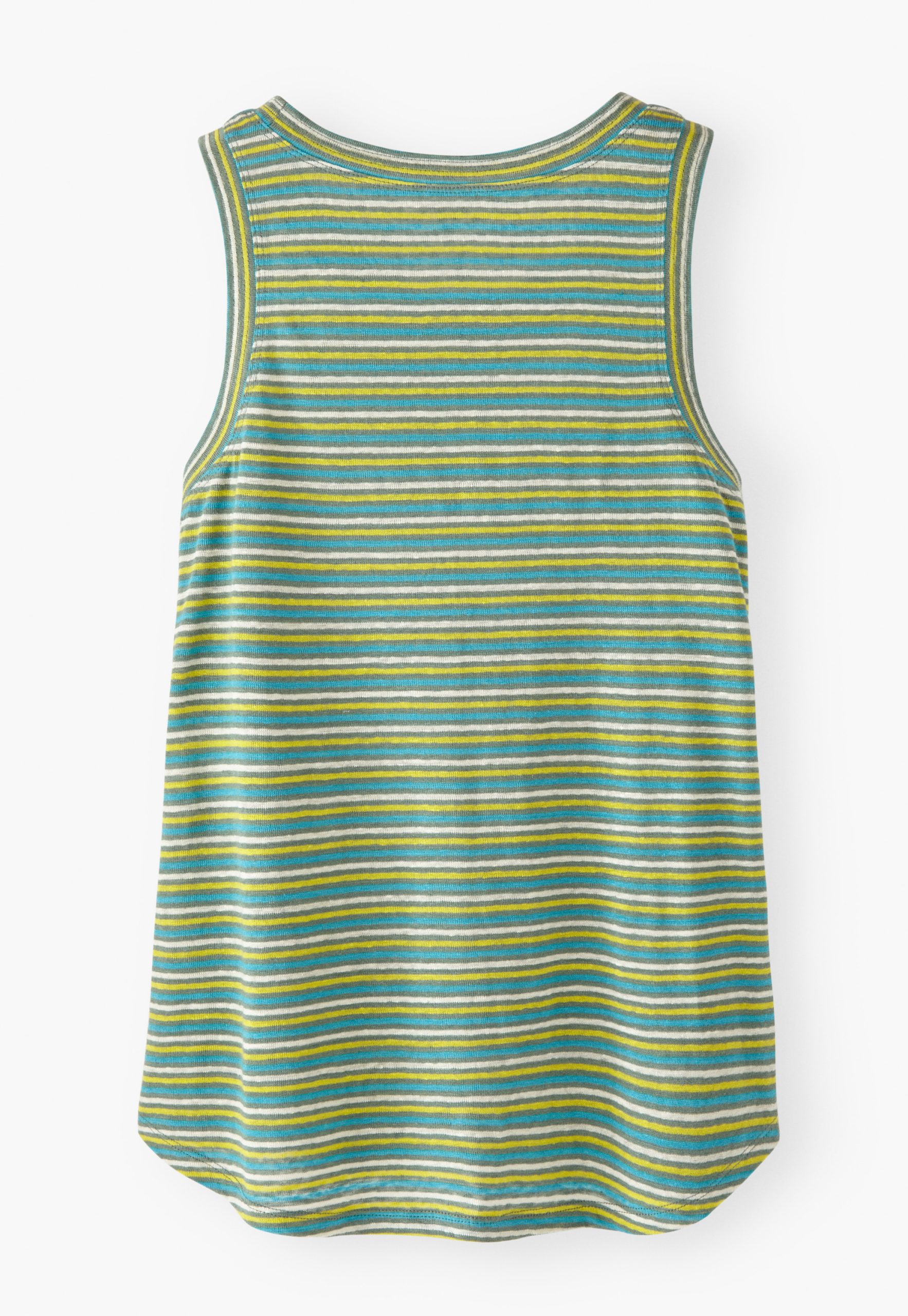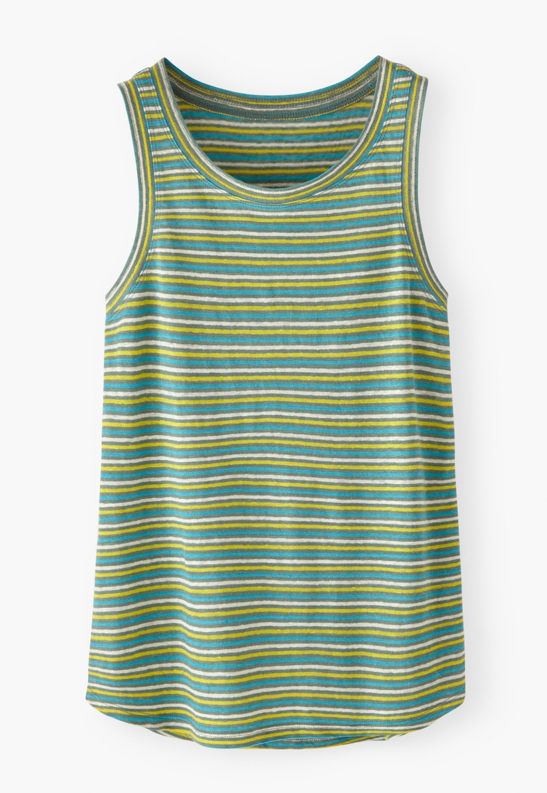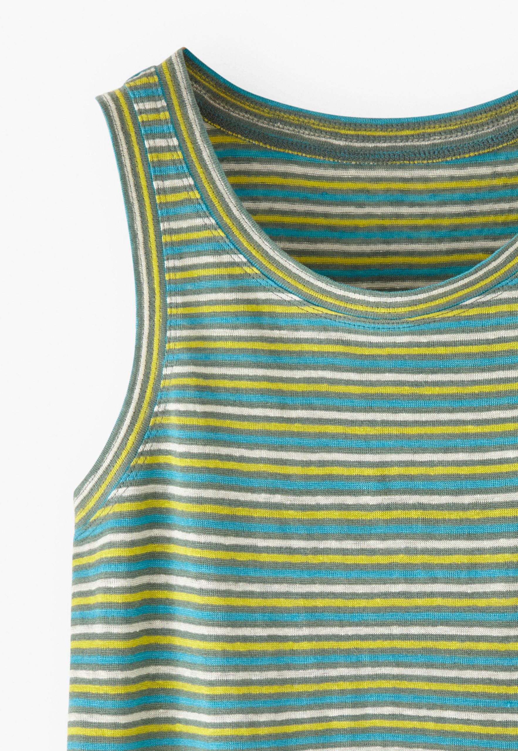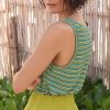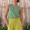 Stripes that lift the spirits in lightweight linen jersey. A fabulous vest with a pleasing top-stitch detail at the neckline and around the armholes.