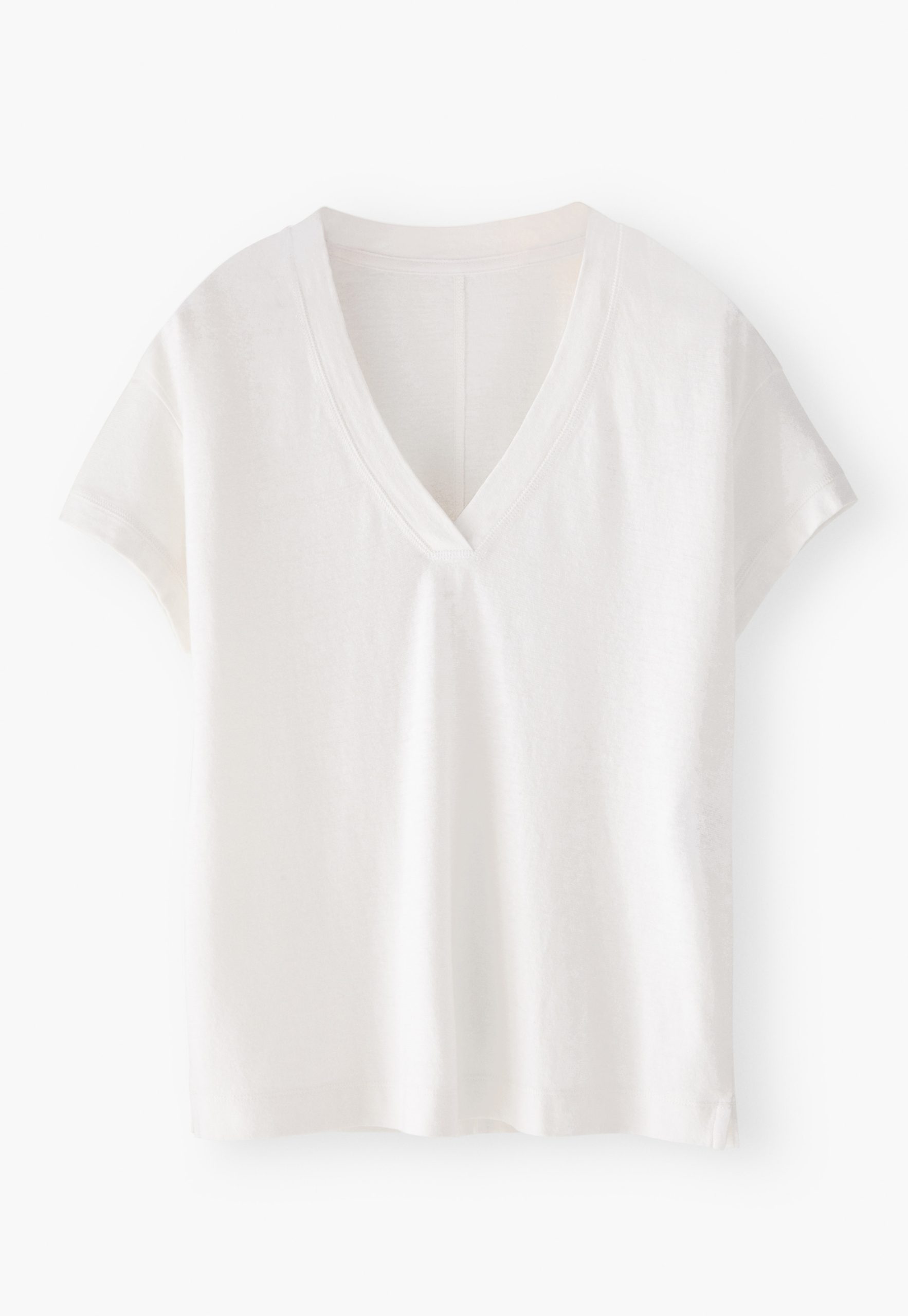 A new take on the v-neck T-shirt in hemp and organic cotton jersey that only gets softer the more it is worn and washed. With dropped-shoulders and short sleeves, it comes in a choice of fresh colours.