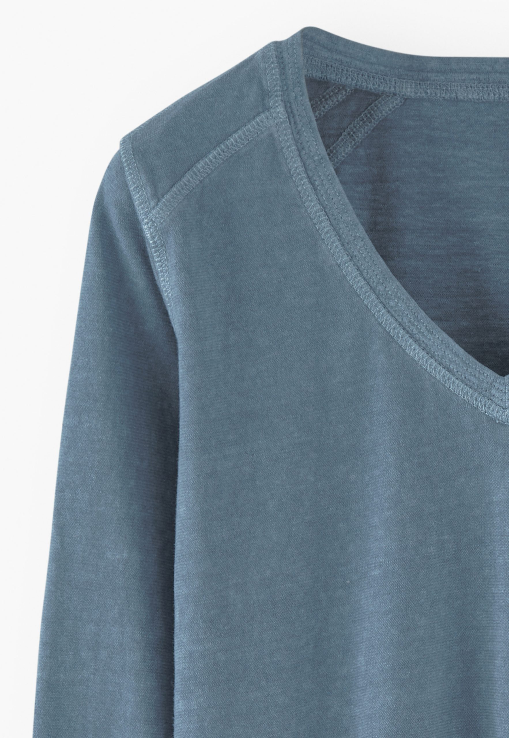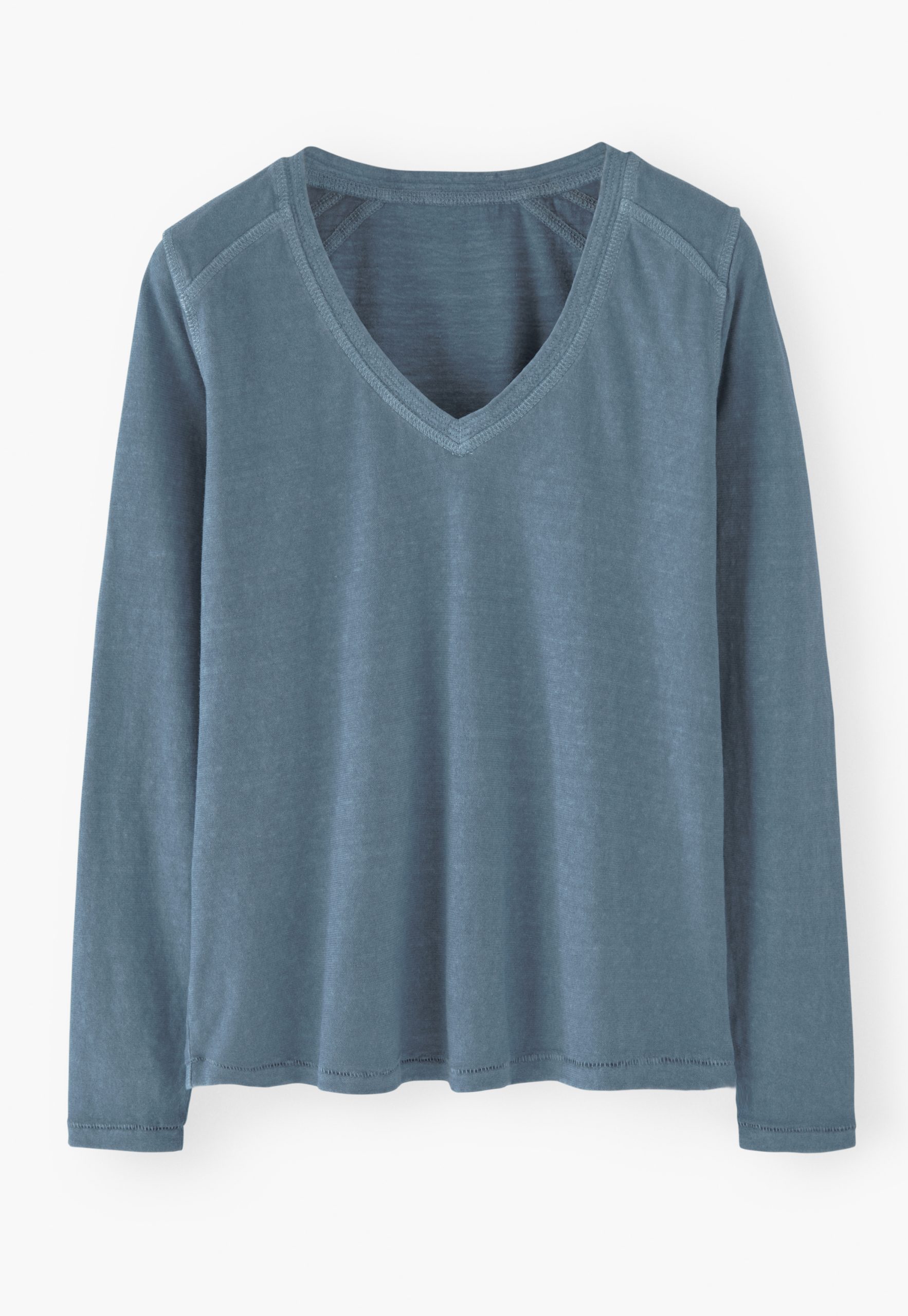 Time for a v-neck top that works as a layering piece and is super solo. Made from hemp and organic cotton jersey, and pigment dyed for a laundered, casual look.