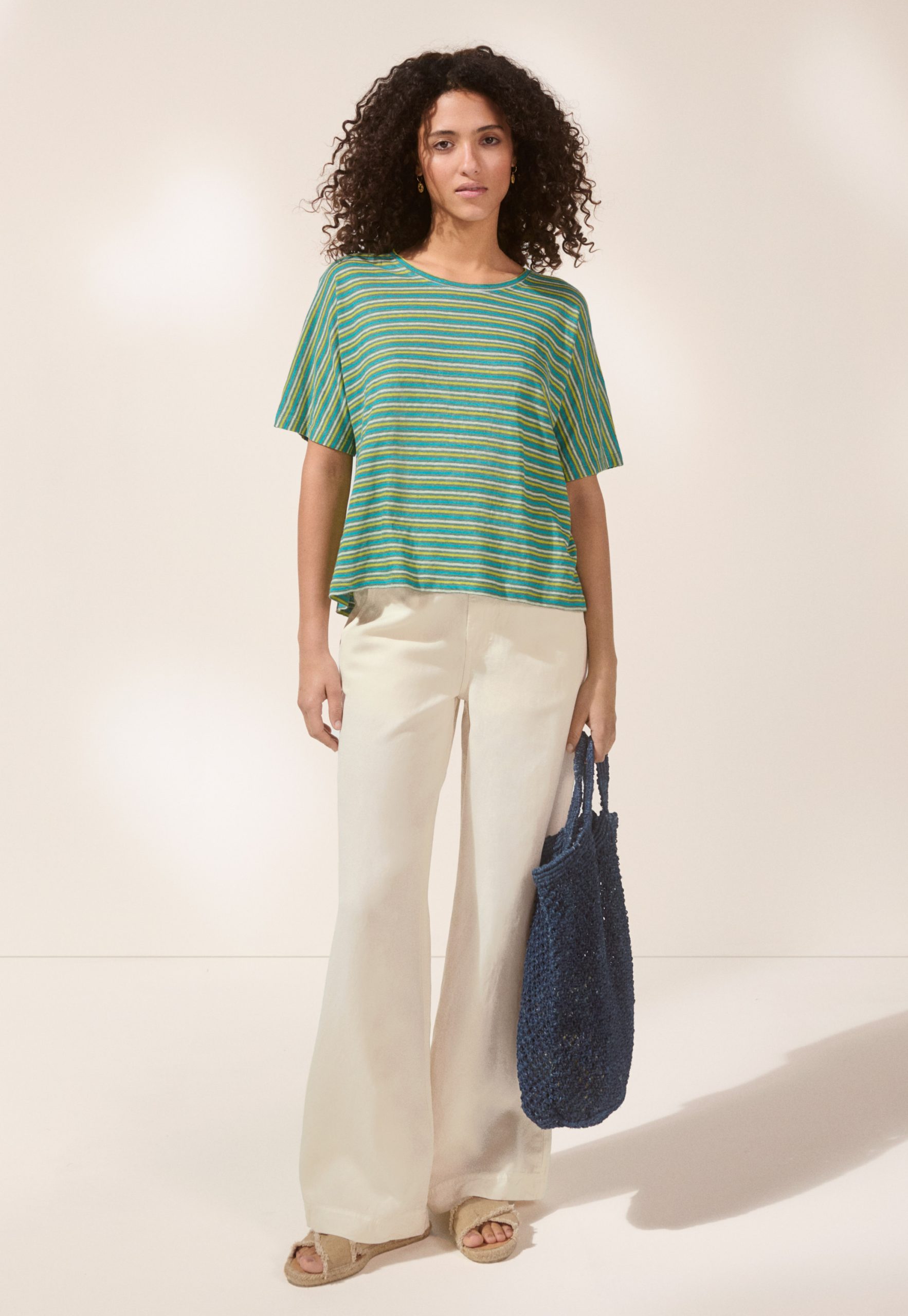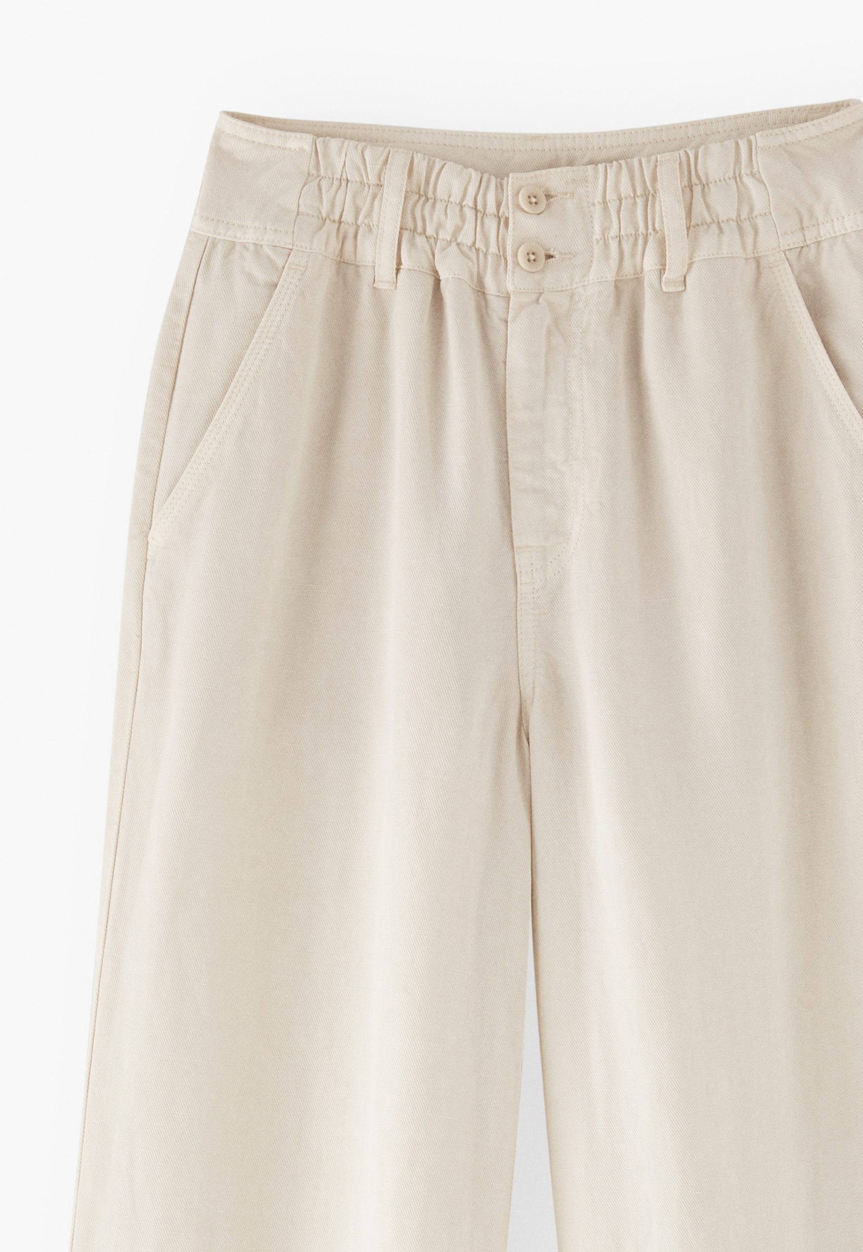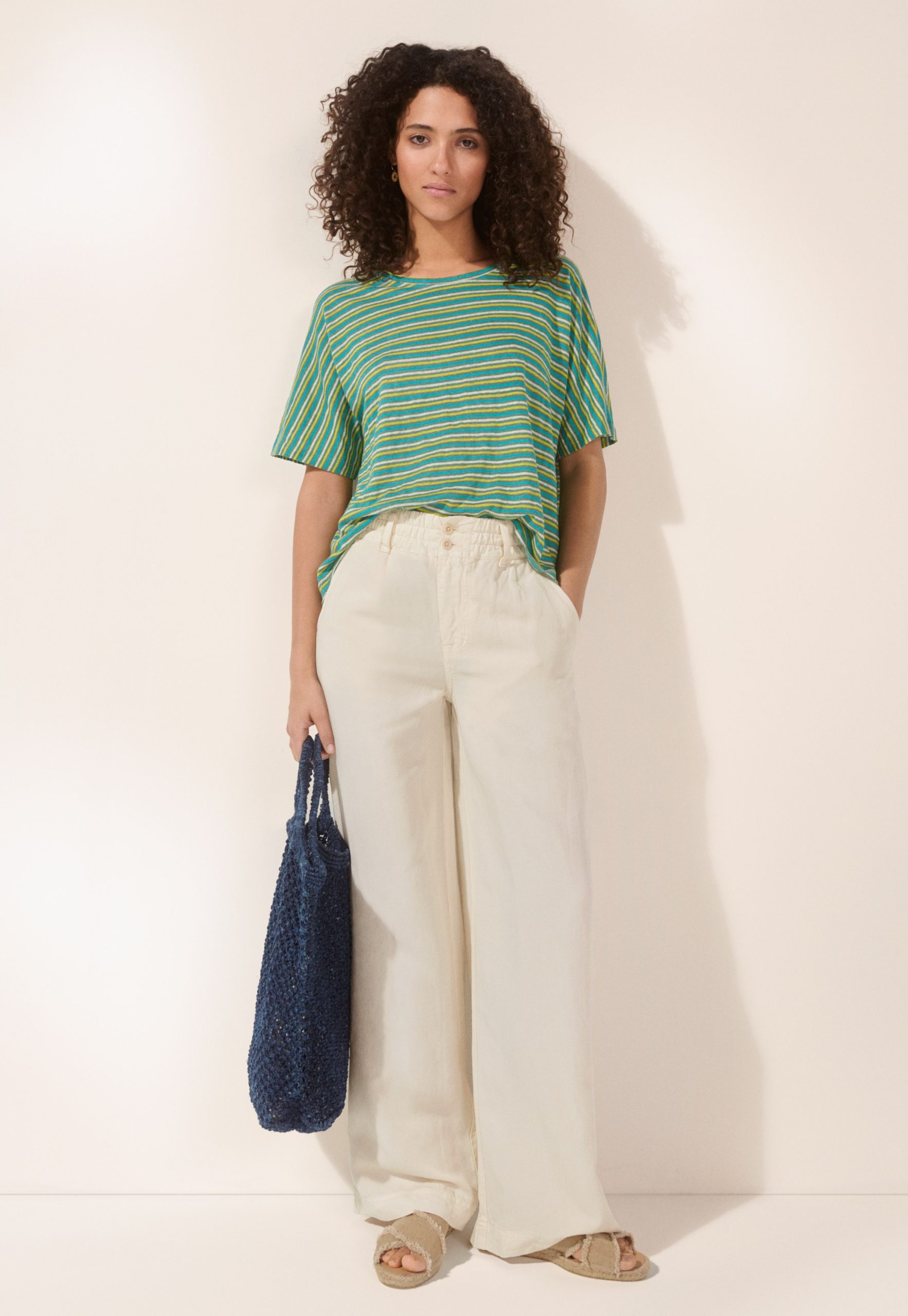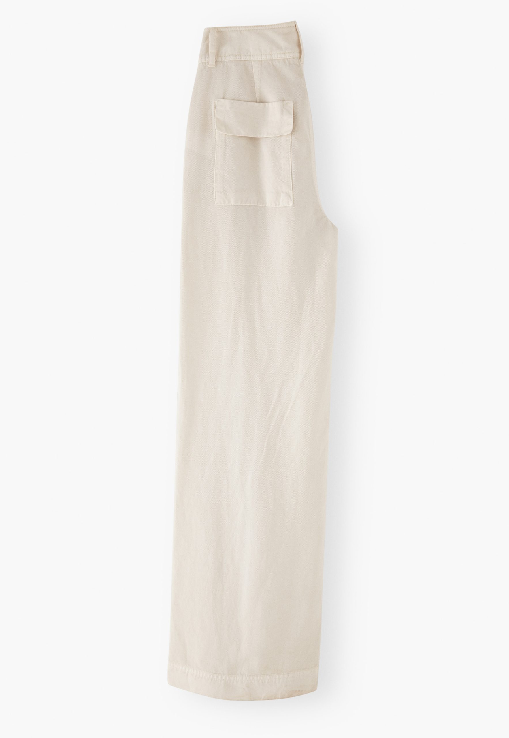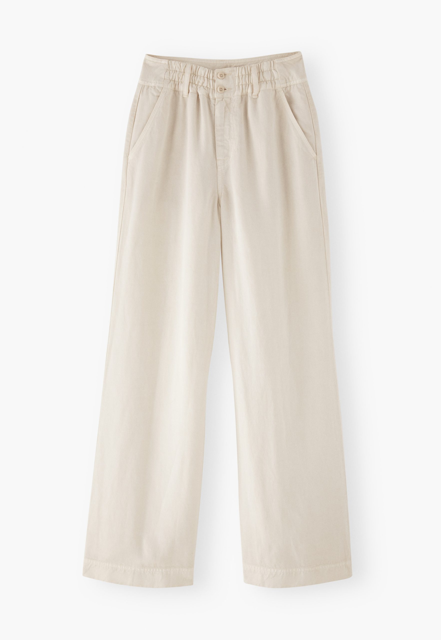 Long and luxe high-waisted trousers in lightweight and drapey lyocell and linen. We love the cut-away side-pockets edged with fine stitching and the patch-pockets at the back with the neat flap detail. Style with a crisp shirt with the sleeves rolled up.